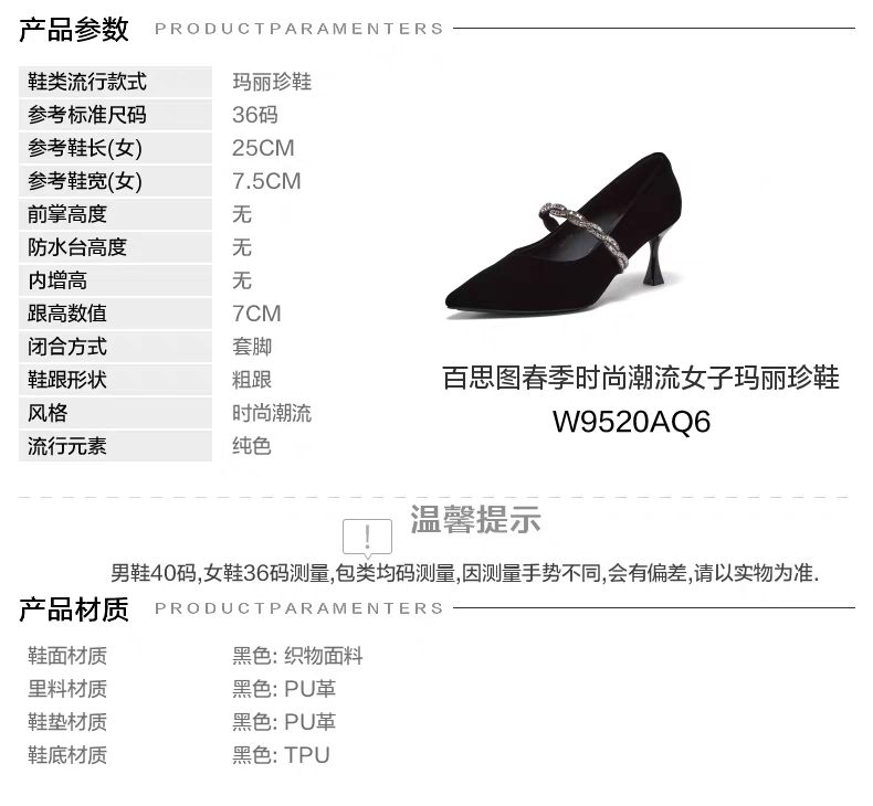 【云粉节】 BF楼百思图2026春季新款优雅玛丽珍鞋细跟高跟鞋女单鞋W9520AQ6吊牌价669.现价399