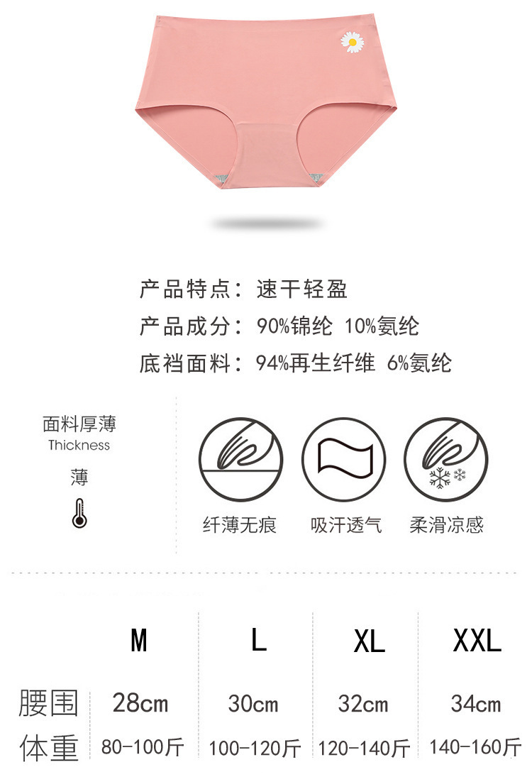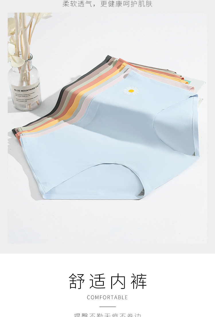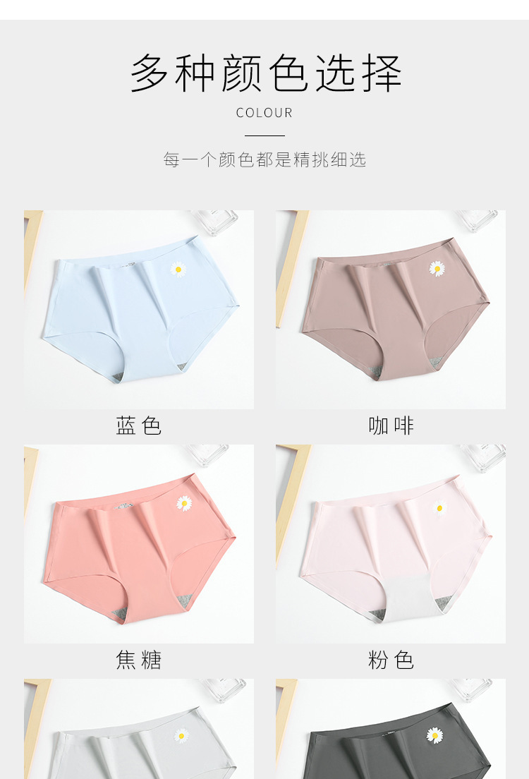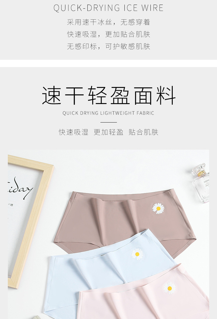 【石墨烯黑科技】无痕冰丝内裤女甜美小雏菊石墨烯裆快速干透纤薄无感柔滑凉感女士抗jun中腰透气少女三角内裤