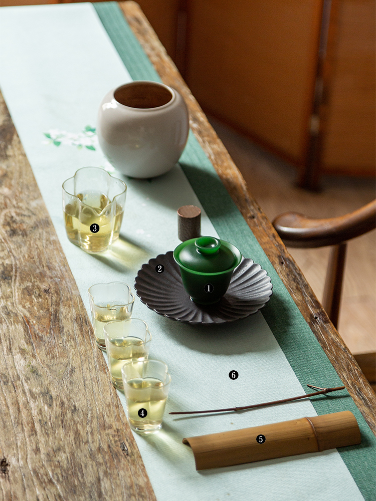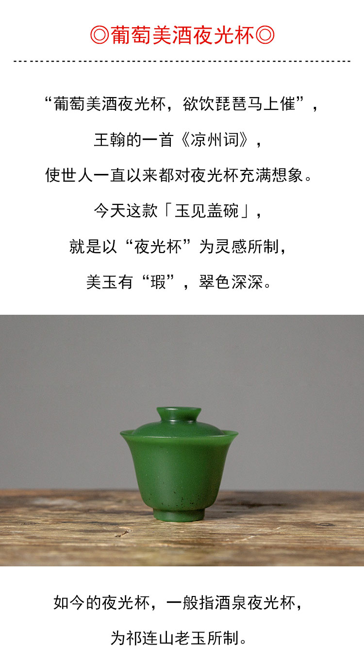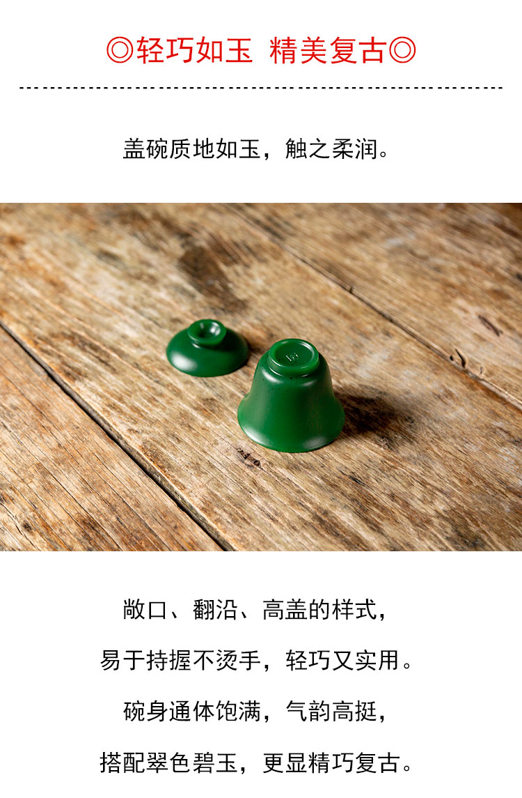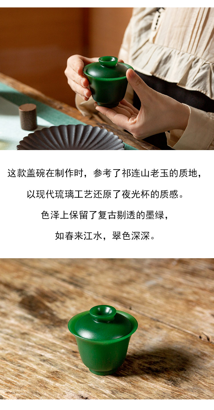 茶香记 复古琉璃工艺 墨绿色 玉见盖碗 仿祁连山老玉 功夫茶具