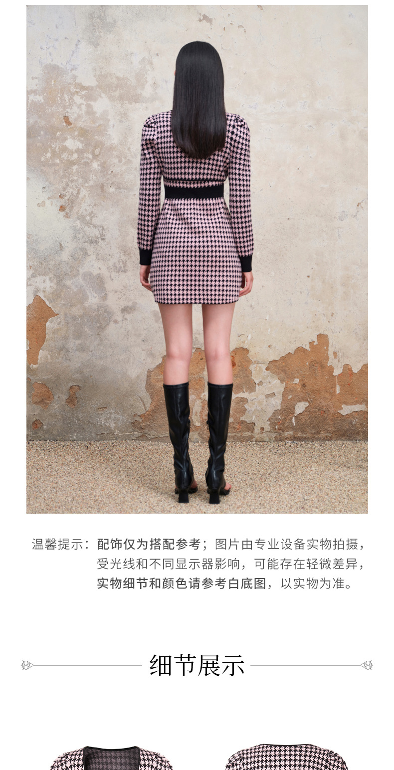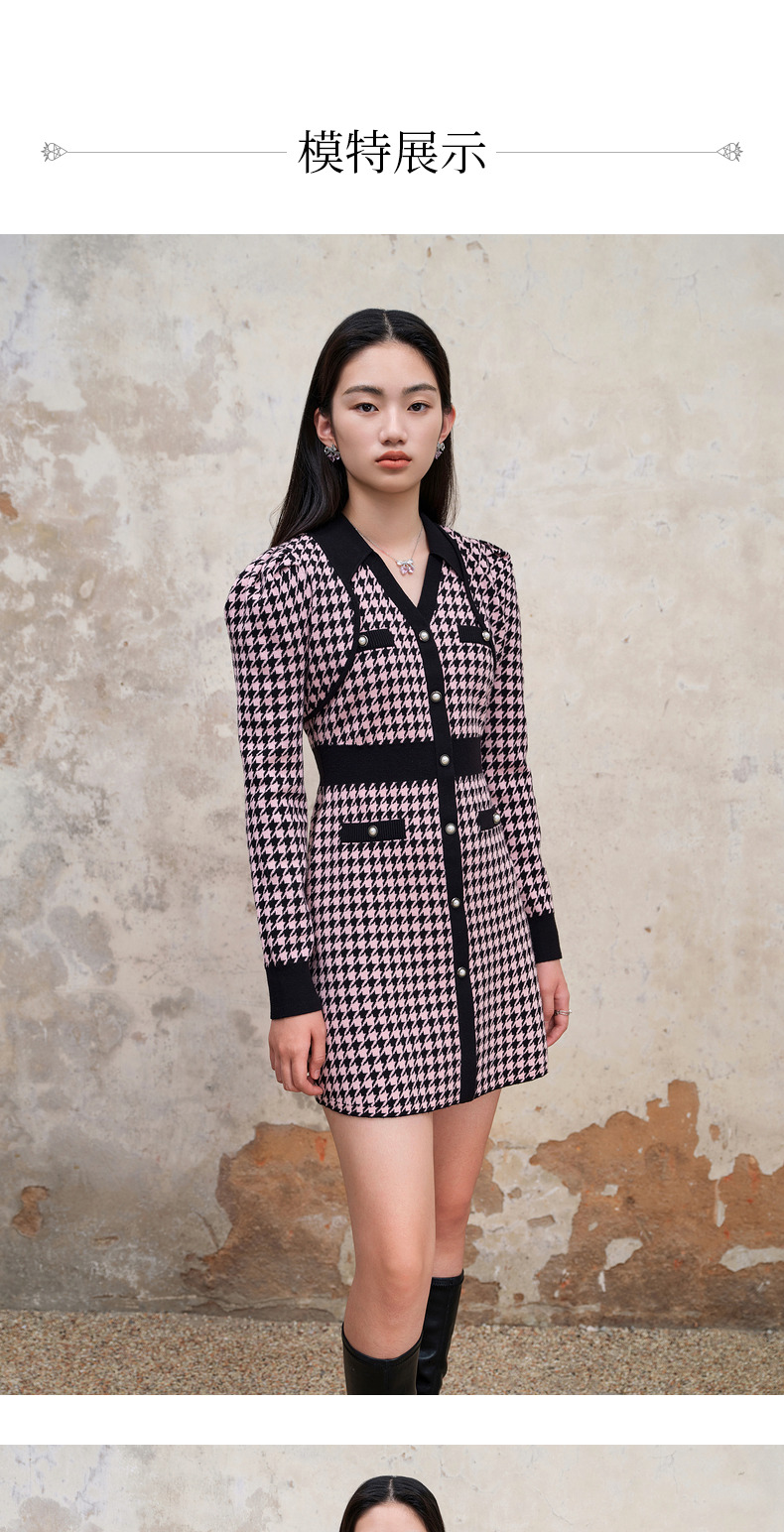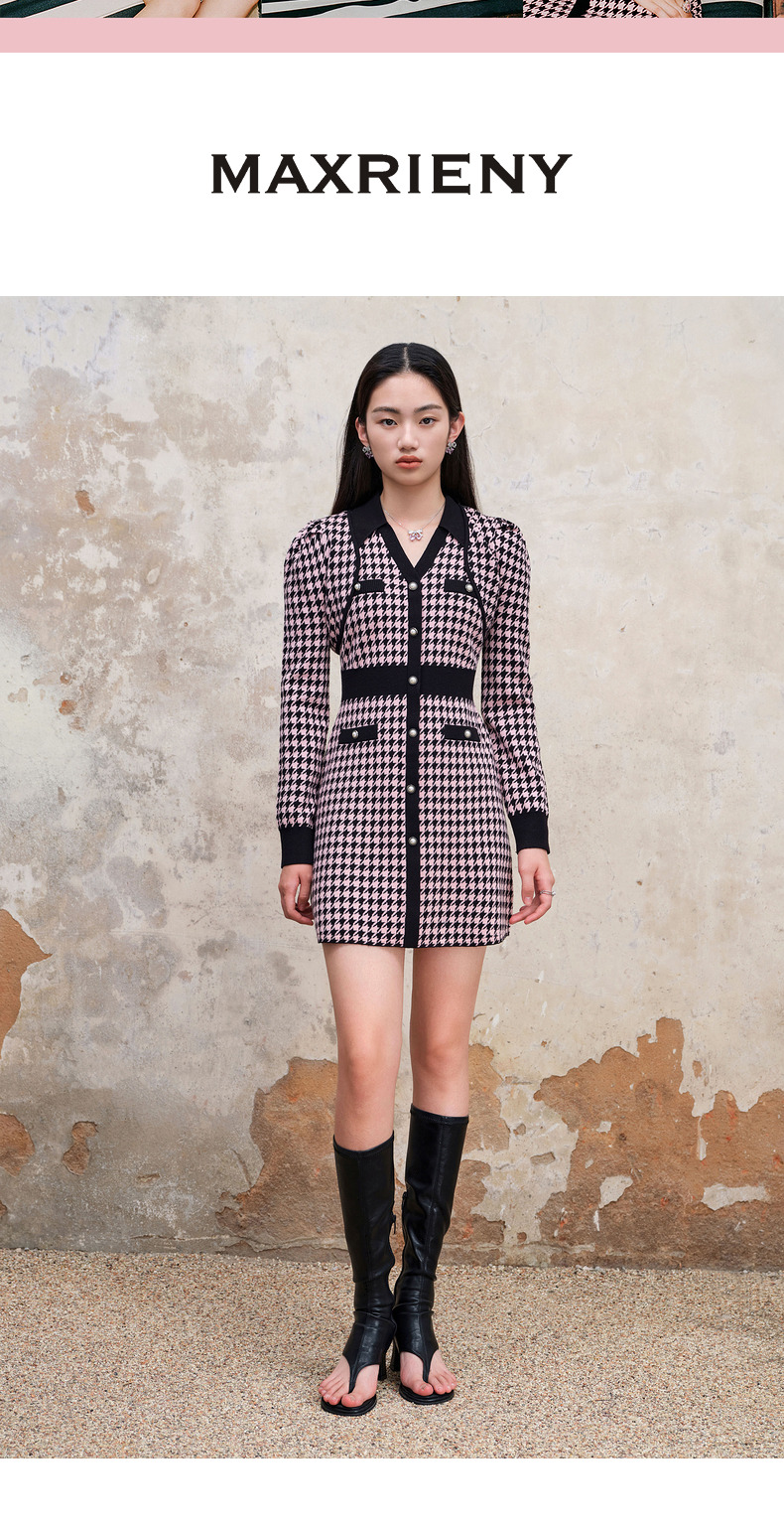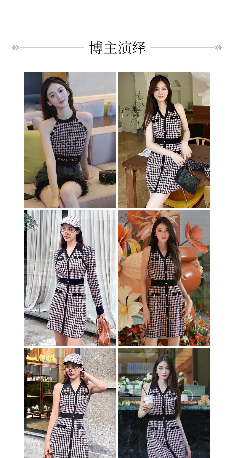 MAXRIENY名媛千金小香连衣裙千鸟格复古针织裙(货号:MS88DR548)