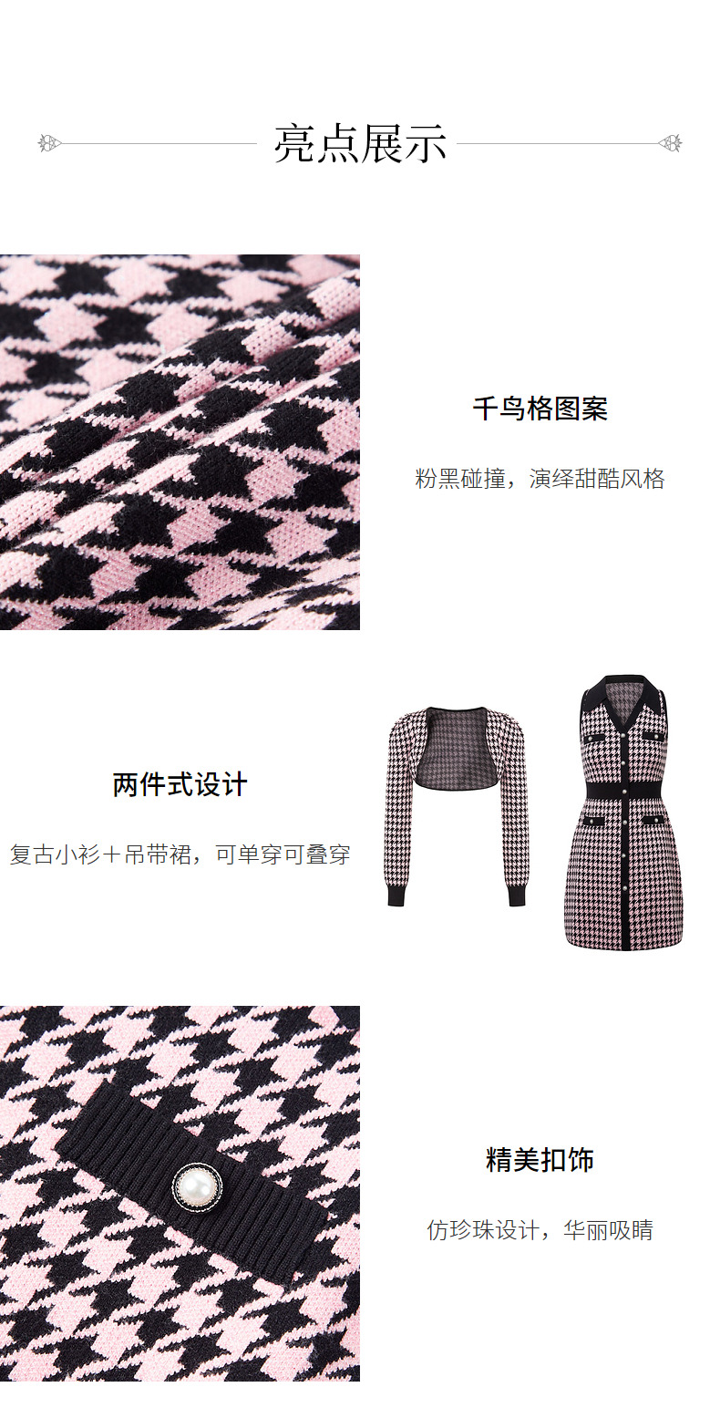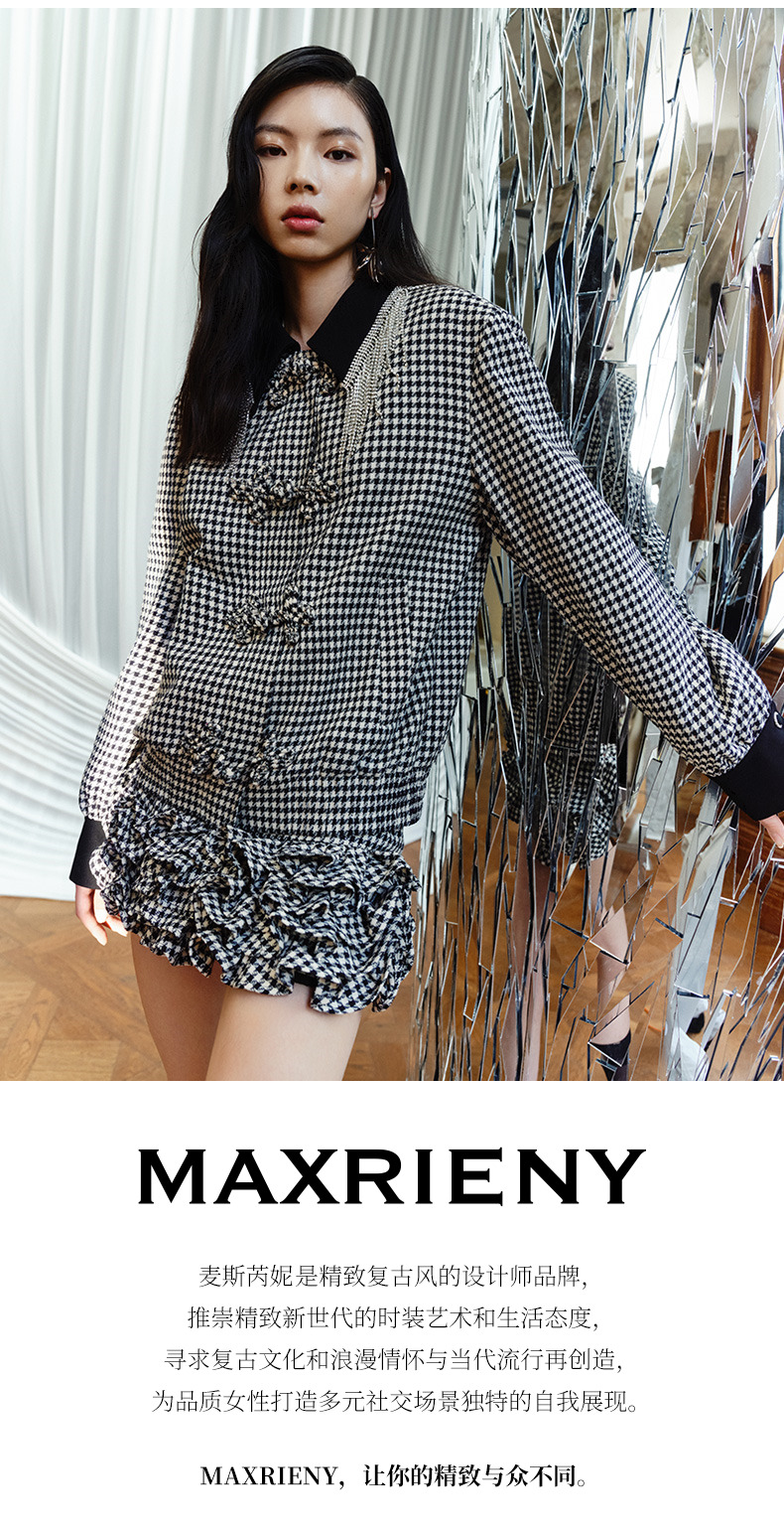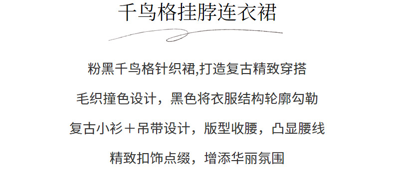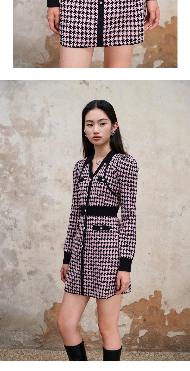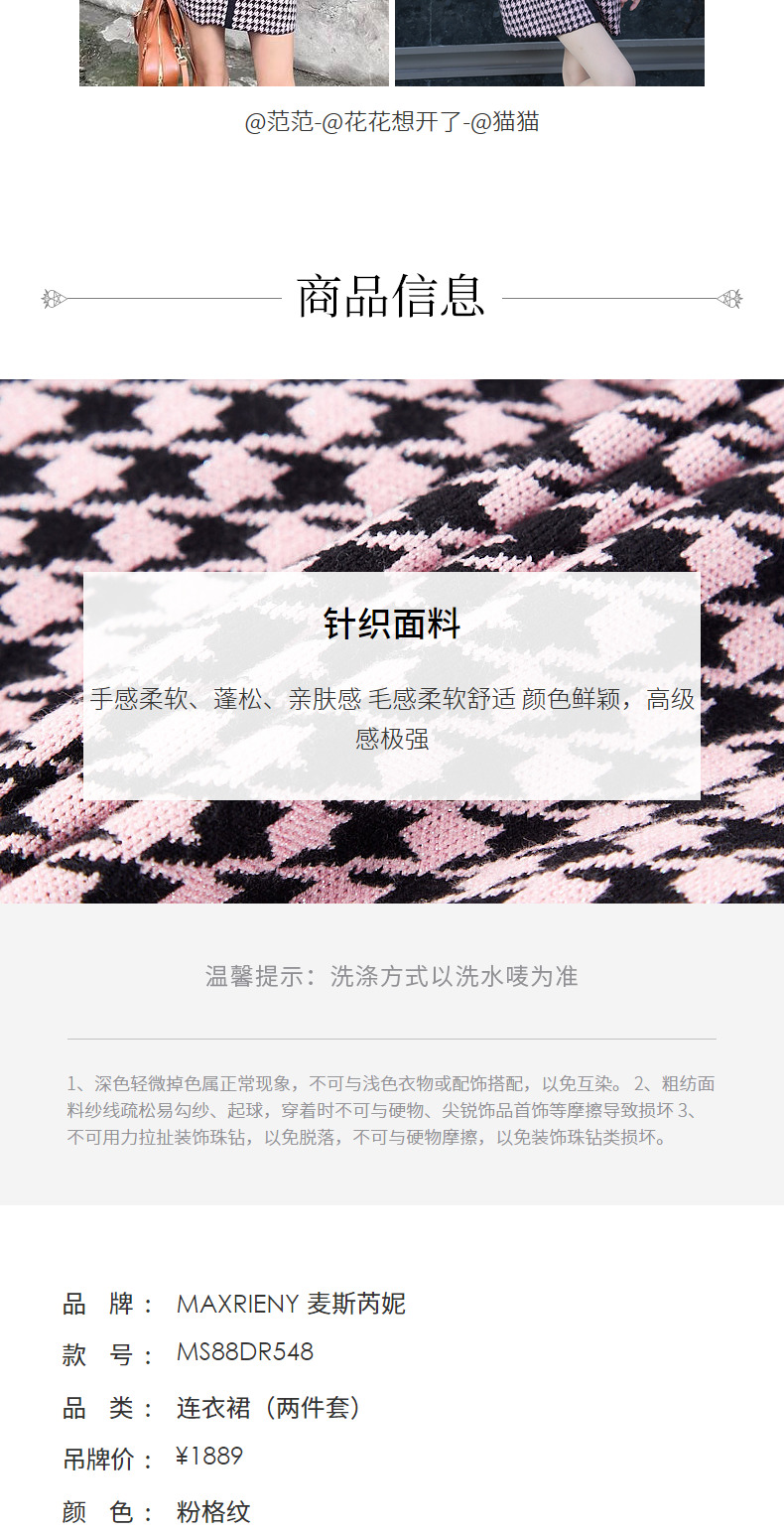 MAXRIENY名媛千金小香连衣裙千鸟格复古针织裙(货号:MS88DR548)