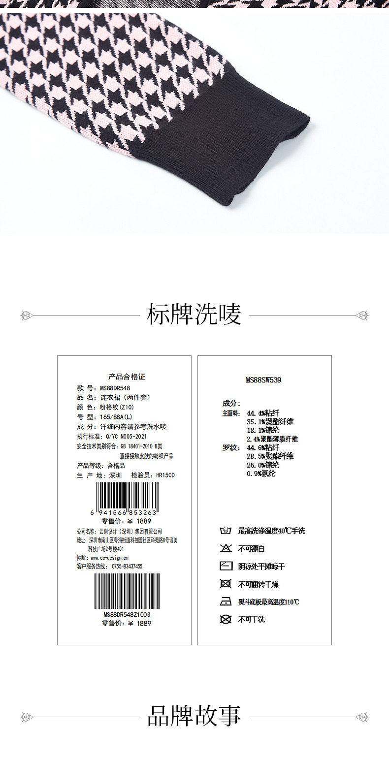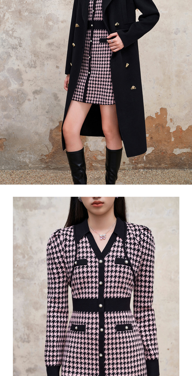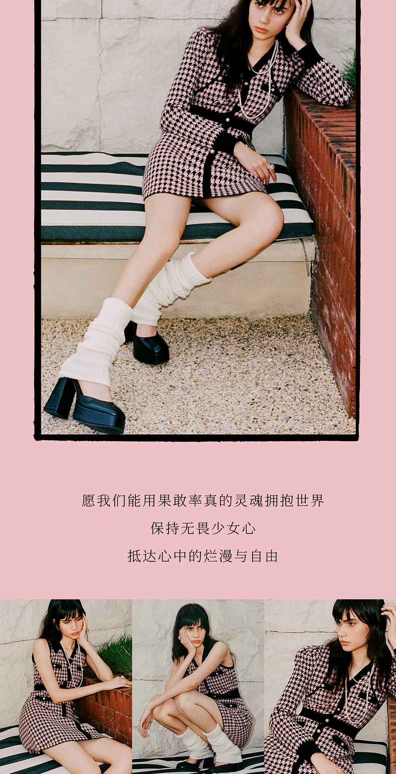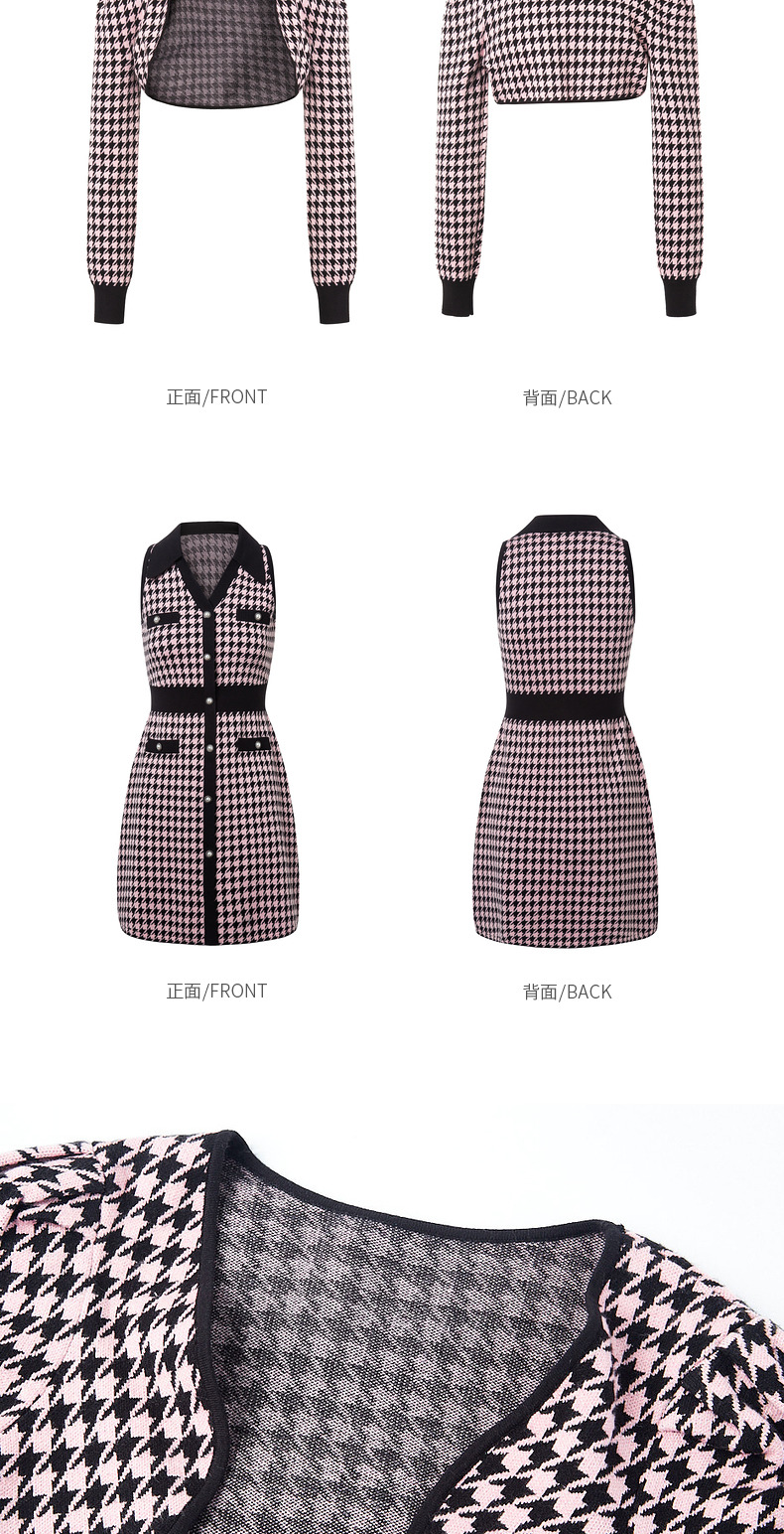 MAXRIENY名媛千金小香连衣裙千鸟格复古针织裙(货号:MS88DR548)