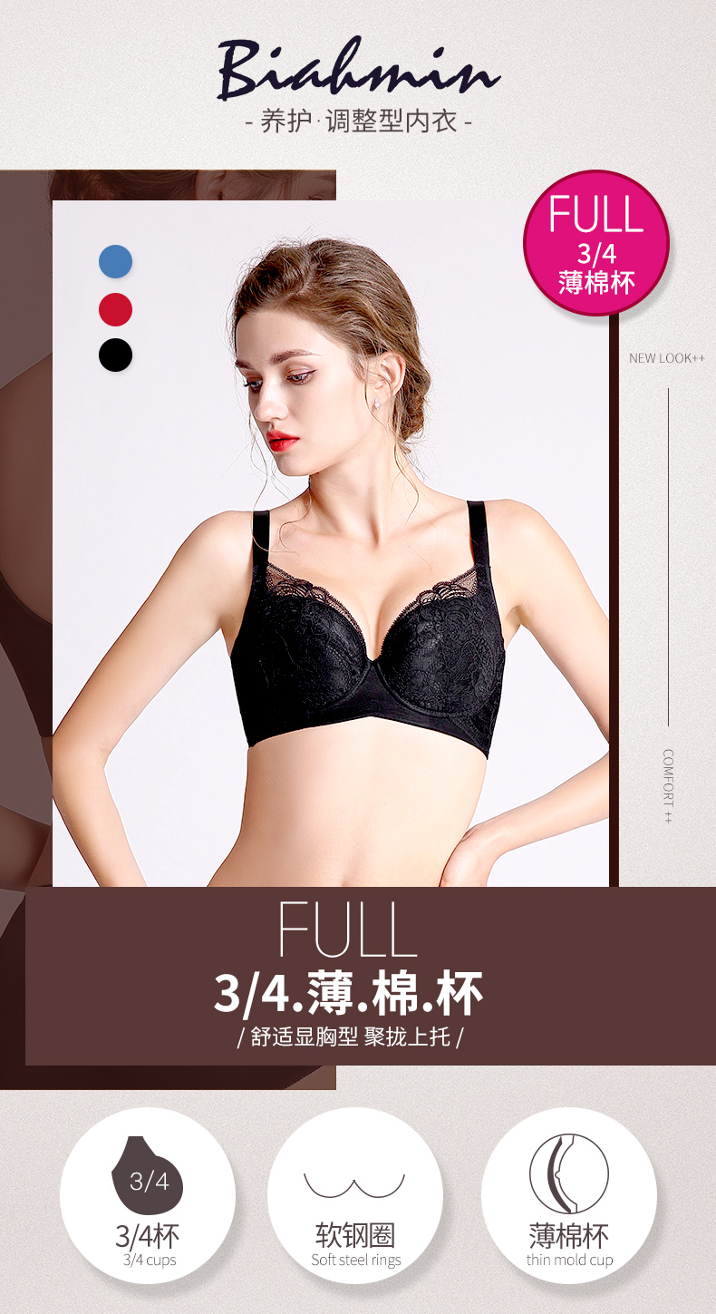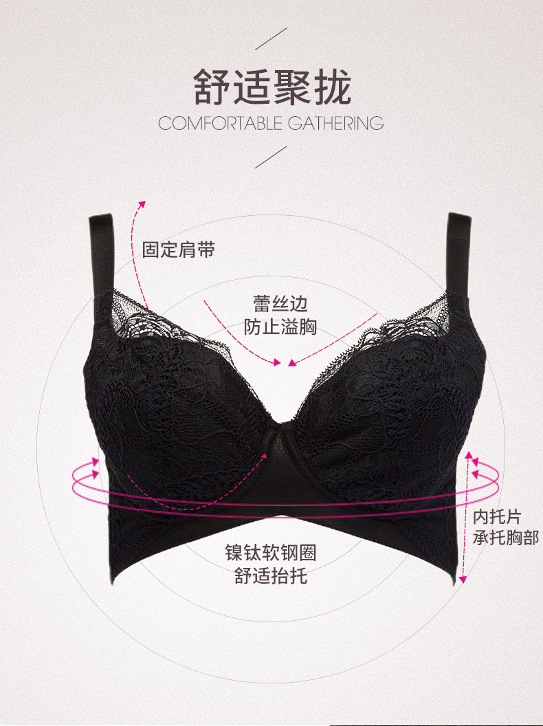 贝佳人新品胸托显胸小内衣女聚拢缩胸上托侧收胸衣聚拢调整型文胸