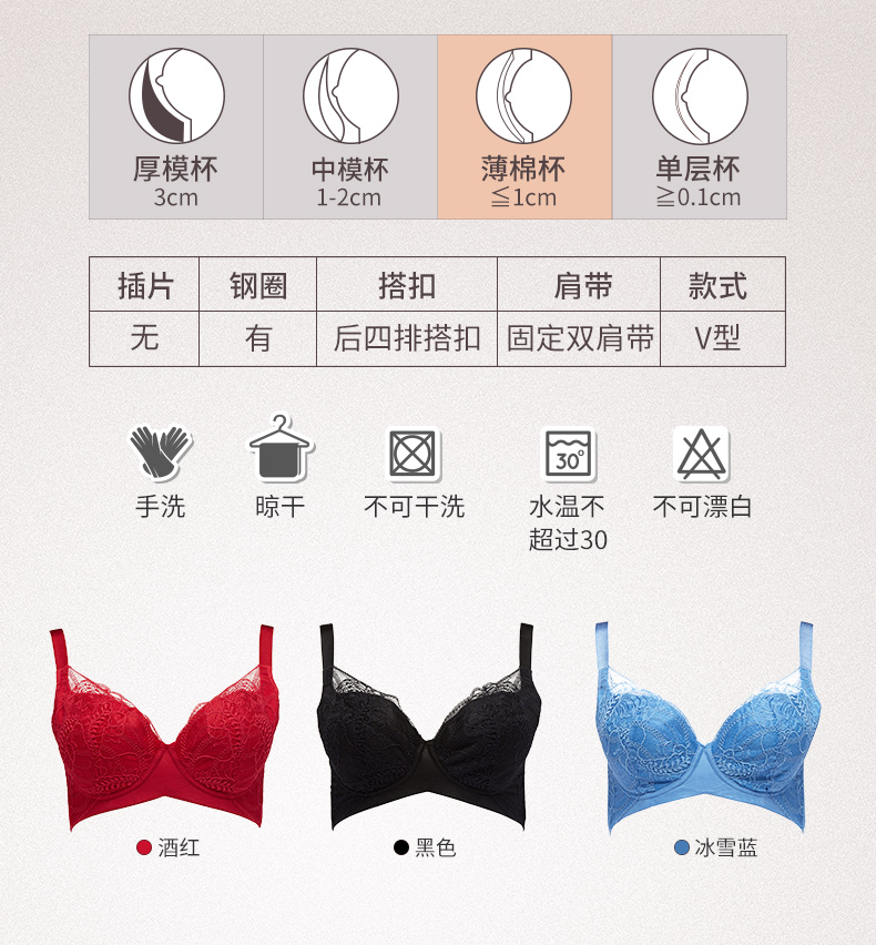 贝佳人新全罩杯薄款深V聚拢美背内衣大胸显小女软钢圈承托文胸BW92914