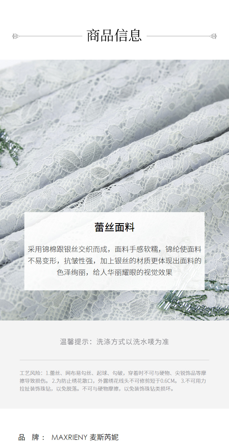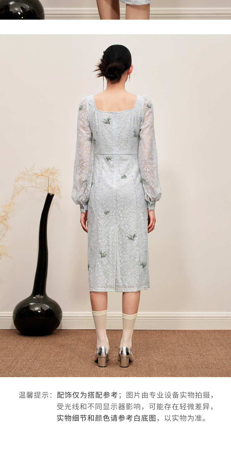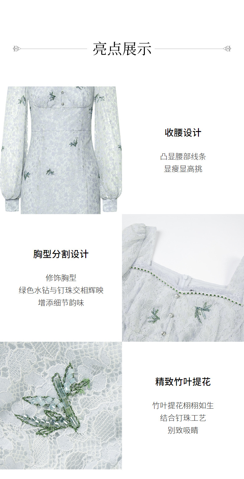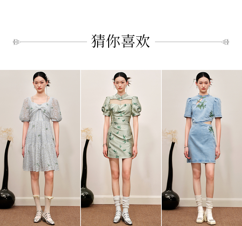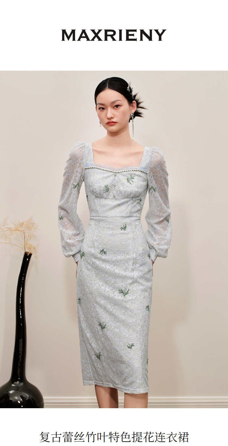 【竹子系列-商场同款】MAXRIENY复古提花连衣裙薄荷曼波风穿搭(货号:MC88DR539)