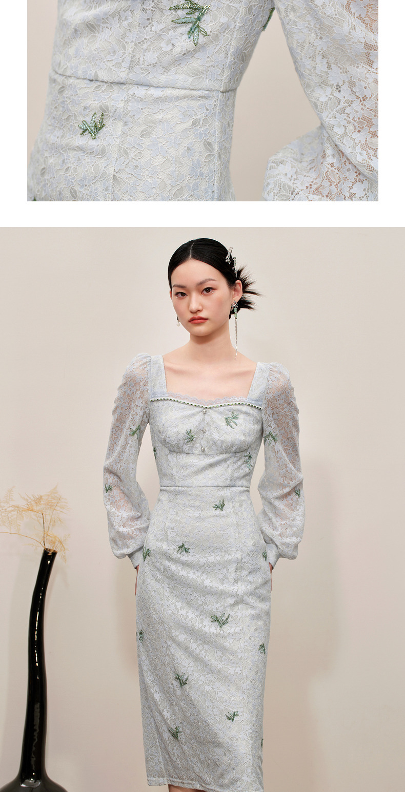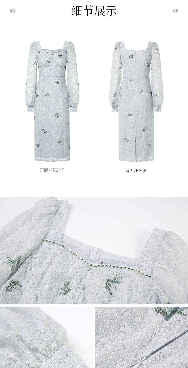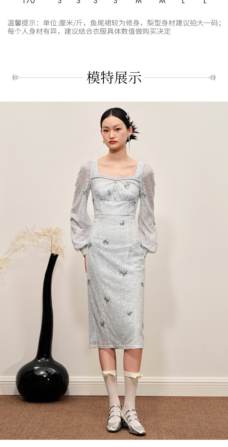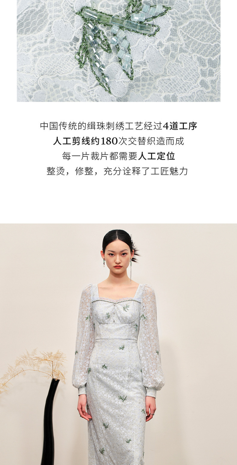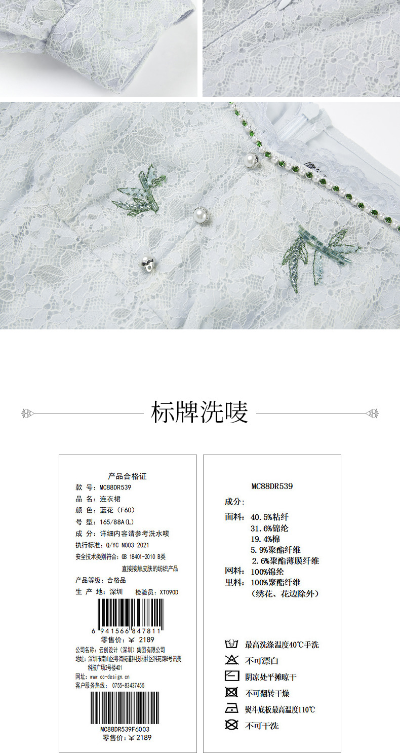 【竹子系列-商场同款】MAXRIENY复古提花连衣裙薄荷曼波风穿搭(货号:MC88DR539)