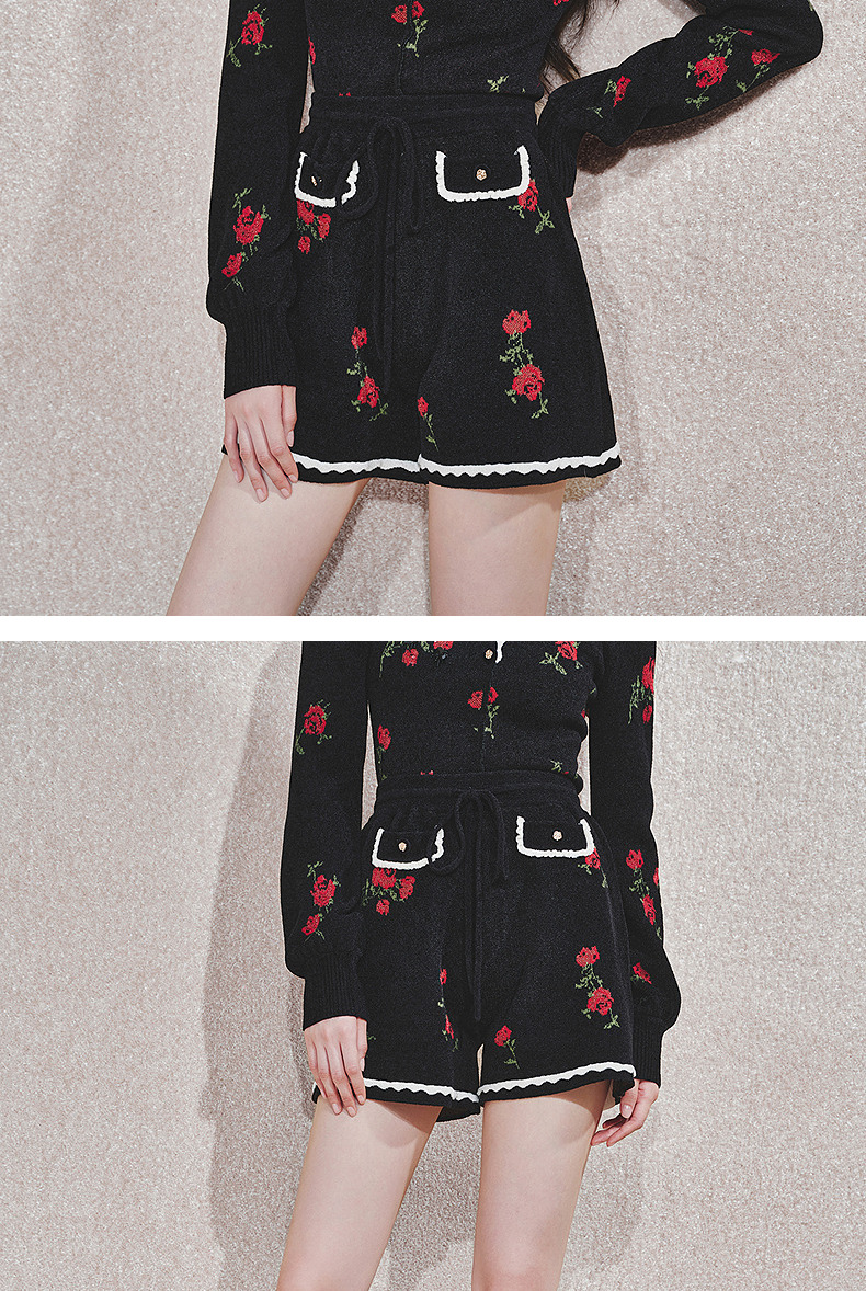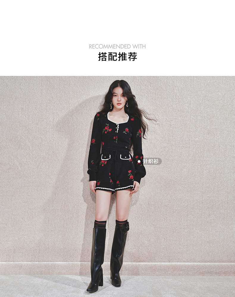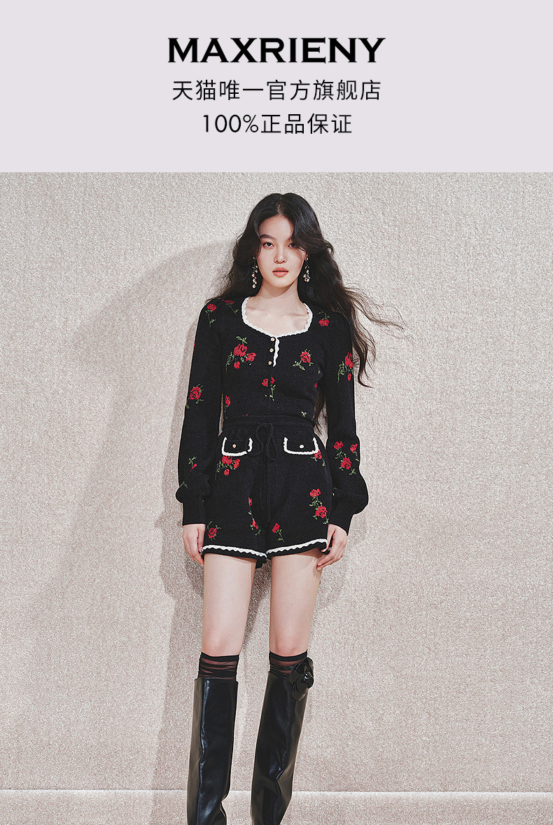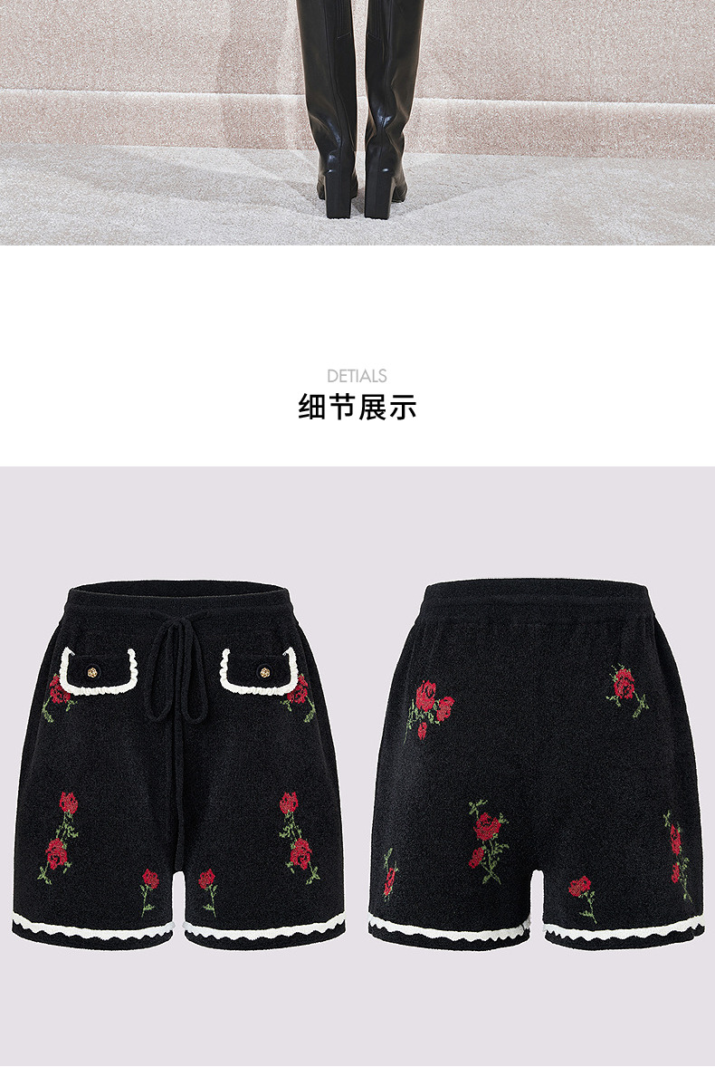 MAXRIENYMAXRIENY玫瑰绣花A字高腰短裤女修身(货号:MC85PA766)