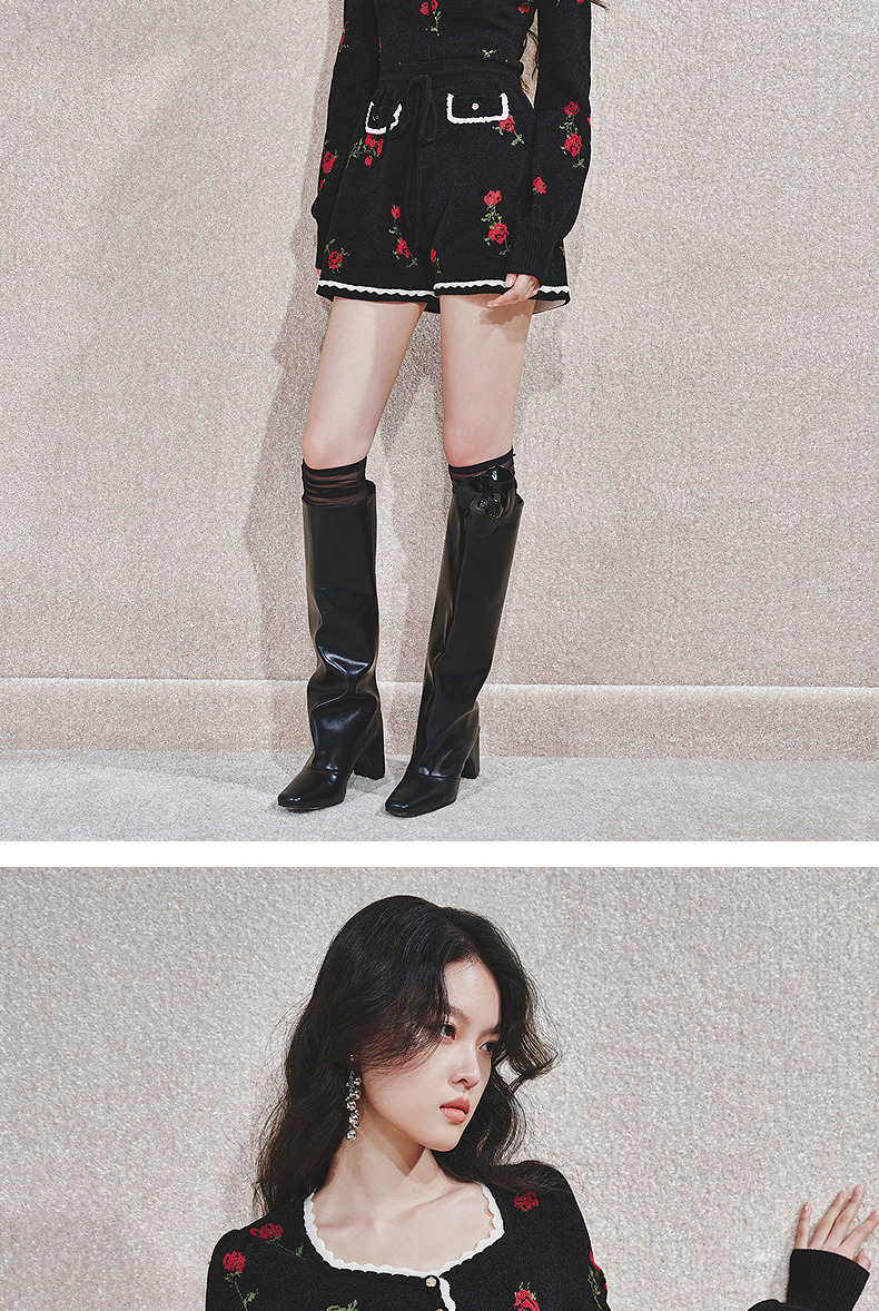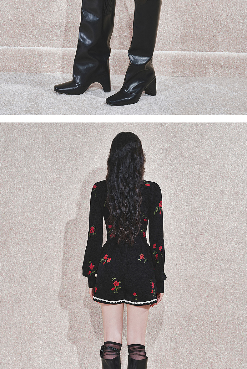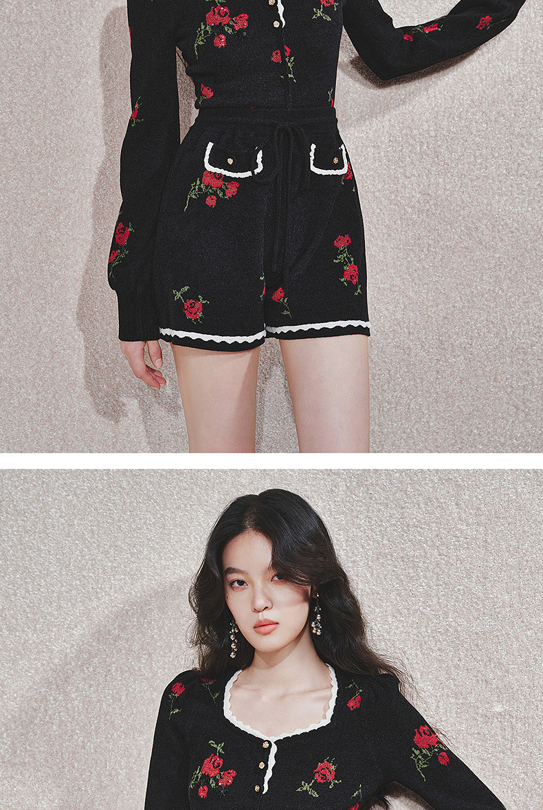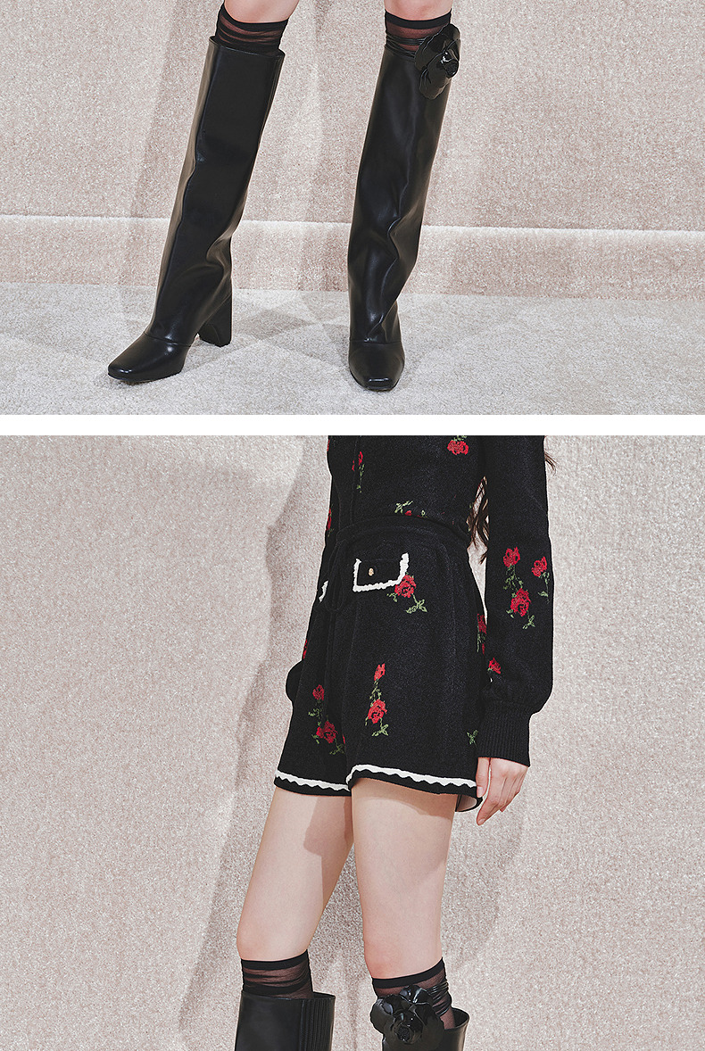 MAXRIENYMAXRIENY玫瑰绣花A字高腰短裤女修身(货号:MC85PA766)