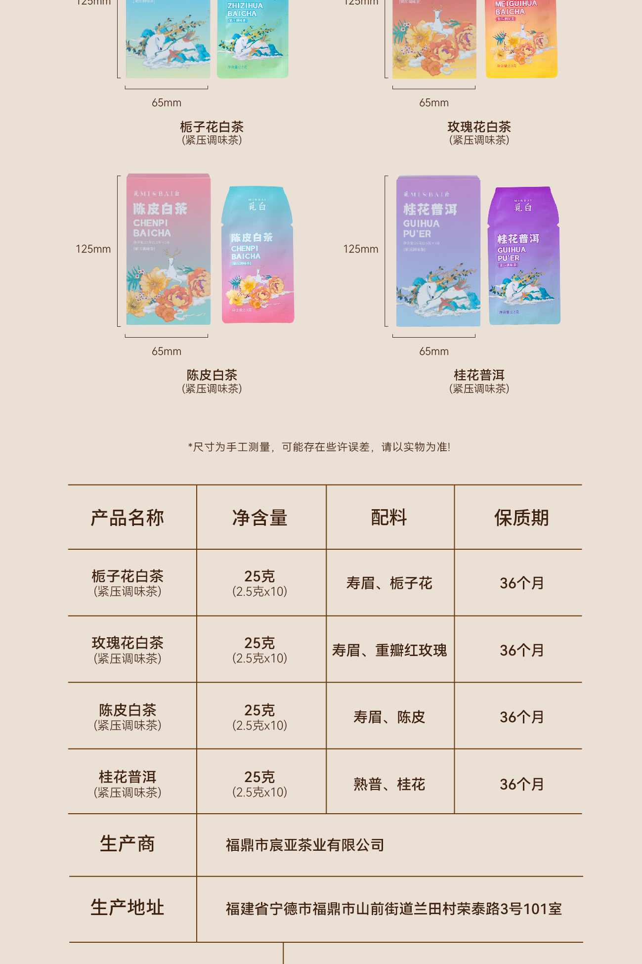 觅白【外养组合】清新日常款清新四味日常花香果香紧压调味茶PA