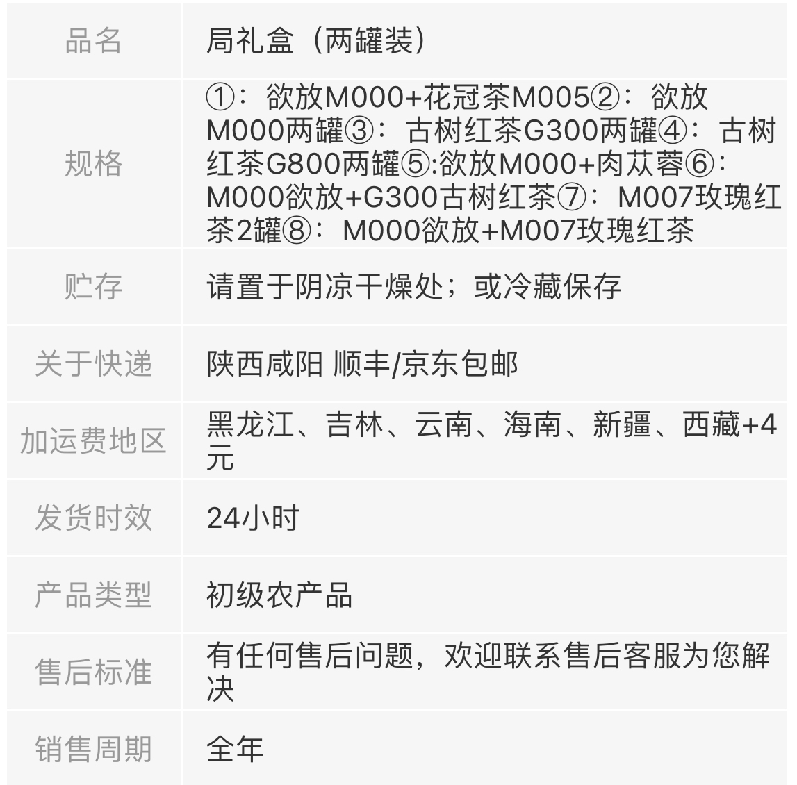 | F | M000欲放1罐(45g/罐)+G300古树红茶1罐(50g/罐) |