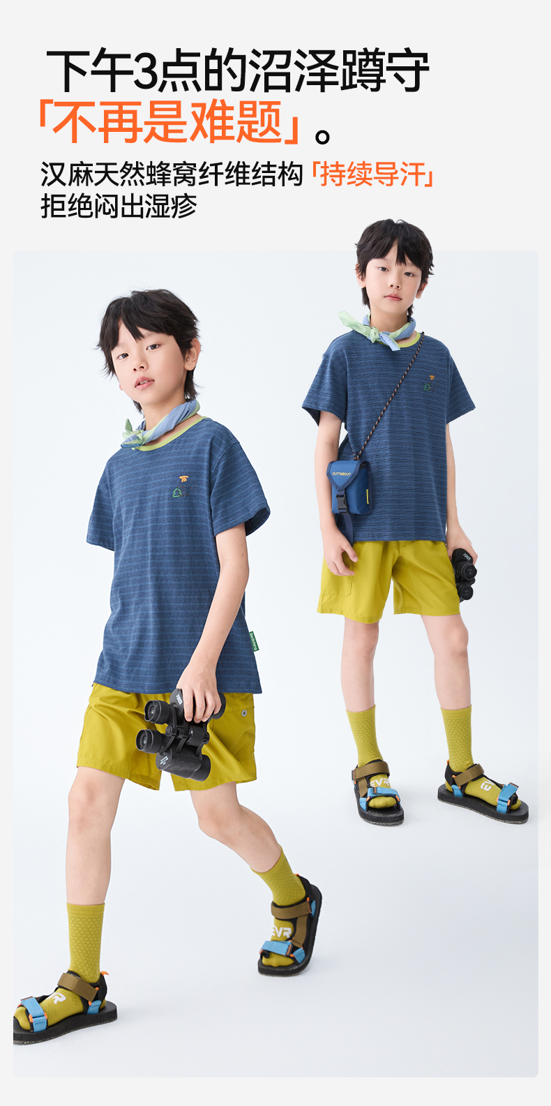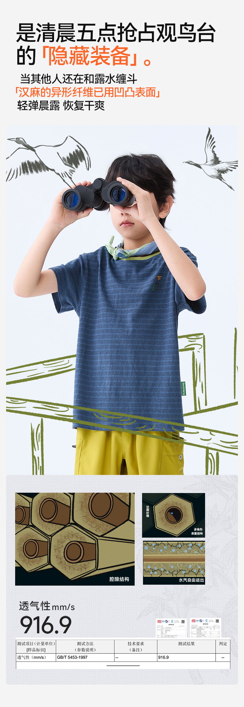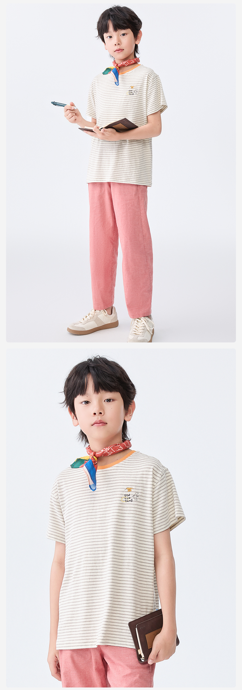 【水亭风观鸟短袖T恤】森林棠25夏款清凉透气棉麻亲子款条纹T恤40322517