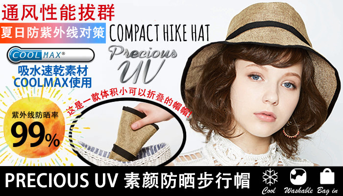 日本COGIT蔻吉特Precious UV 蓬松大帽檐防晒帽渔夫帽 可阻挡99%紫外线 折叠便携吸汗