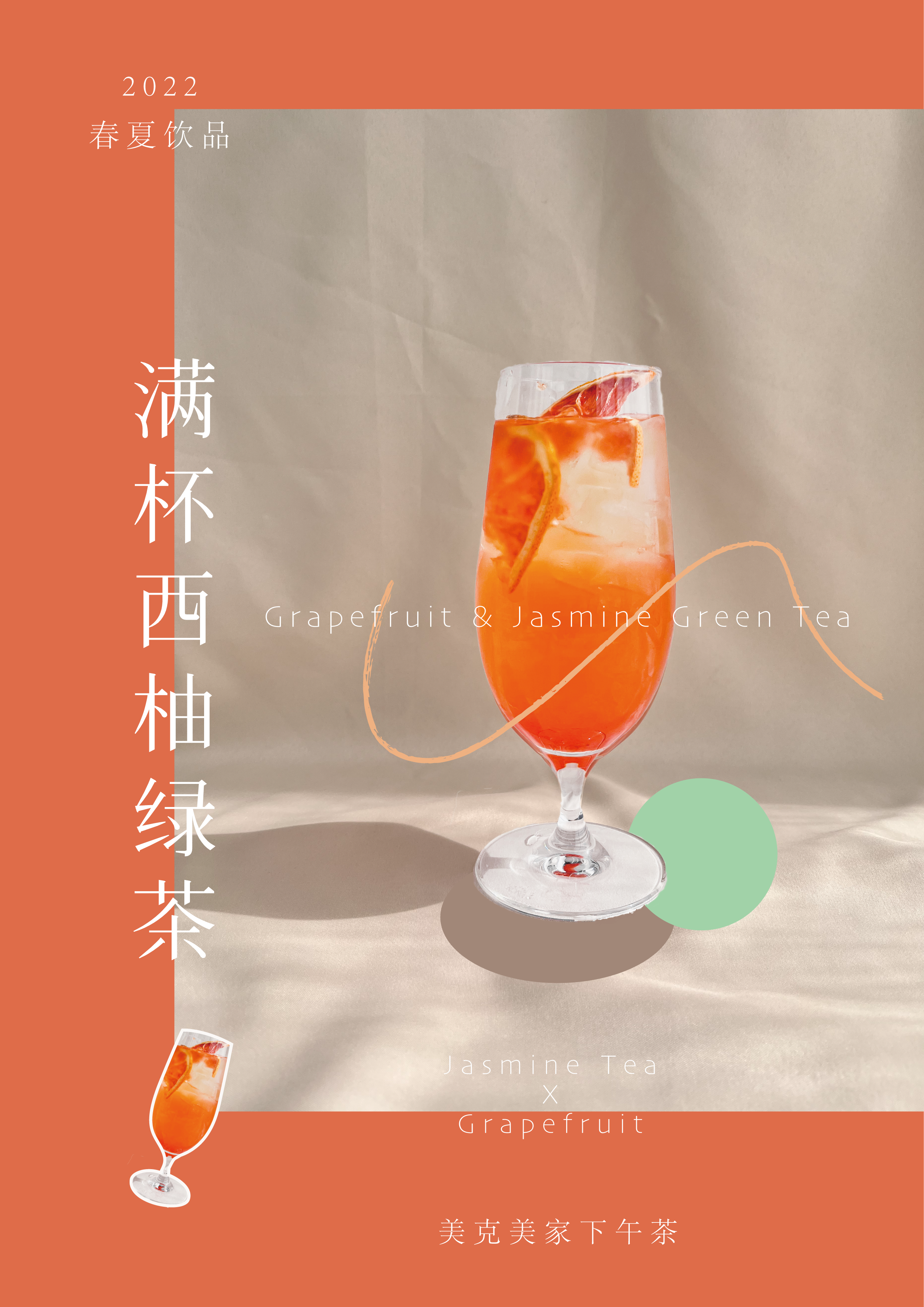 清爽的茉莉绿茶与西柚的结合,风味清新怡人平衡的果酸与突出的果香,超级适合春夏季节的一款饮品