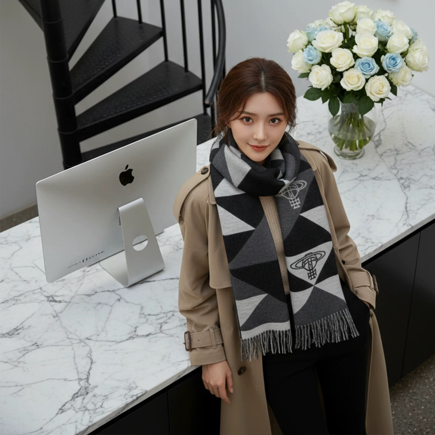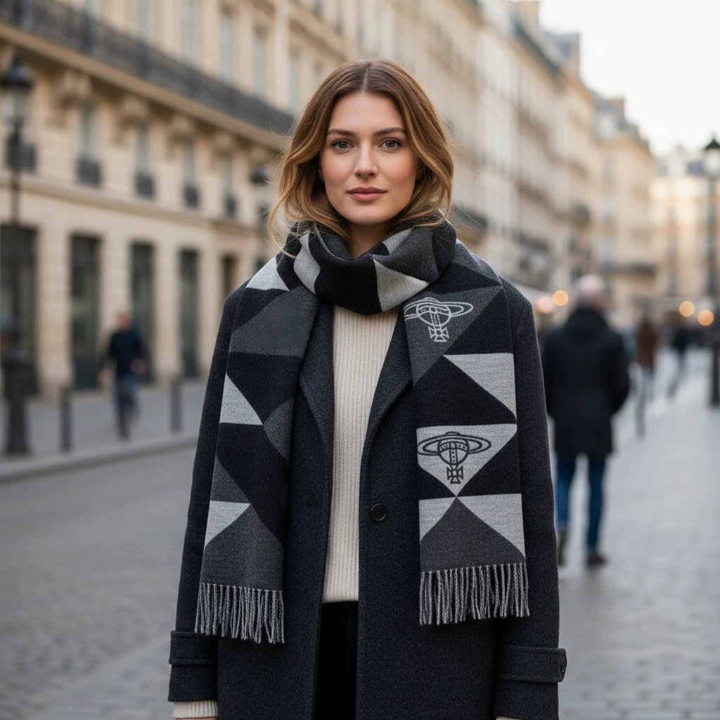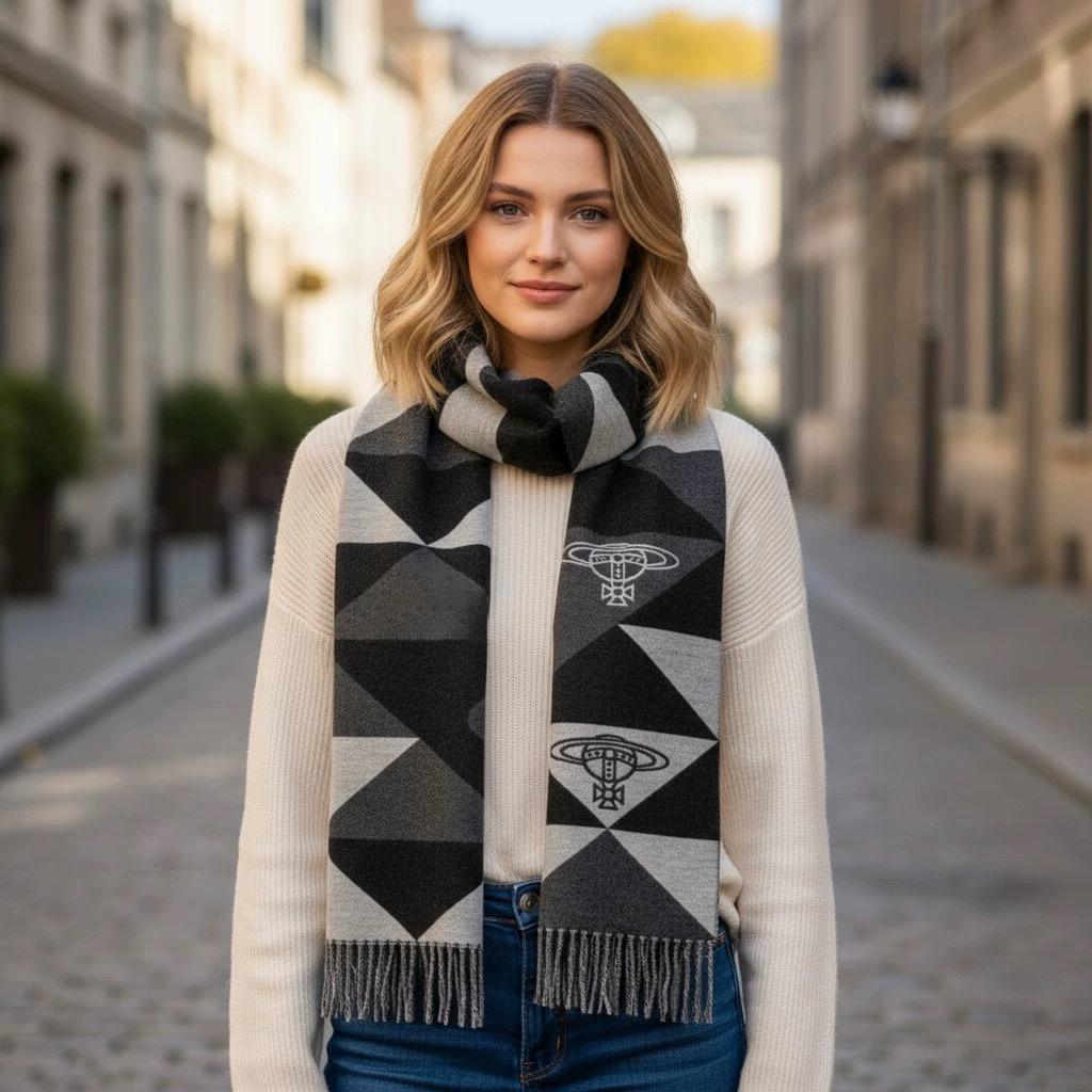 🆕𝐕𝐢𝐯𝐢𝐞𝐧𝐧𝐞 𝐖𝐞𝐬𝐭𝐰𝐨𝐨𝐝🪐顶级品质英国朋克教母“西太后”最爱的土星❗❗从精神上,Vivenne Westwood才是最能代表英国人的时尚品牌.本季强推的一款产品.❗大“土星”Logo提花,土星的意义也是和西太后的设计理念是一致的.面料采用了90%最具张力羊毛,10%羊绒.尺寸:200*40,几何设计,手感柔软不扎手,超级受追捧的爆款!