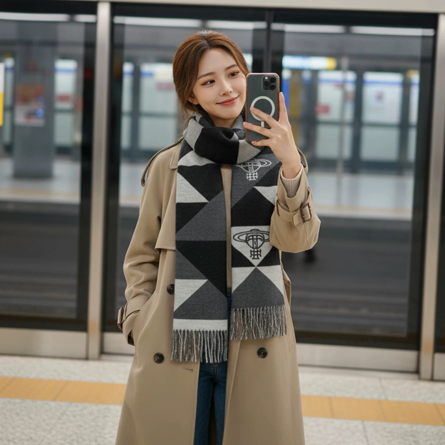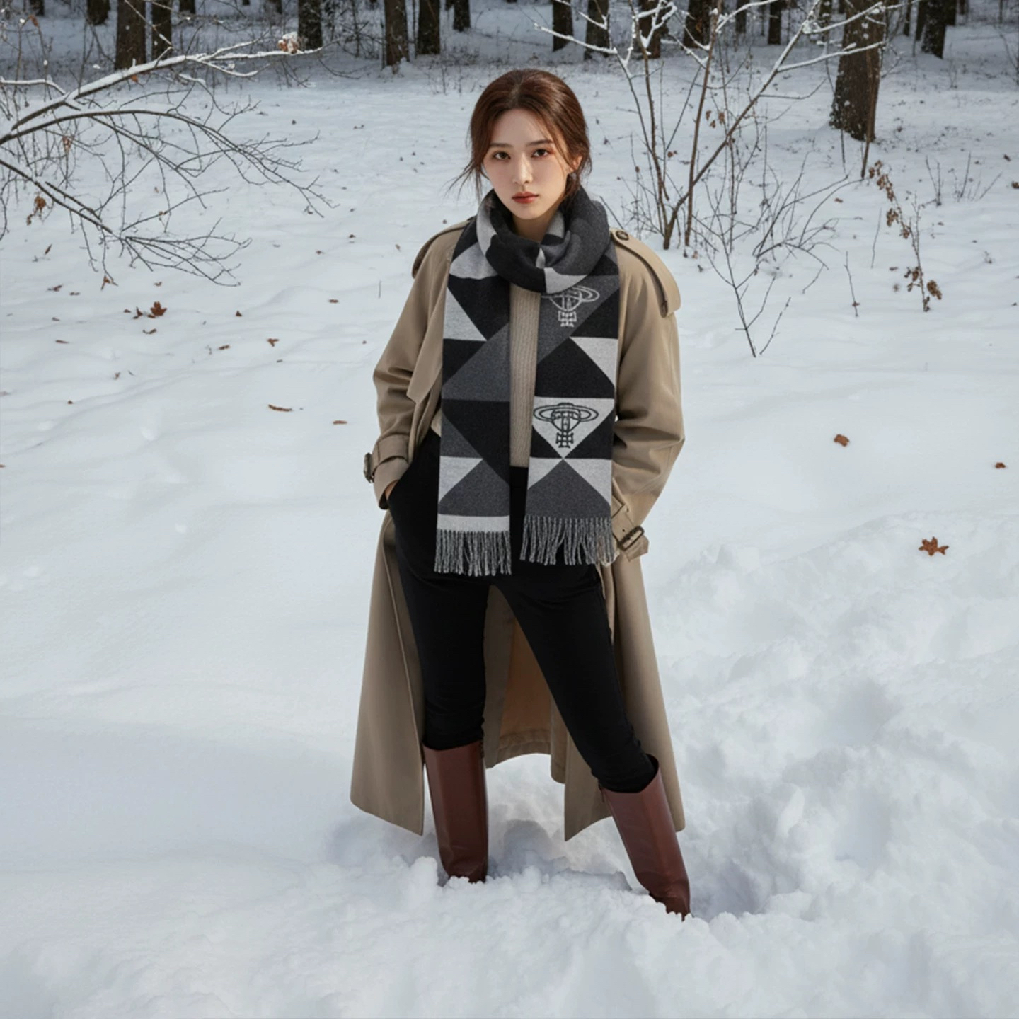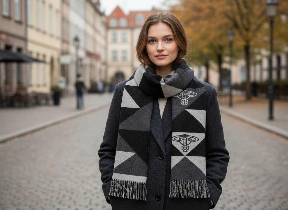 🆕𝐕𝐢𝐯𝐢𝐞𝐧𝐧𝐞 𝐖𝐞𝐬𝐭𝐰𝐨𝐨𝐝🪐顶级品质英国朋克教母“西太后”最爱的土星❗❗从精神上,Vivenne Westwood才是最能代表英国人的时尚品牌.本季强推的一款产品.❗大“土星”Logo提花,土星的意义也是和西太后的设计理念是一致的.面料采用了90%最具张力羊毛,10%羊绒.尺寸:200*40,几何设计,手感柔软不扎手,超级受追捧的爆款!