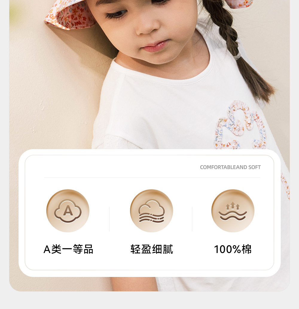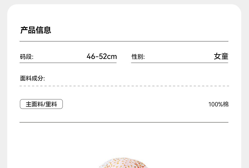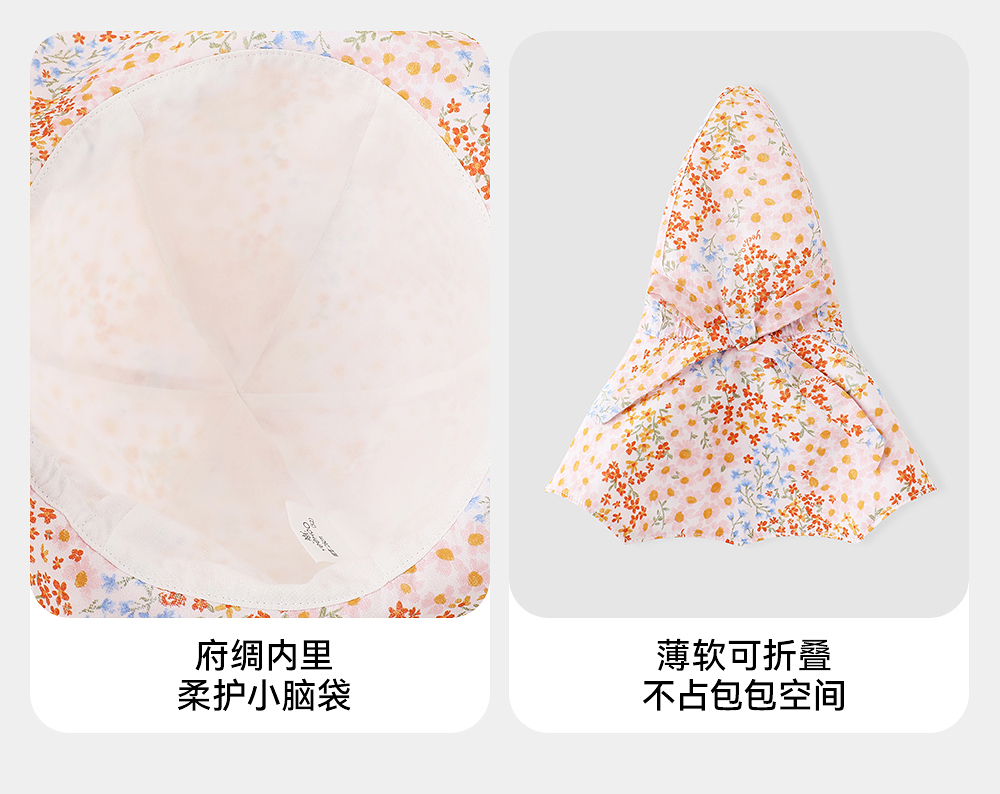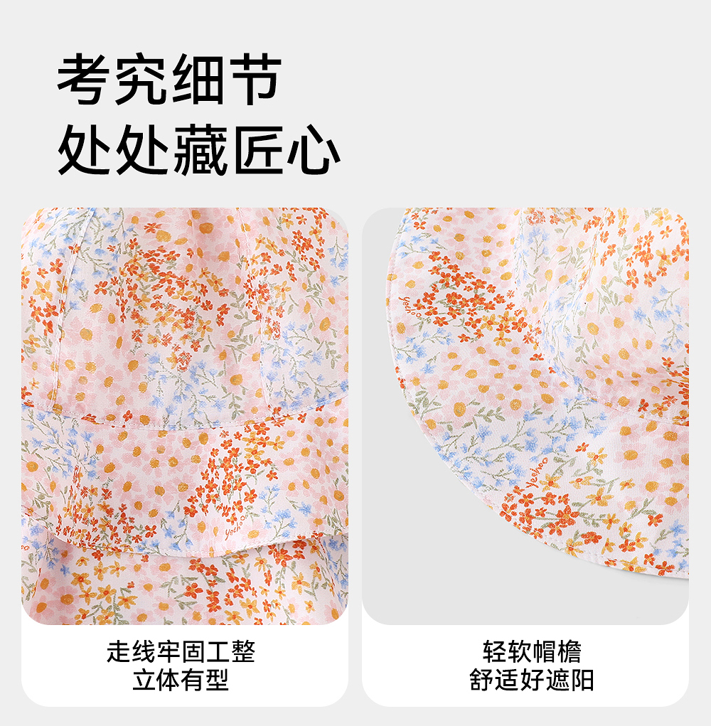 【商场同款】英氏儿童帽子夏纯棉遮阳渔夫帽女童可折叠防晒太阳帽