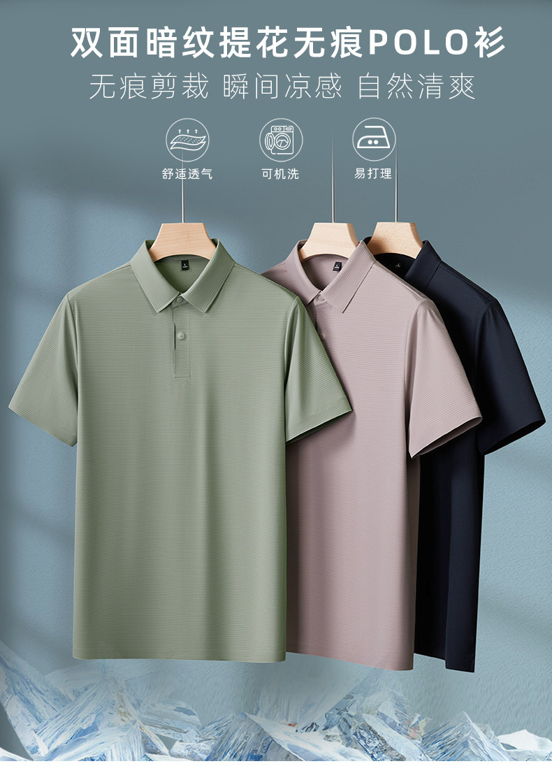 【DKP】大依优型大码男装夏季冰丝无痕POLO衫短袖商务休闲双面暗纹上衣