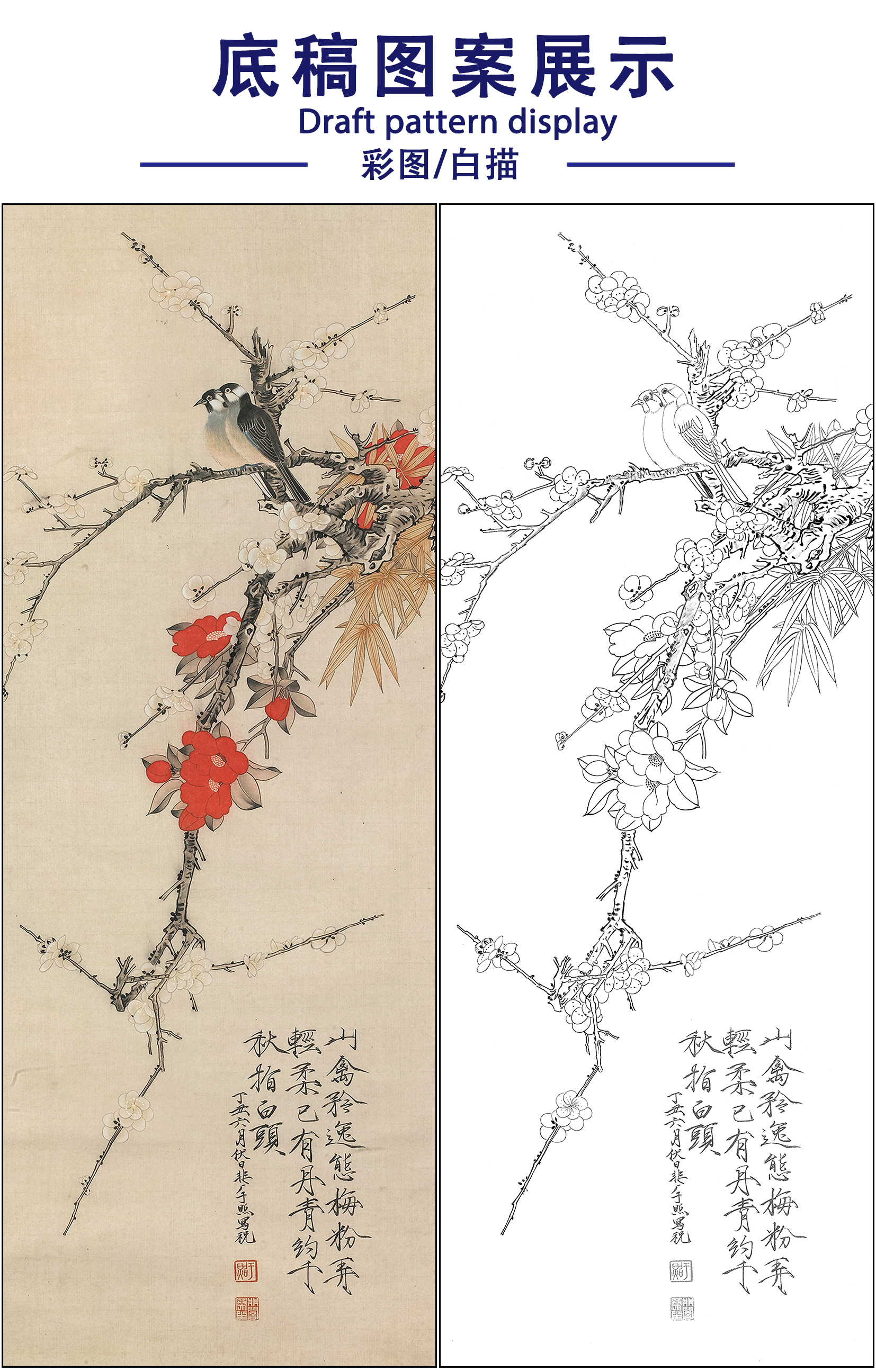 于非闇花鸟工笔画白描底稿《工笔花鸟》临摹勾线高清打印稿FA08