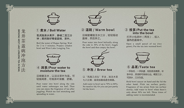 用盖碗饮茶,既可避免尘入茶汤,还可防烫手之苦;饮茶时,掩盖半张半合,茶叶既不入口,茶汤又可徐徐沁出,甚是惬意。若要茶汤浓些,可用茶盖刮一刮茶汤,使茶水翻转,轻刮则淡,重刮则浓,是其妙也。
