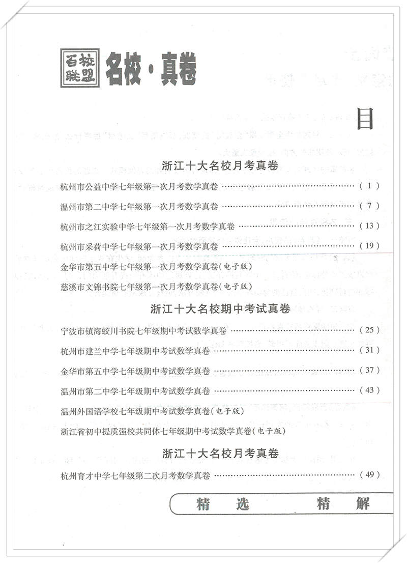 2026百校联盟上册七年级八年级语文数学英语科学浙江十大名校期中期末真题精选同步卷单元期末