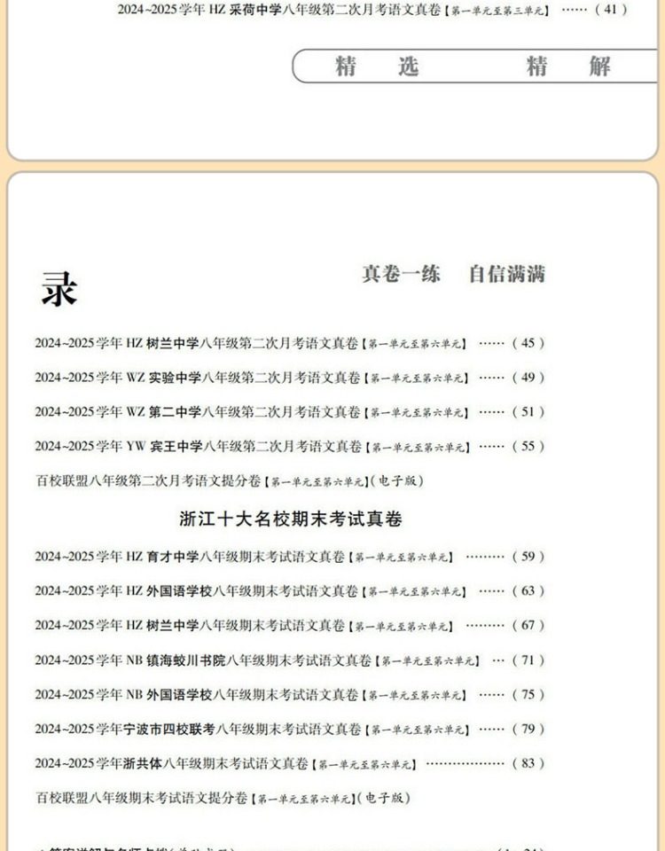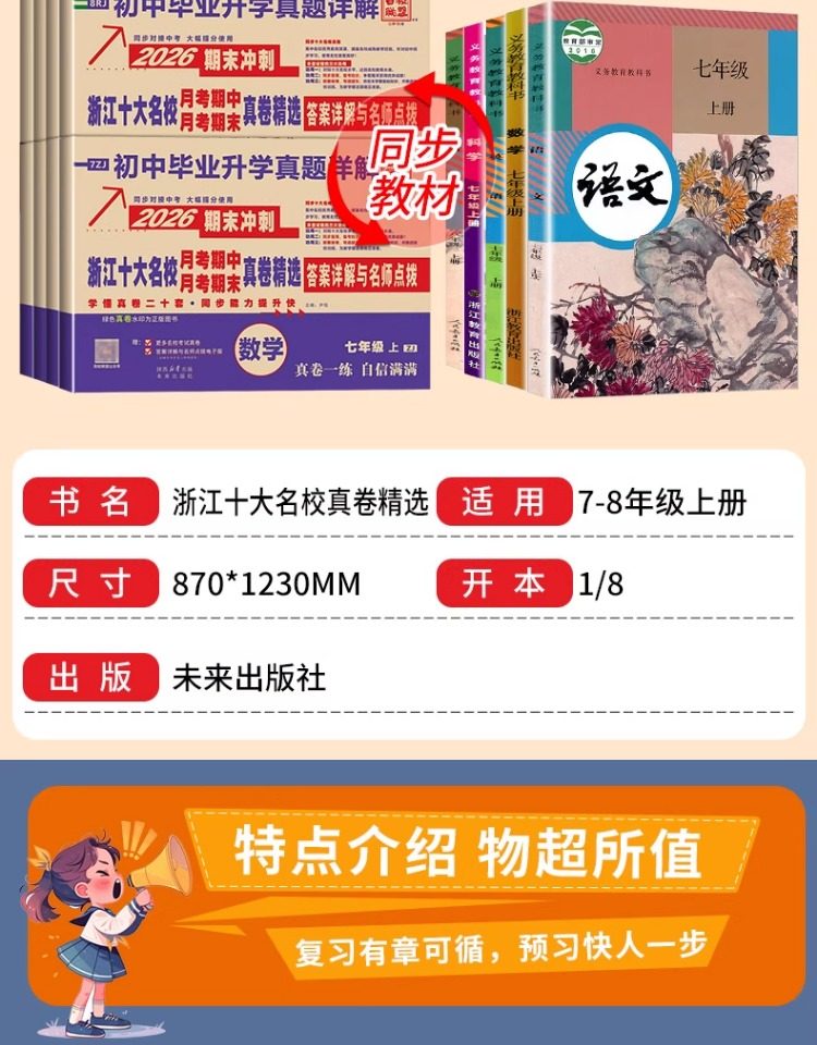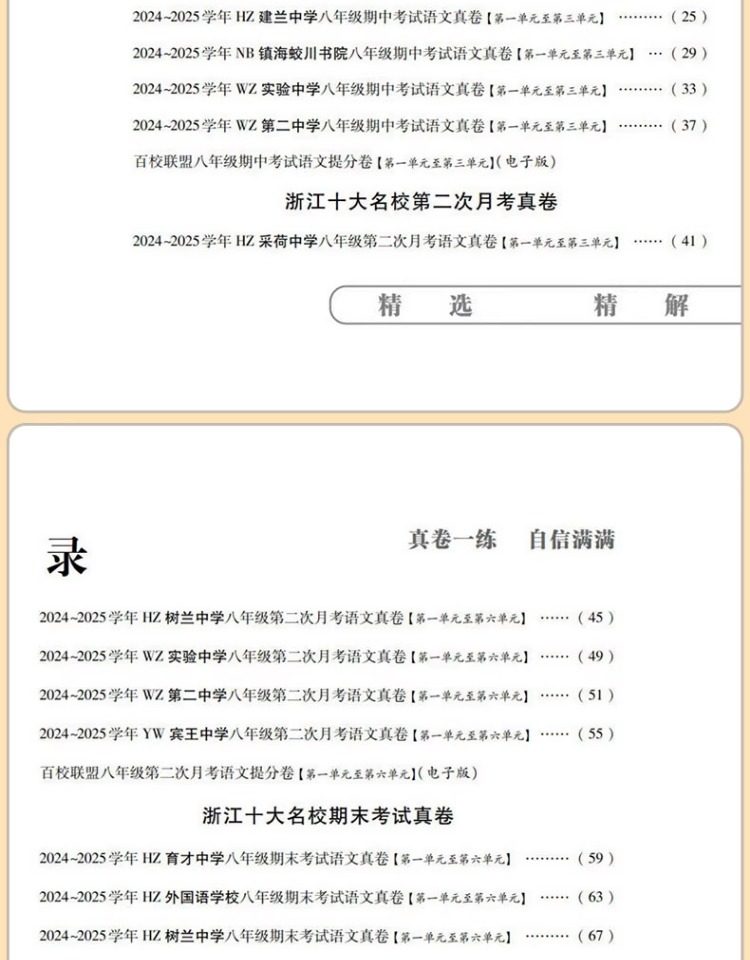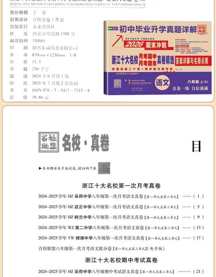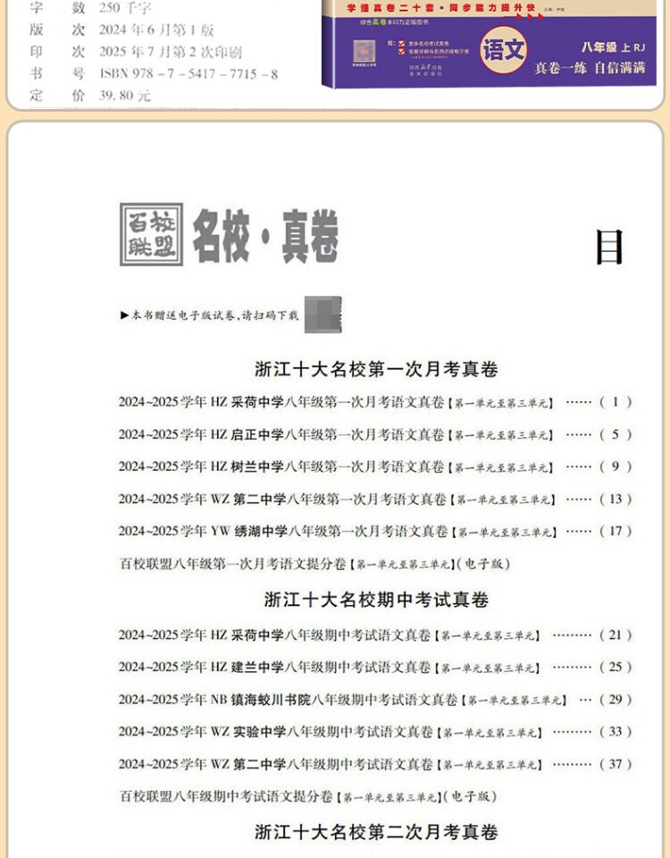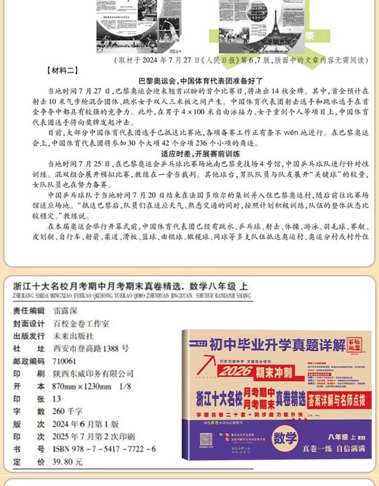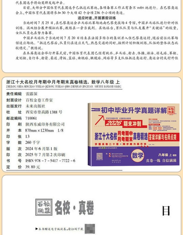 2026百校联盟下册七年级八年级语文数学英语科学浙江十大名校期中期末真题精选同步卷单元期末
