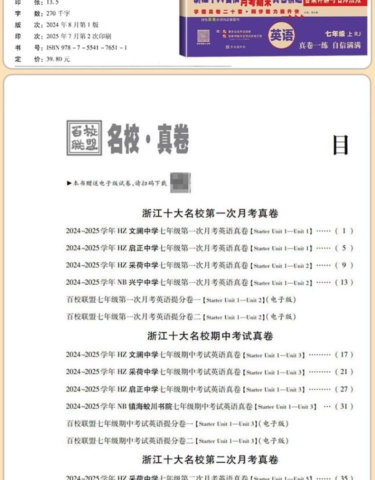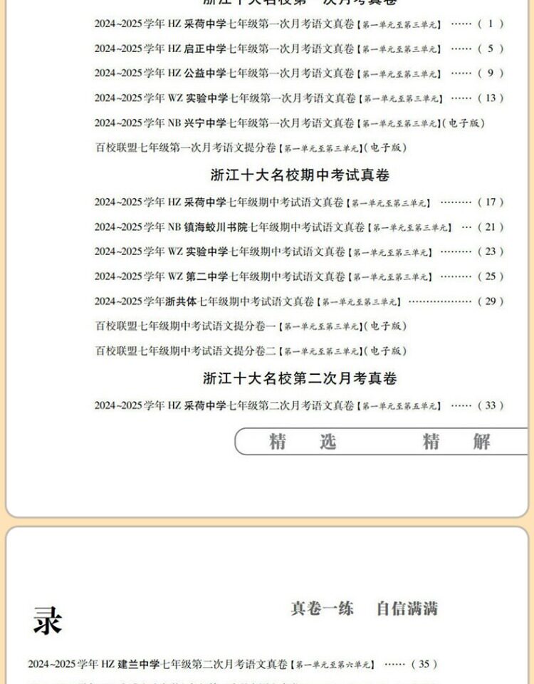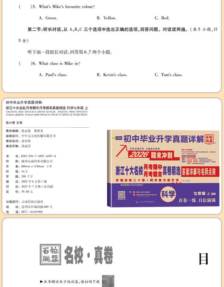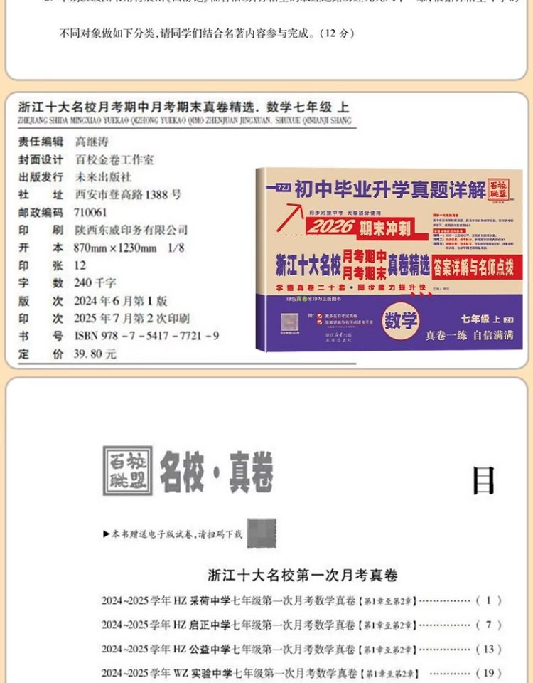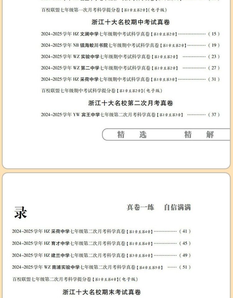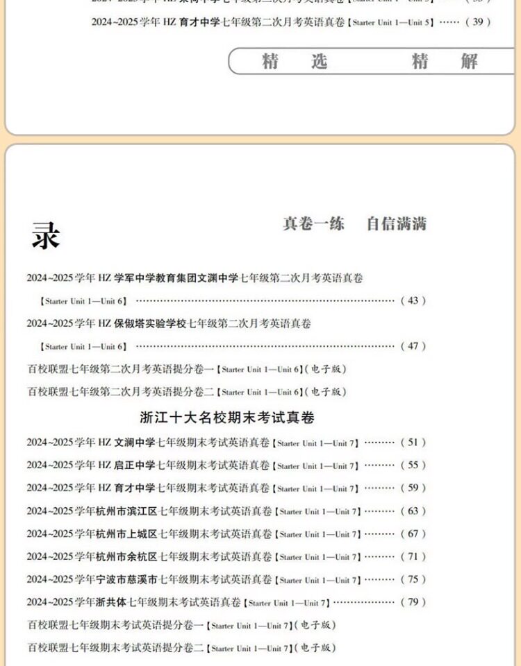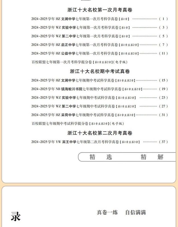 2026百校联盟下册七年级八年级语文数学英语科学浙江十大名校期中期末真题精选同步卷单元期末
