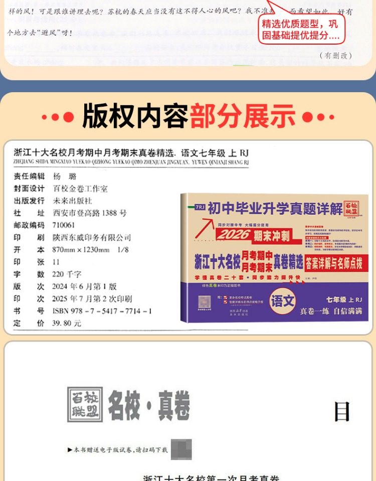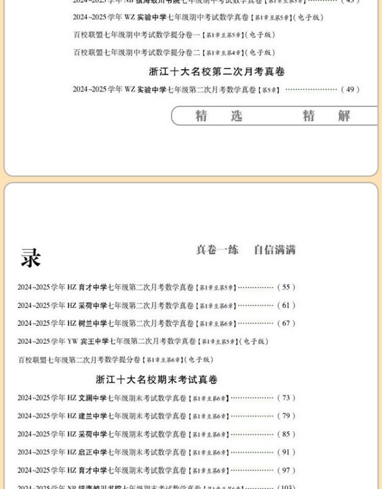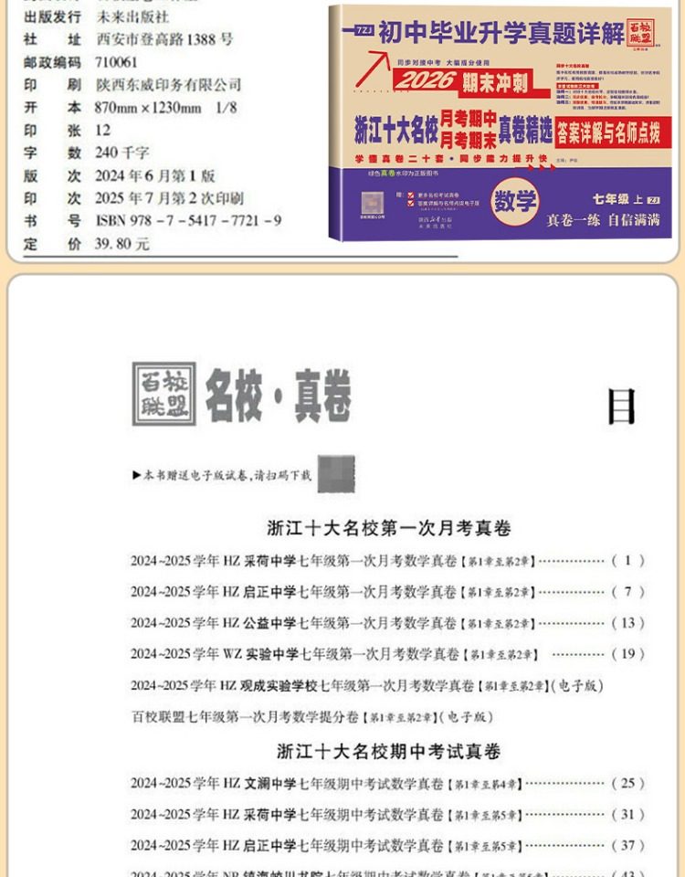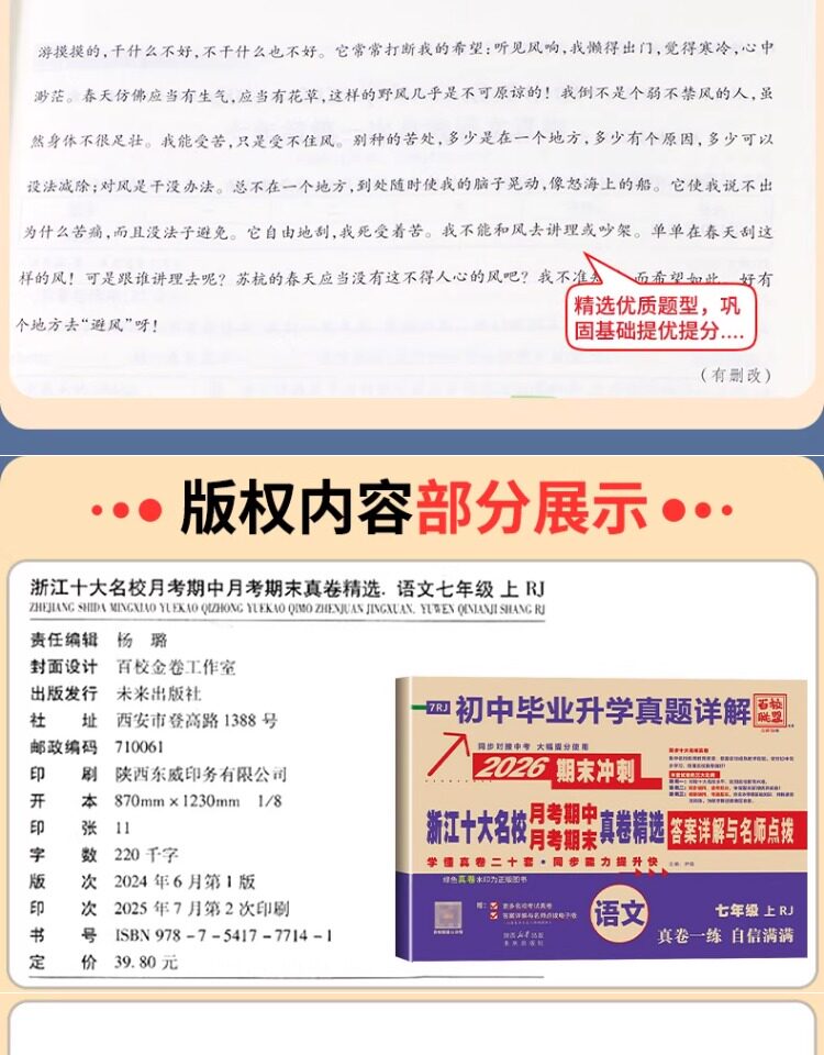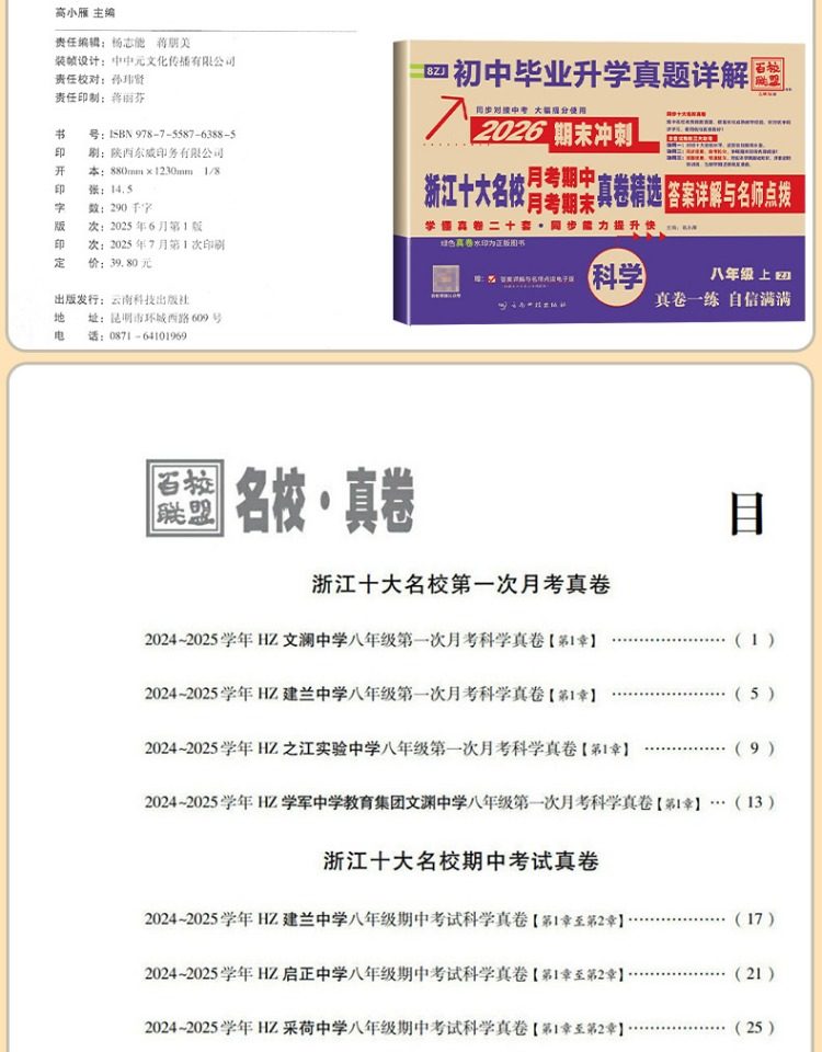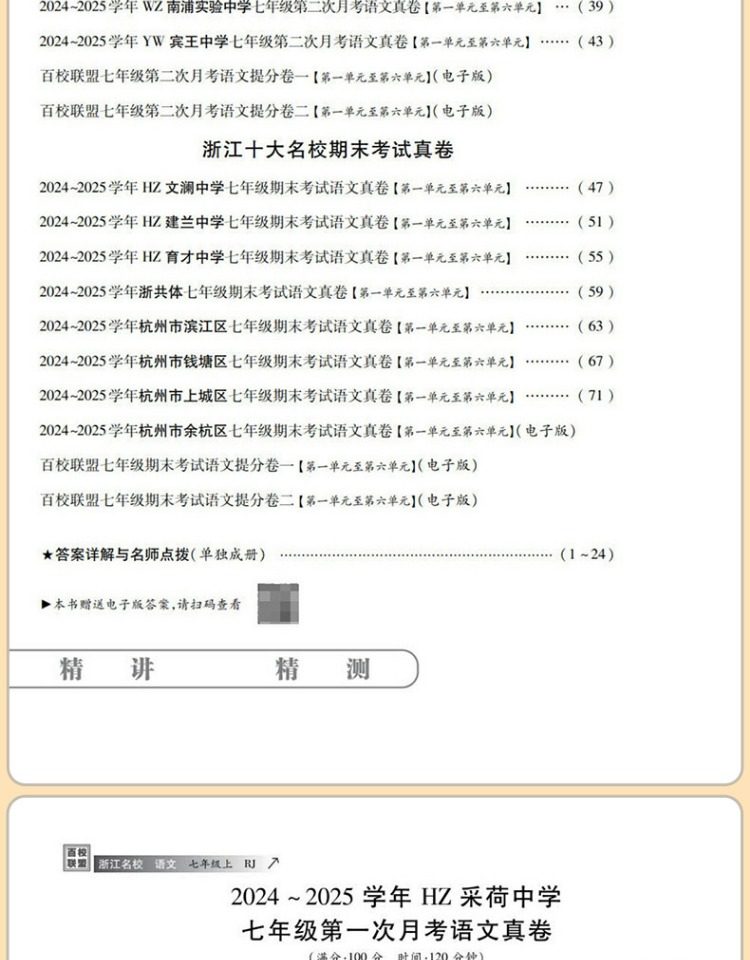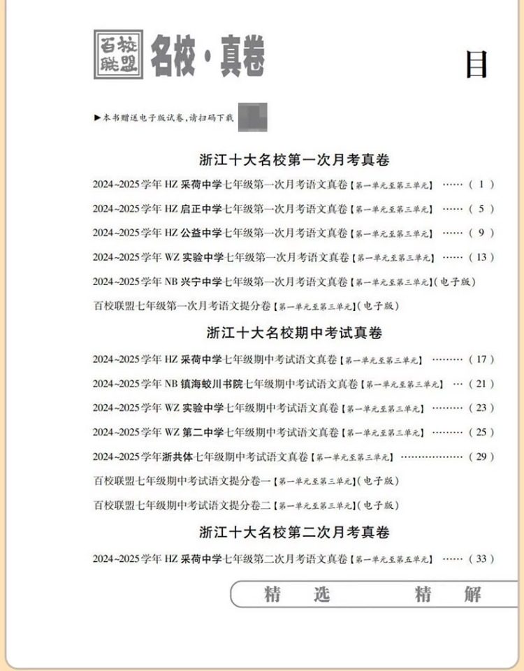 2026百校联盟下册七年级八年级语文数学英语科学浙江十大名校期中期末真题精选同步卷单元期末