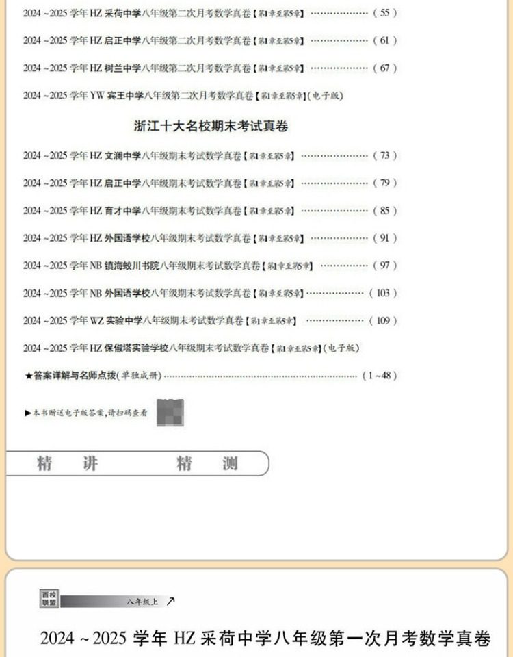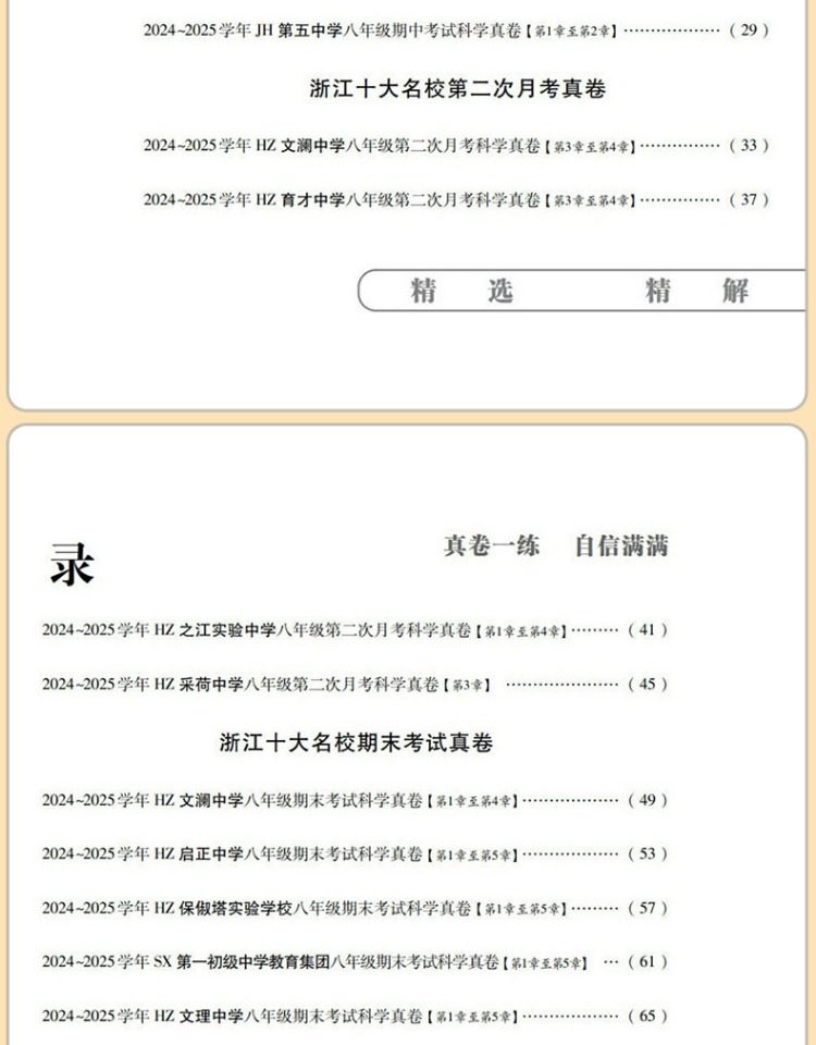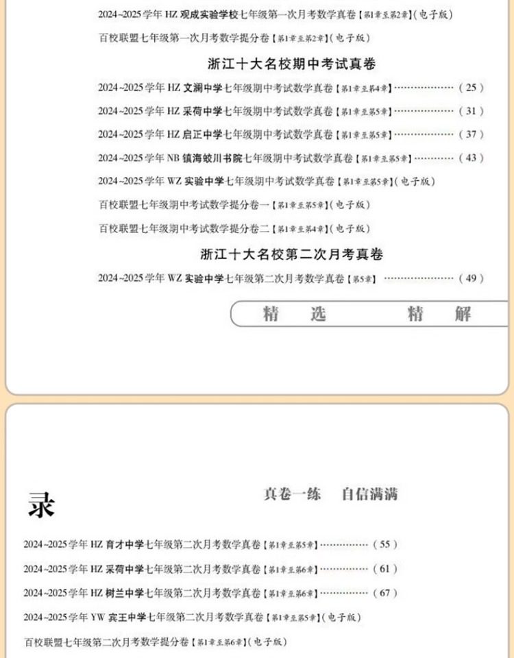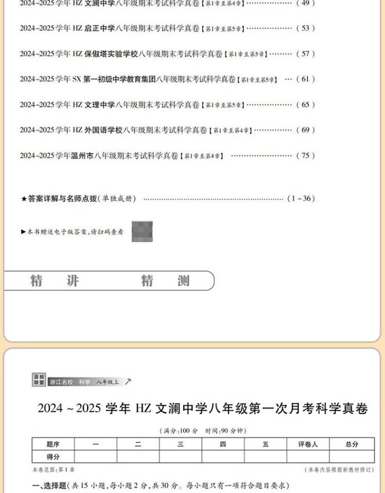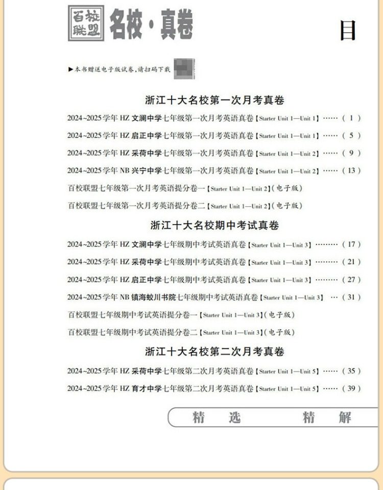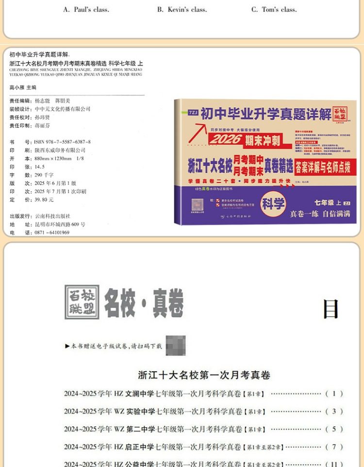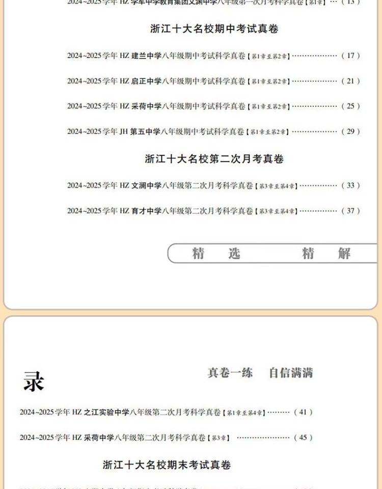 2026百校联盟下册七年级八年级语文数学英语科学浙江十大名校期中期末真题精选同步卷单元期末