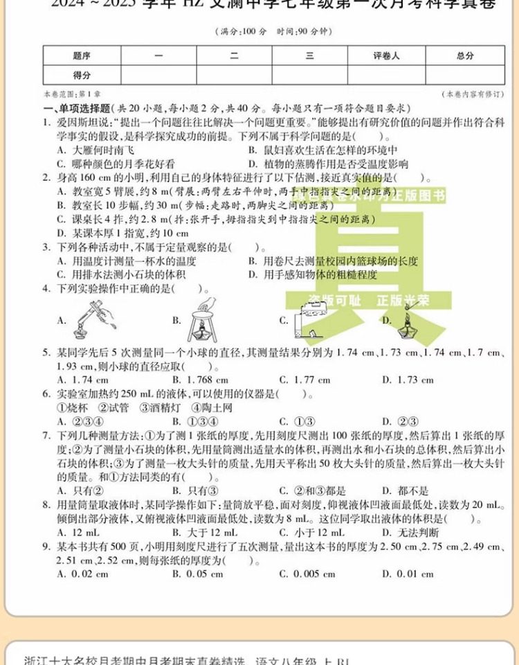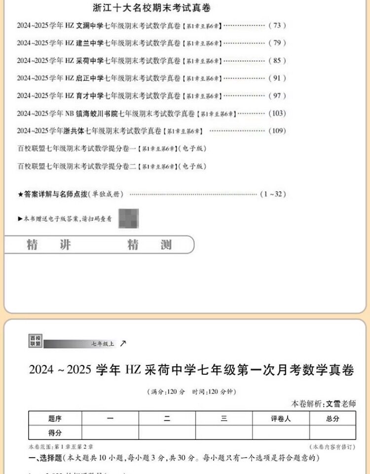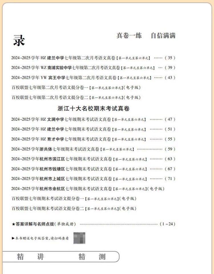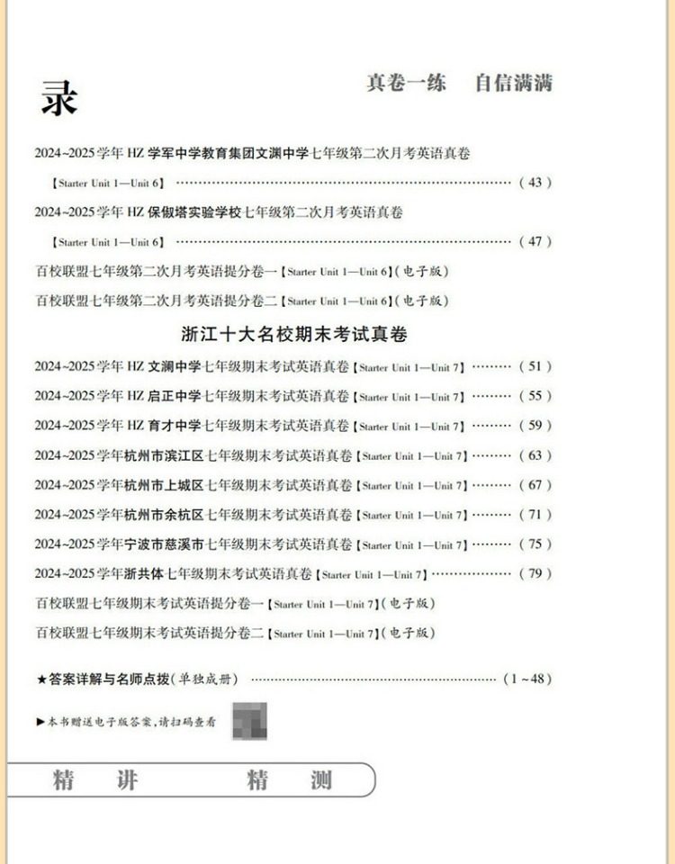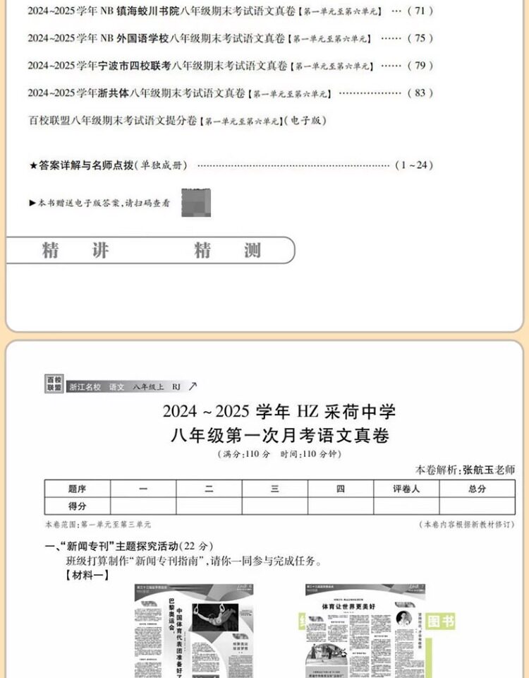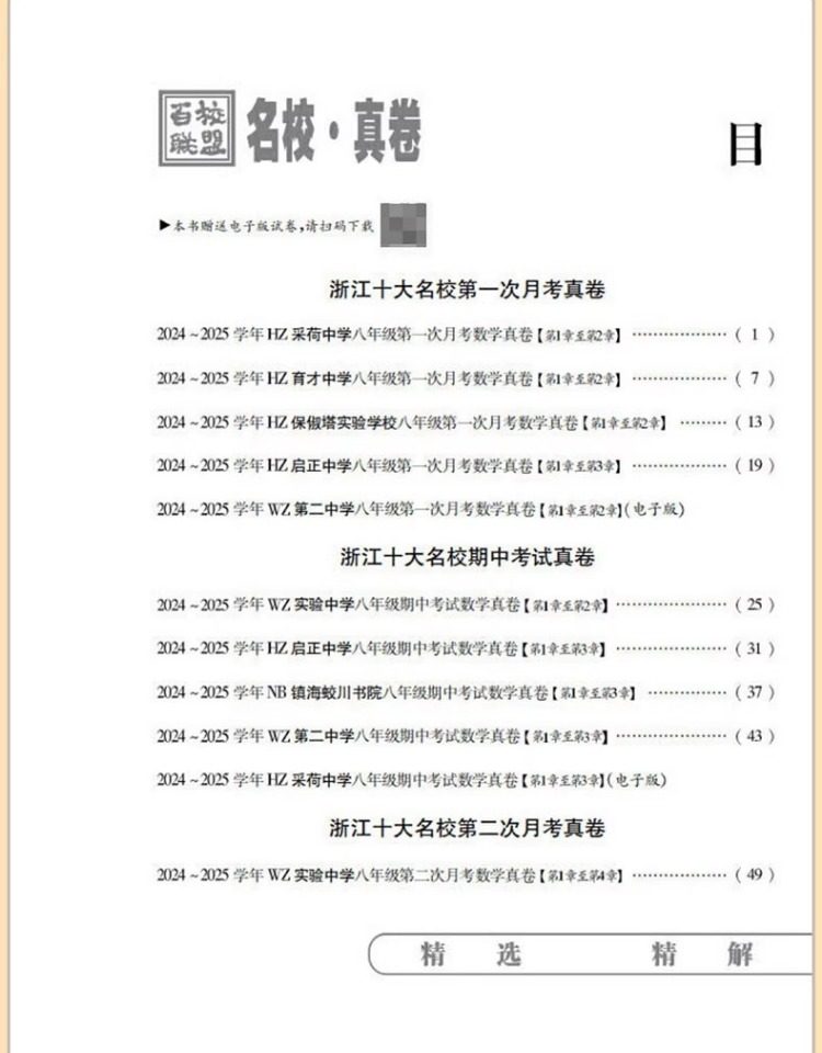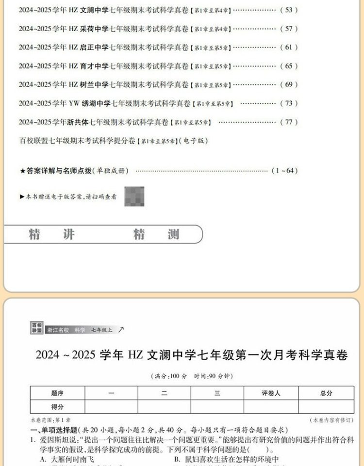 2026百校联盟下册七年级八年级语文数学英语科学浙江十大名校期中期末真题精选同步卷单元期末