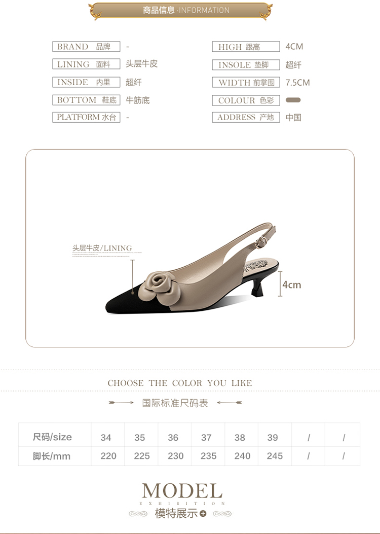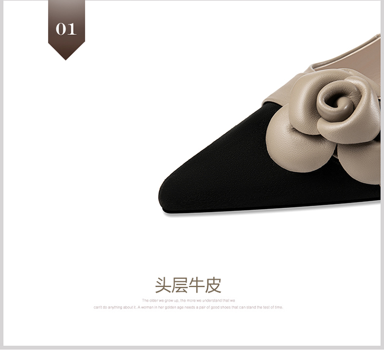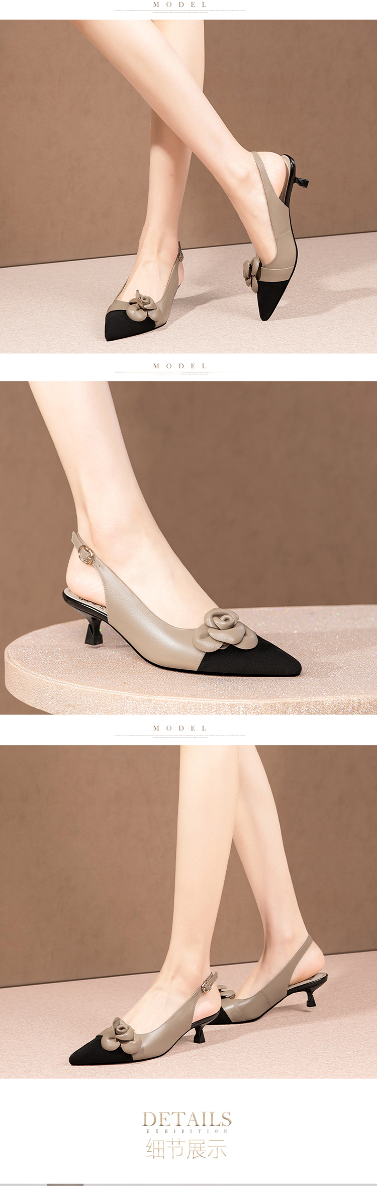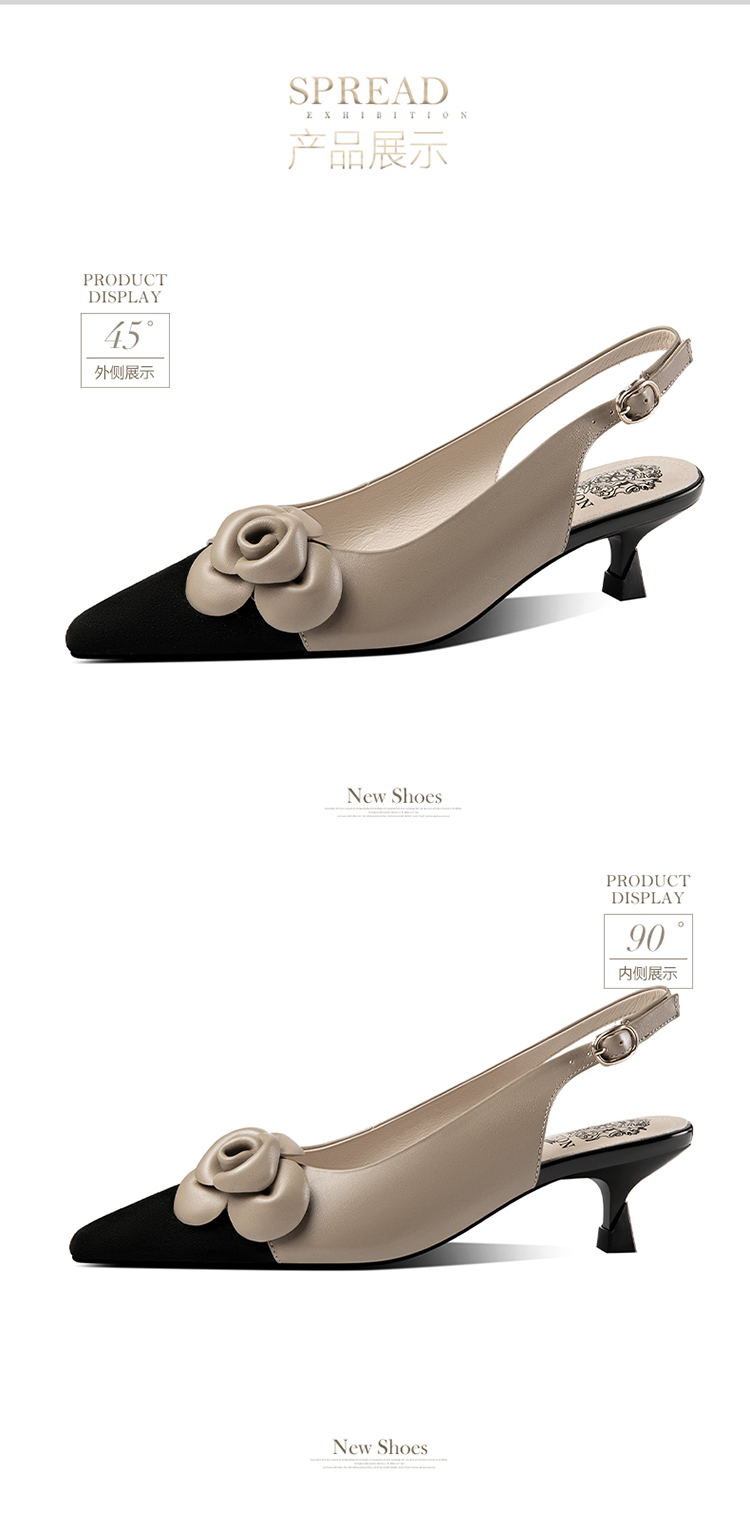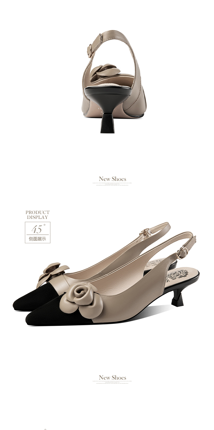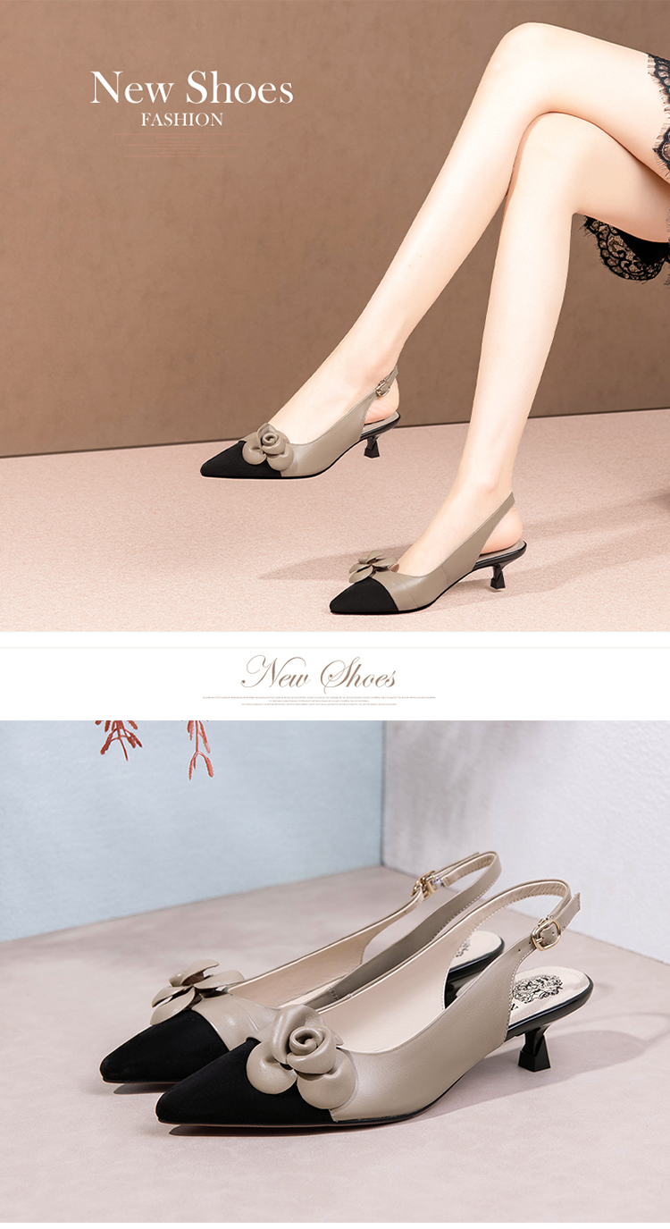 优雅简约,真皮撞色花朵后空凉鞋HY-H3016