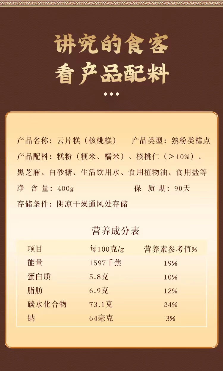 传统糕点核桃云片糕 400g/箱 独立小包装 糯米糕
