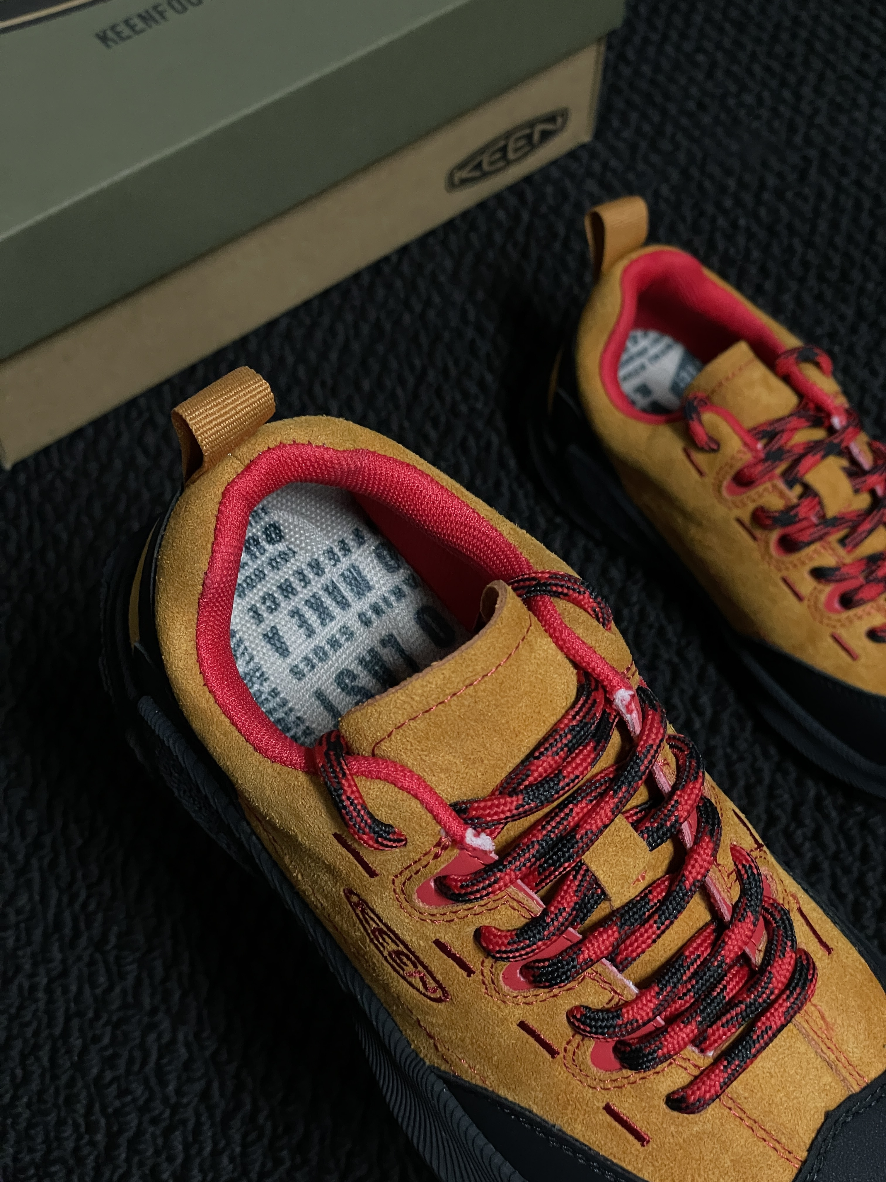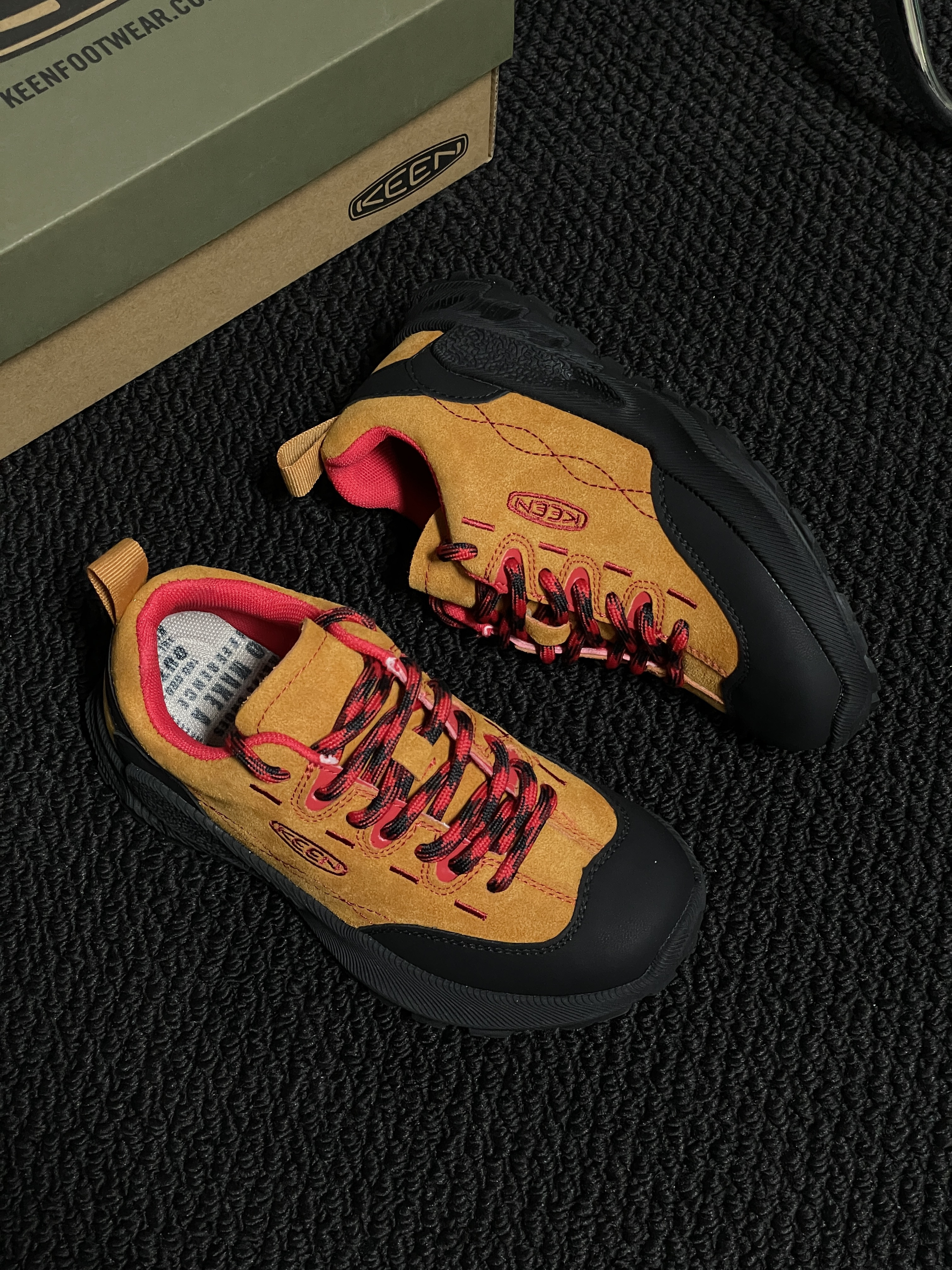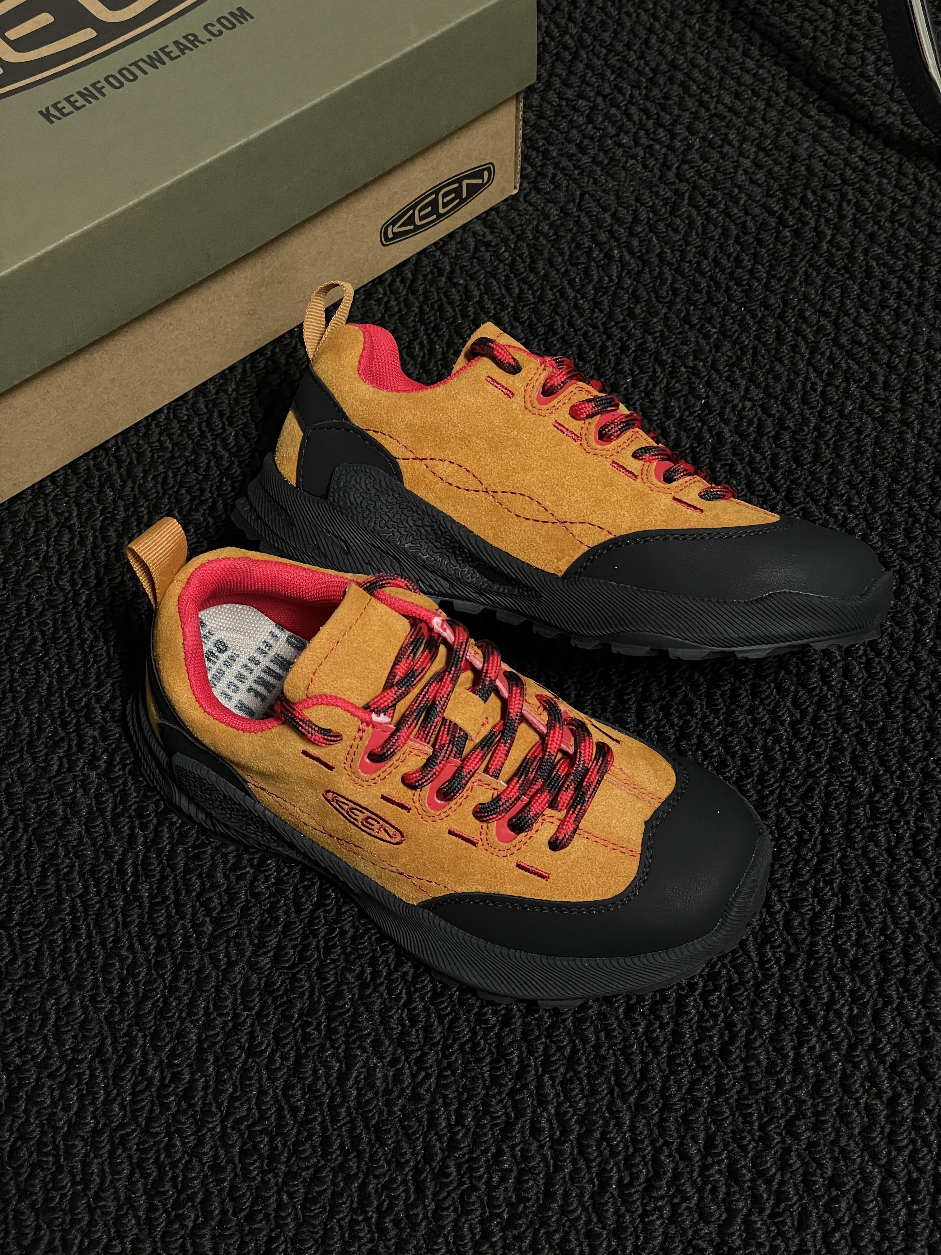 【童鞋款】‼️👣 KE*EN 联名款儿童徒步鞋,专业保护宝宝每一步。 ✅ 优质麂皮拼接,结合防水科技,兼顾透气与防护,应对复杂户外环境。 ✅ 高弹性橡胶大底,特殊纹路设计,耐磨防滑,提供稳固支撑。 ✅ 符合人体工学的鞋型,包裹性好,缓震脚感,长时间行走也不累。兼具颜值与实力,是宝宝探索世界的可靠伙伴。尺码:26~37(详情🔎尺码表)