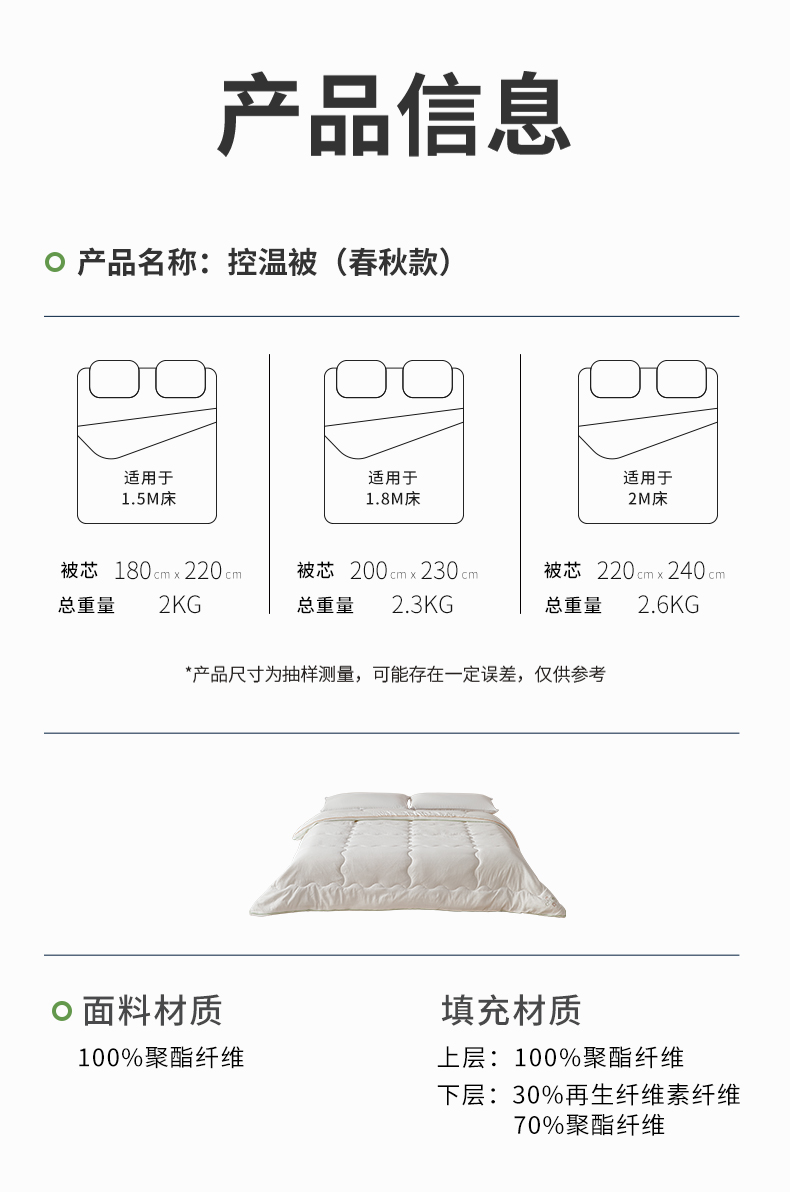【智能控温】 一默 控温春秋被 航天服同款PCM控温材料,智能控温被芯;婴儿A类亲肤,0荧光0甲醛;抗jun纤维,蓄热防寒