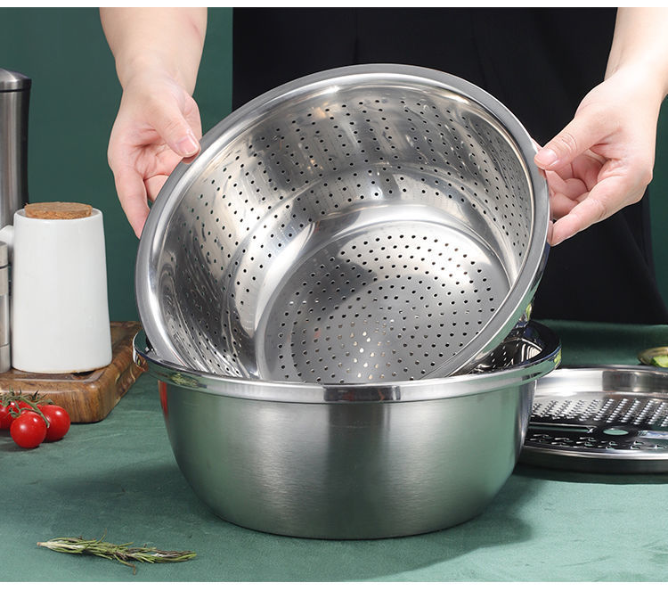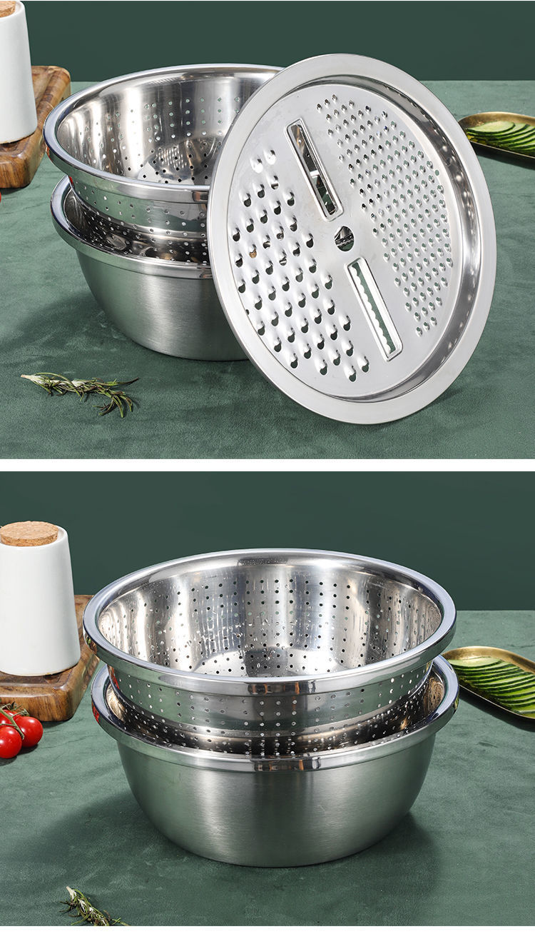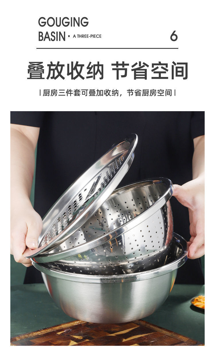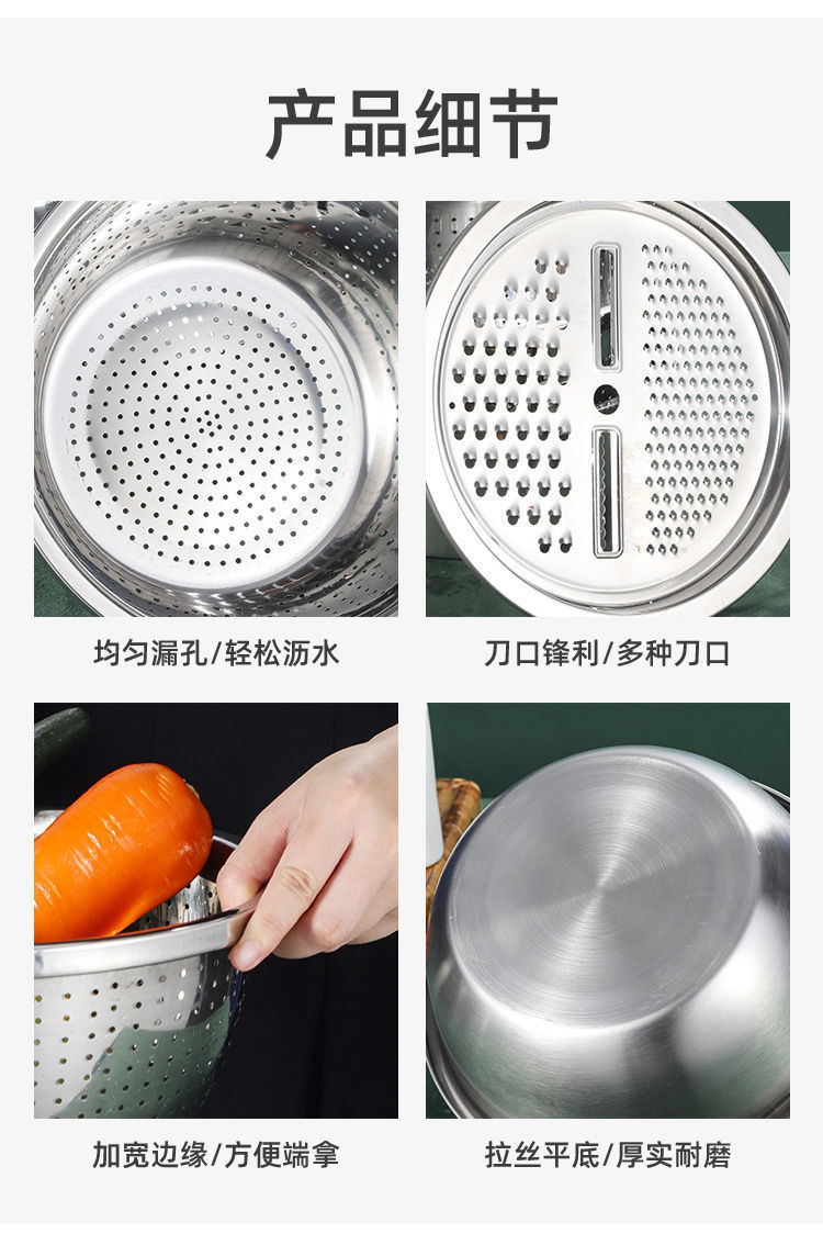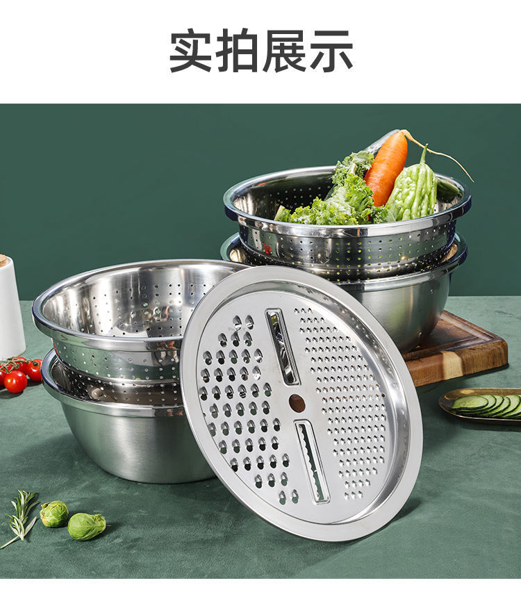 不锈钢切菜家用切丝洗菜盆切片擦丝器厨房多功能沥水篮-优选好物-W仓