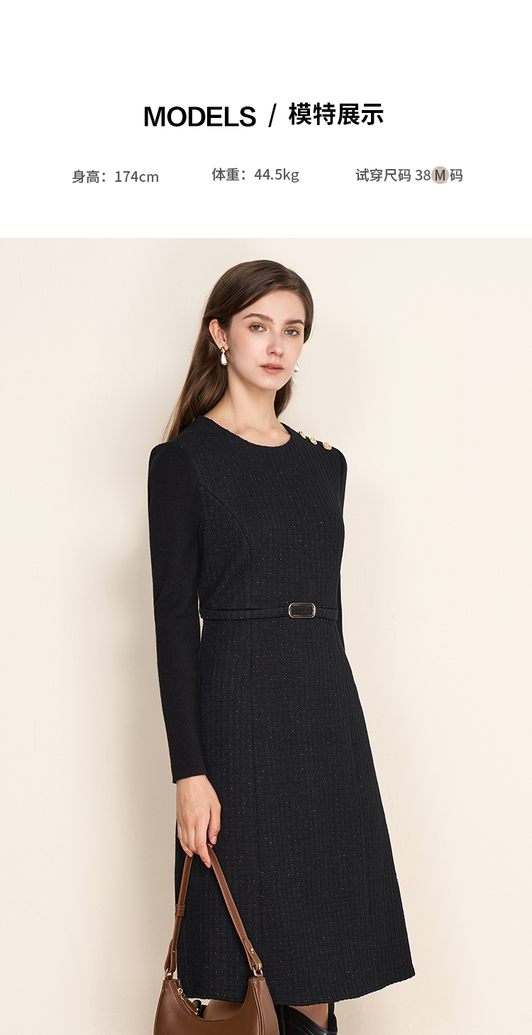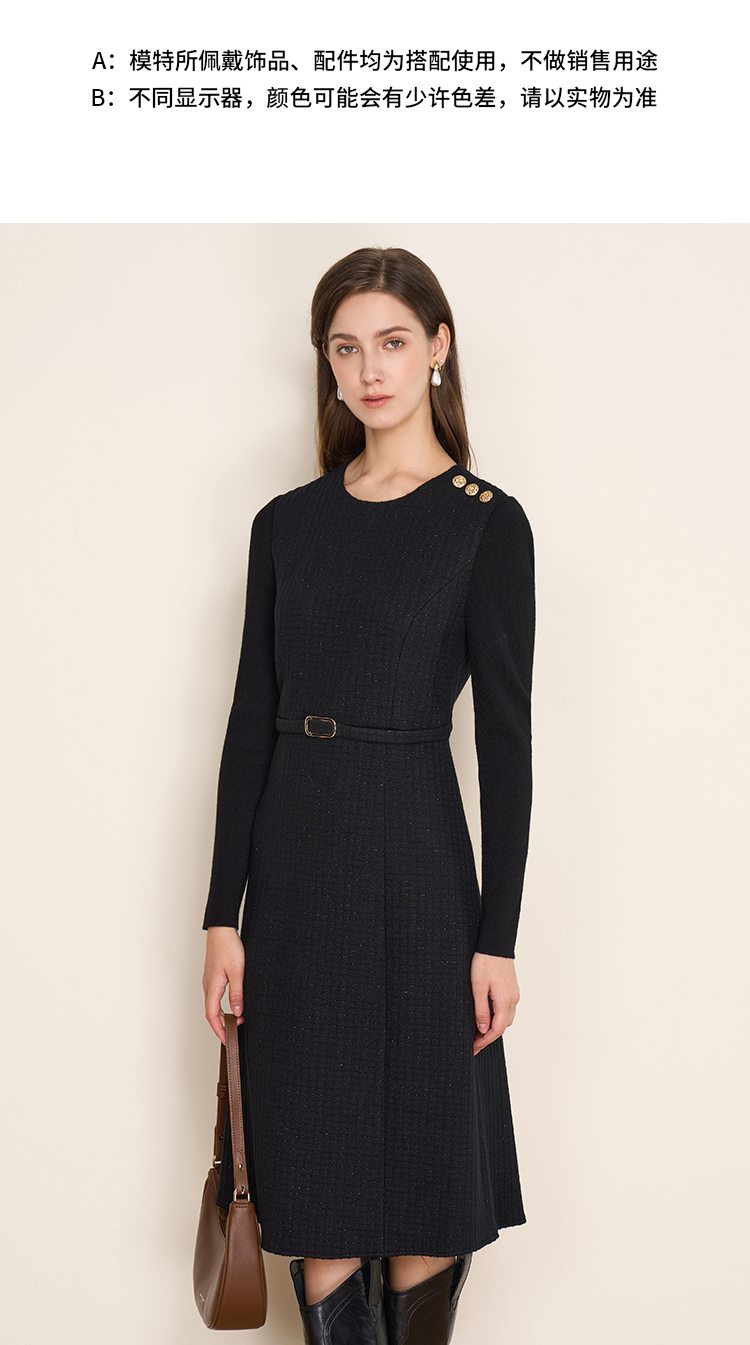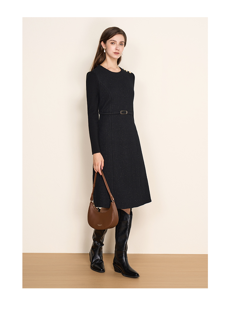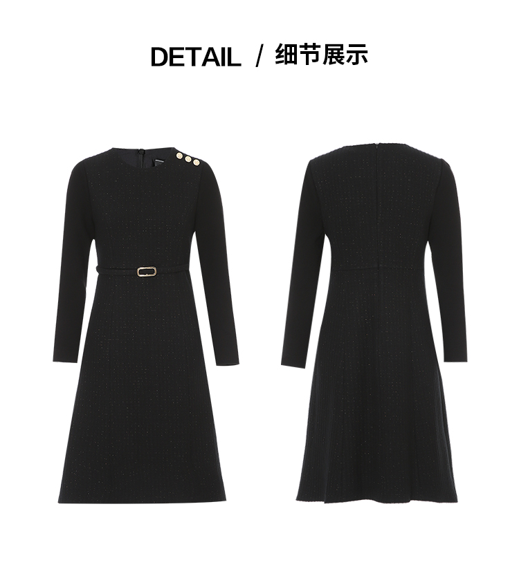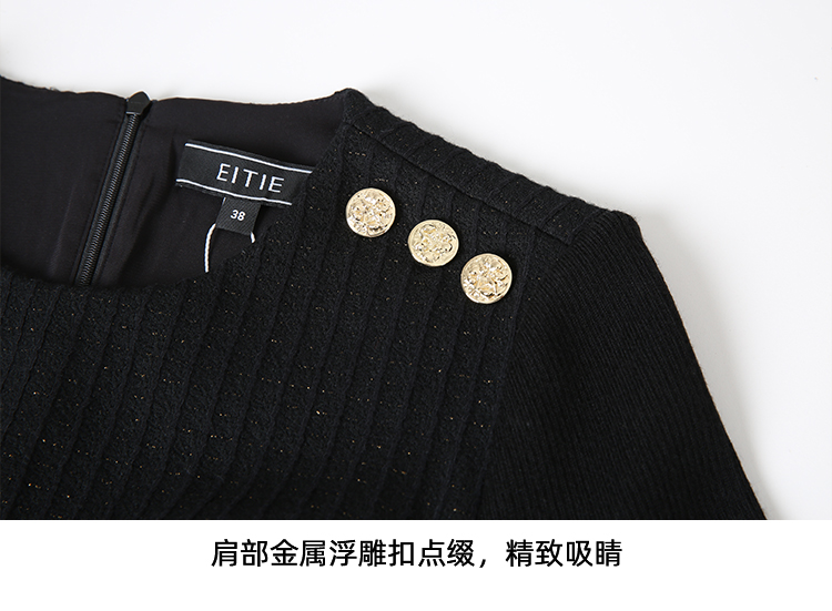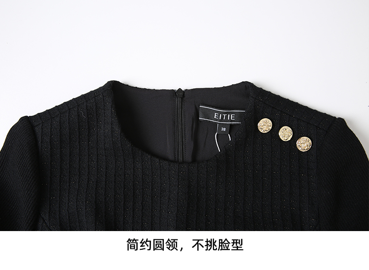 EITIE爱特爱复古黑色收腰显瘦通勤连衣裙冬新款8007723