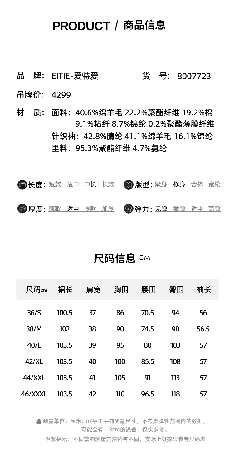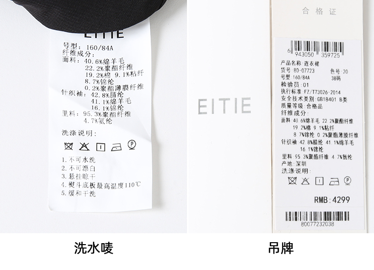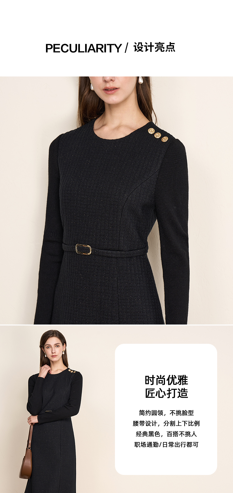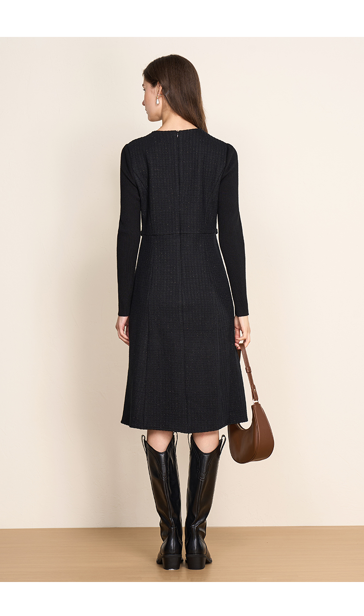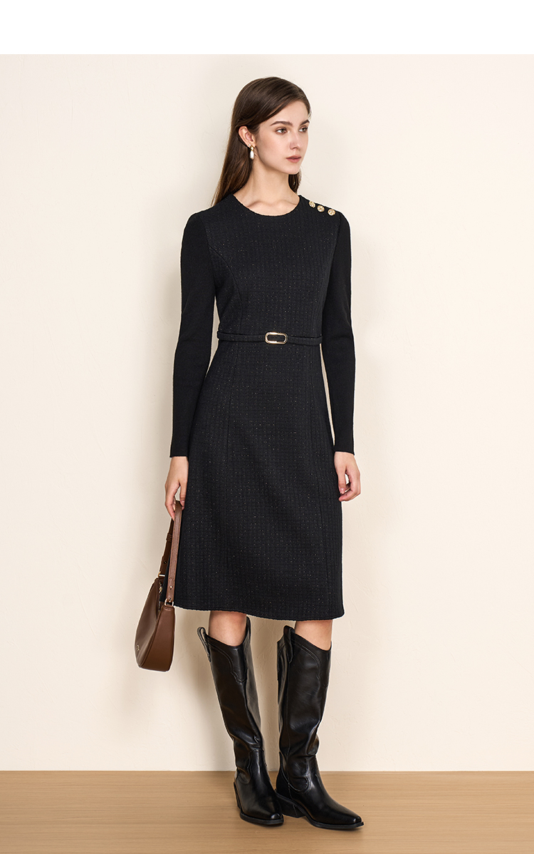 EITIE爱特爱复古黑色收腰显瘦通勤连衣裙冬新款8007723