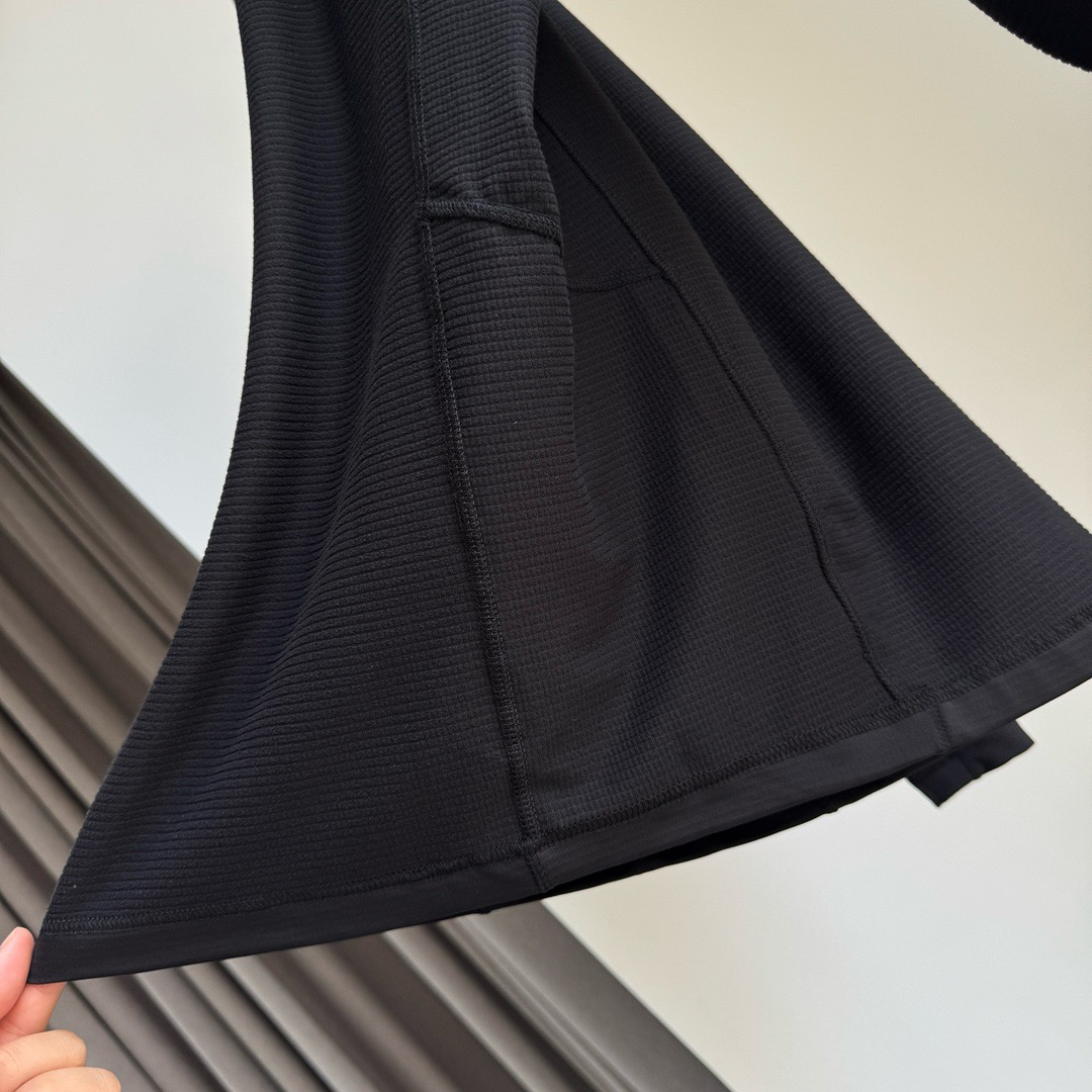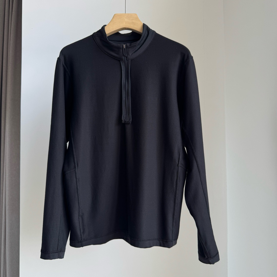 面料高弹力速干内里华夫格设计,琐温透气,四向拉伸面料提供全方位活动自由度,适应各种户外动作,半拉链结构可快速调节通风量,应对不同运动强度