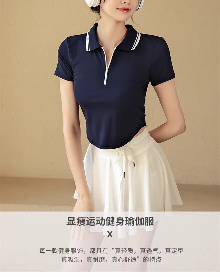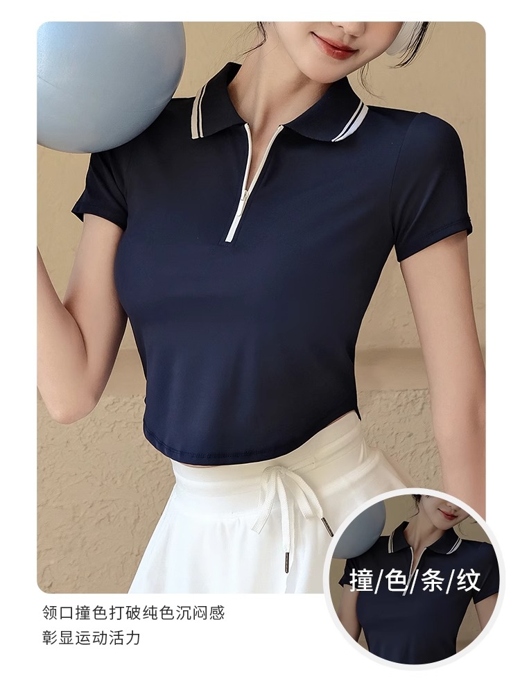 【限时秒】YOGACODE【火树银花系列】2024 春夏polo翻领短袖t恤女半拉链瑜伽短袖DST530