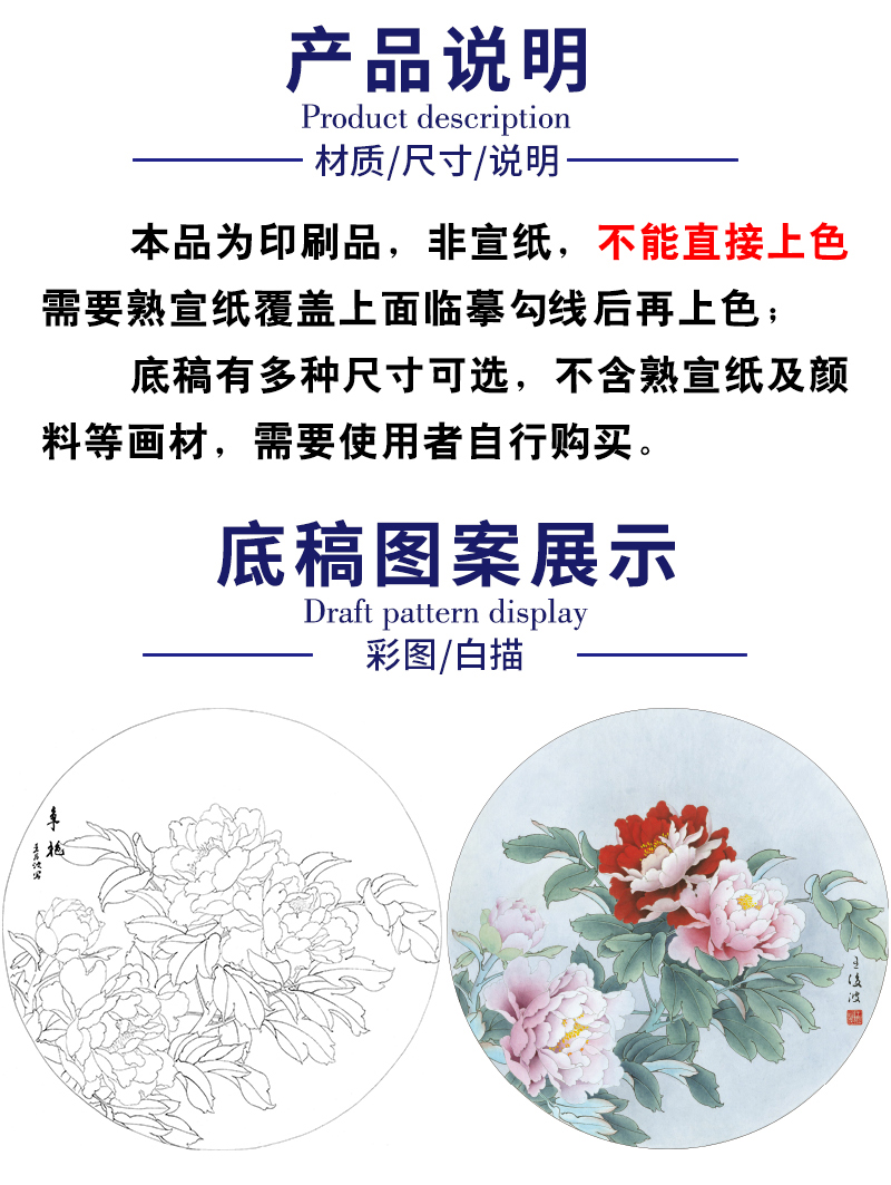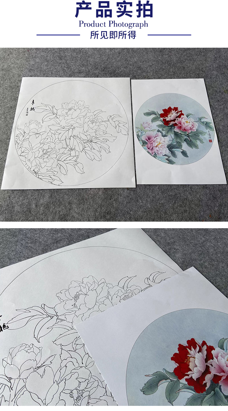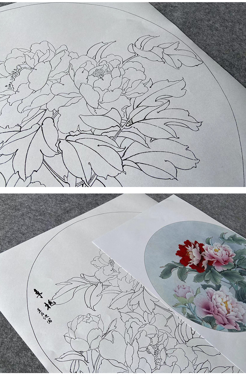 王后波工笔画白描底稿圆形小品《争艳》临摹勾线高清打印稿YL32
