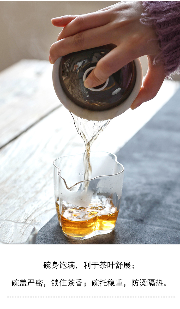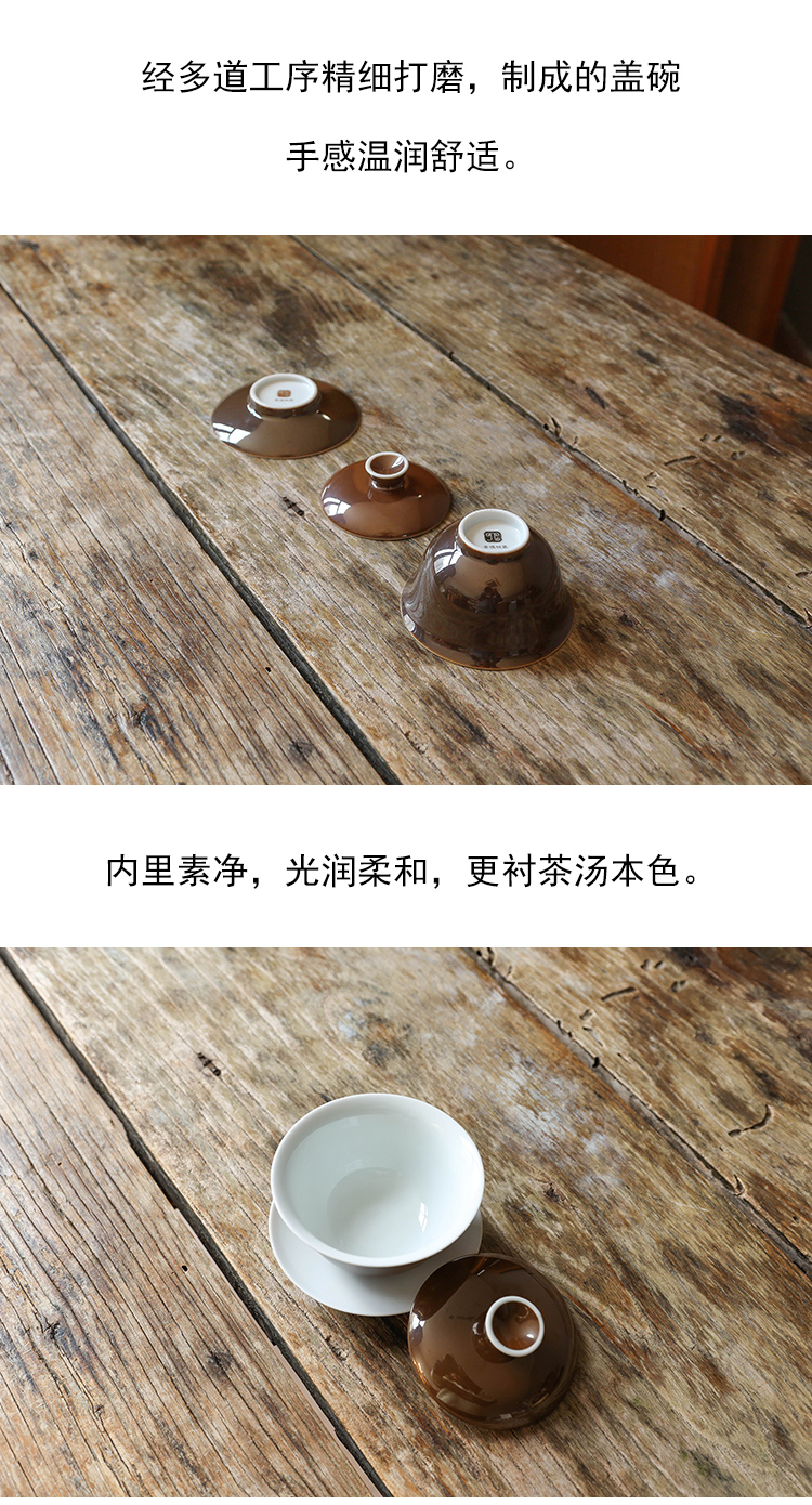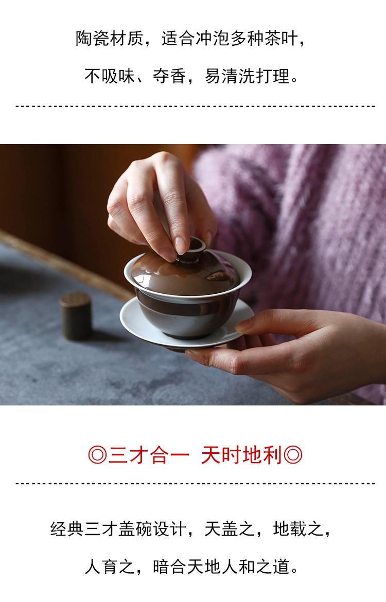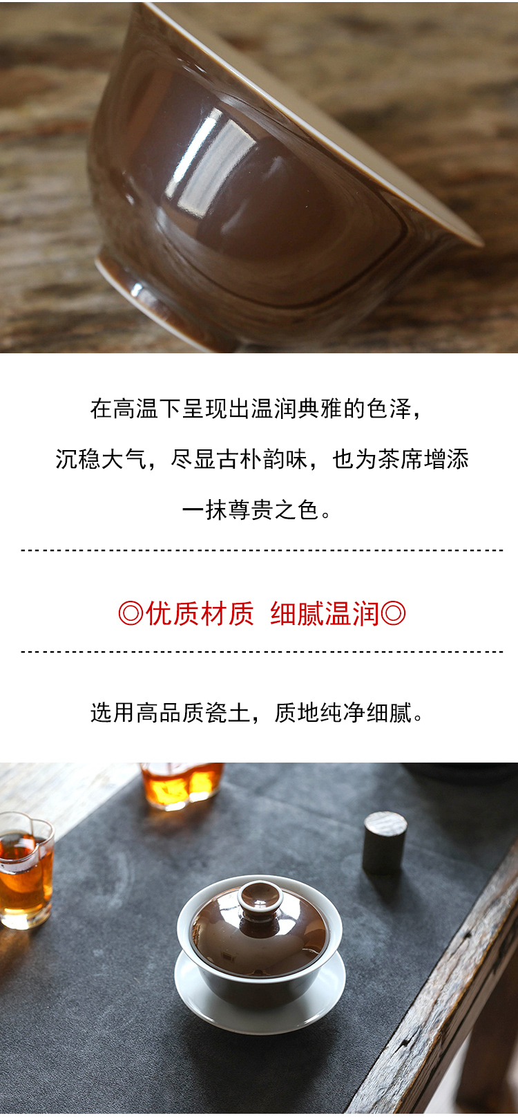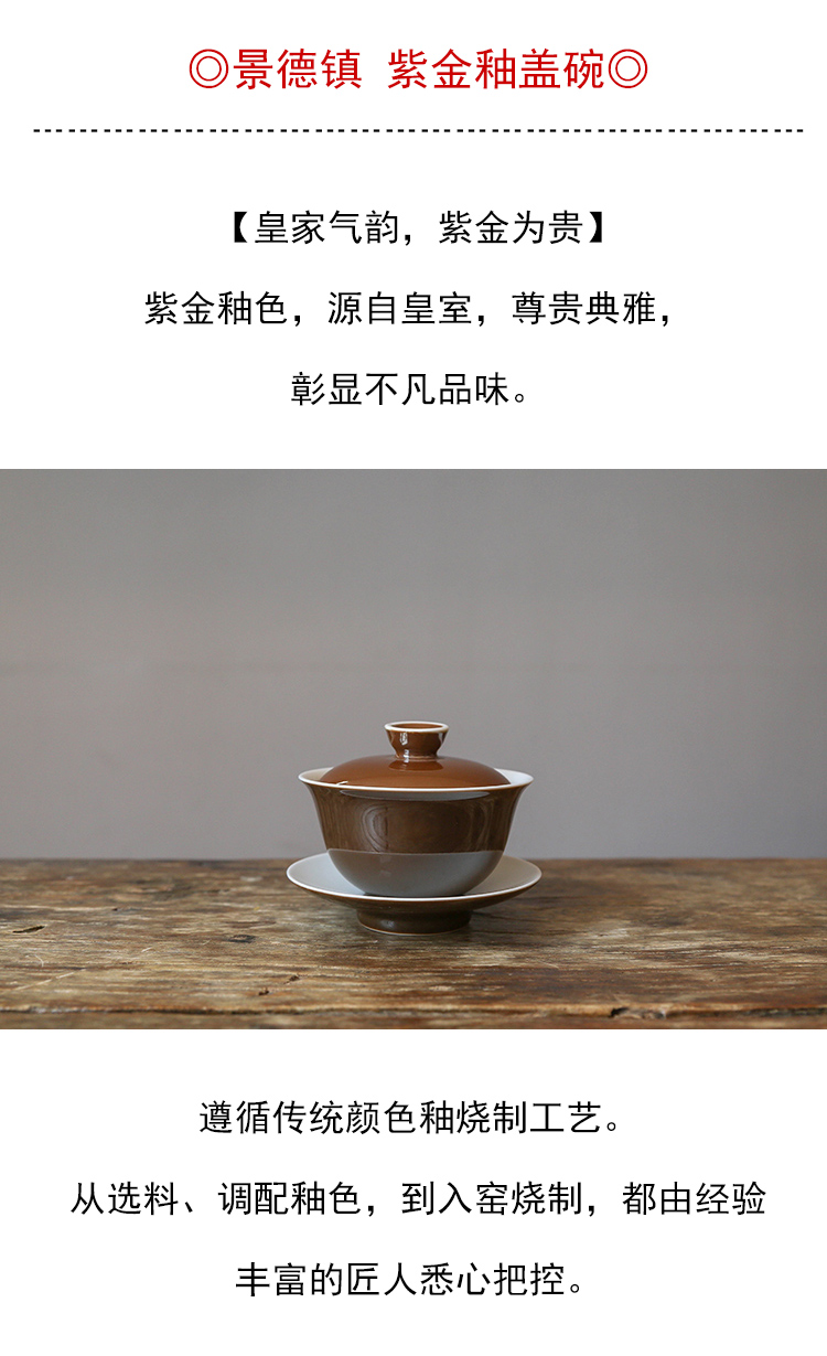 茶香记 景德镇颜色釉三才盖碗紫金釉130ml陶瓷泡茶碗复古功夫茶具