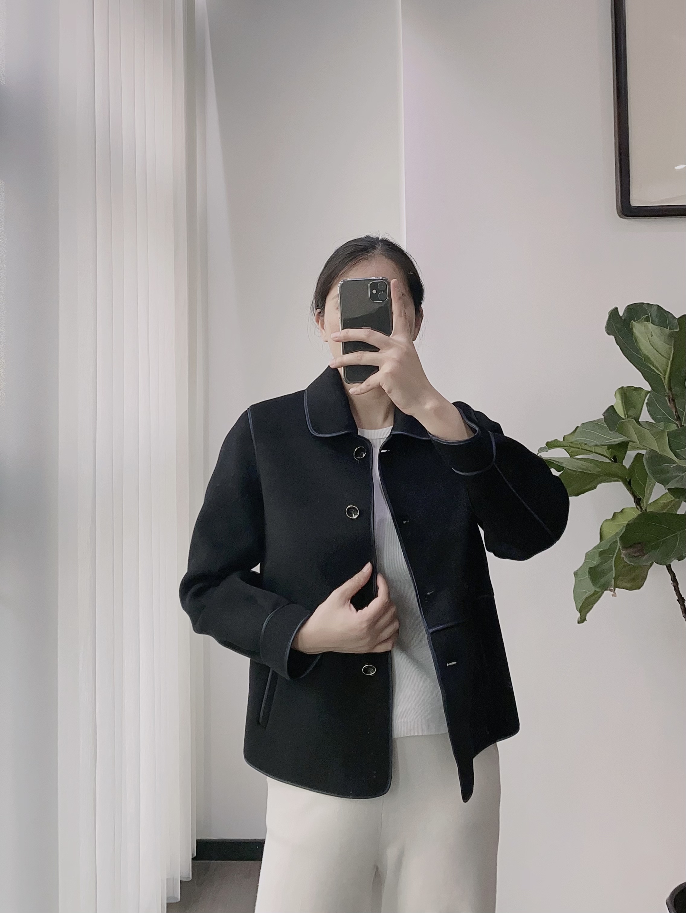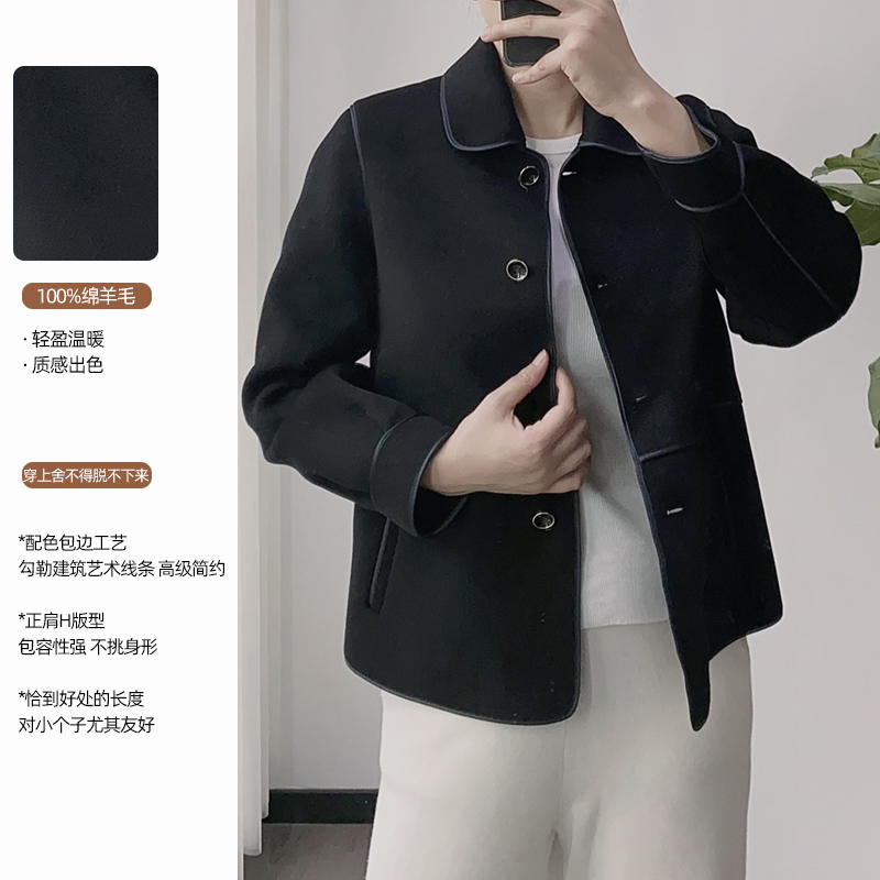 【黑L1】臣禾【包边大衣】短款双面呢大衣【100%绵羊毛】JZ244080526