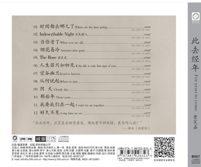 空谷幽兰的寂寞女声,散发出优雅与愁情。伴随时光,触动你我心中和煦善感的浪漫情怀。