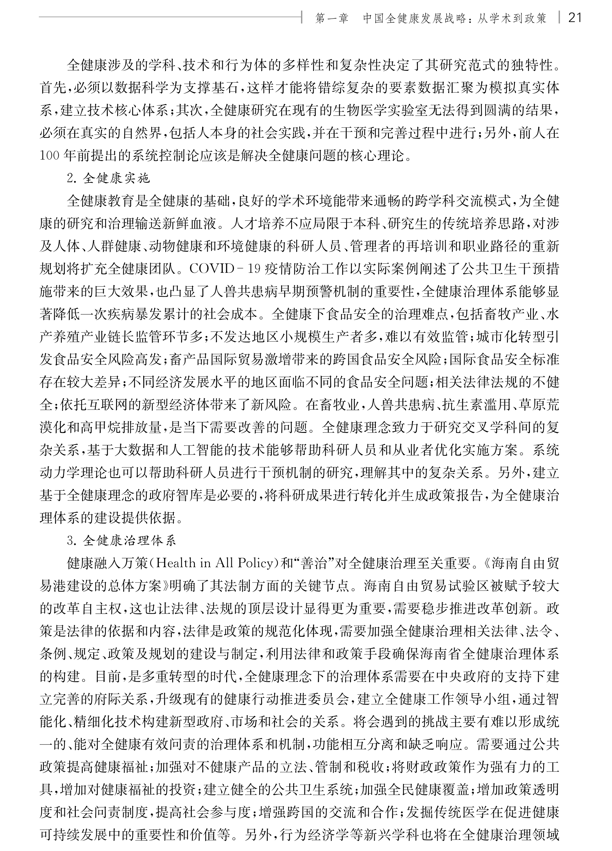 本书围绕全健康领域的科学问题和全健康治理体系建设,就我国新发与再发传染病面临的挑战与对策、全健康数据的挖掘与应用、全球食物链与食品安全的研究进展、微生物耐药防控面临的科技问题、应对特大型城市气候变化的健康对策等问题进行研究,探讨如何应用全健康理念,通过多层面、全方位的实践与合作,共建全健康全球网络来攻克当前全人类面临的危机。 本书适合全健康以及公共卫生领域的研究生、教师以及与相关交叉学科的学生及教师使用,旨在加强全健康理念的传播和普及,在医学教育体系中全面融入全健康理念,助力全球视野医学人才成长。