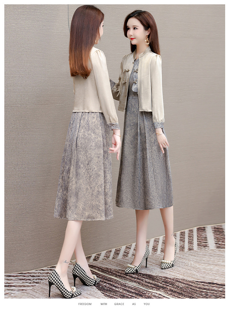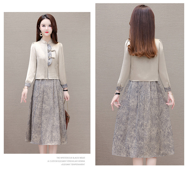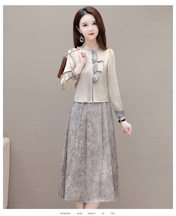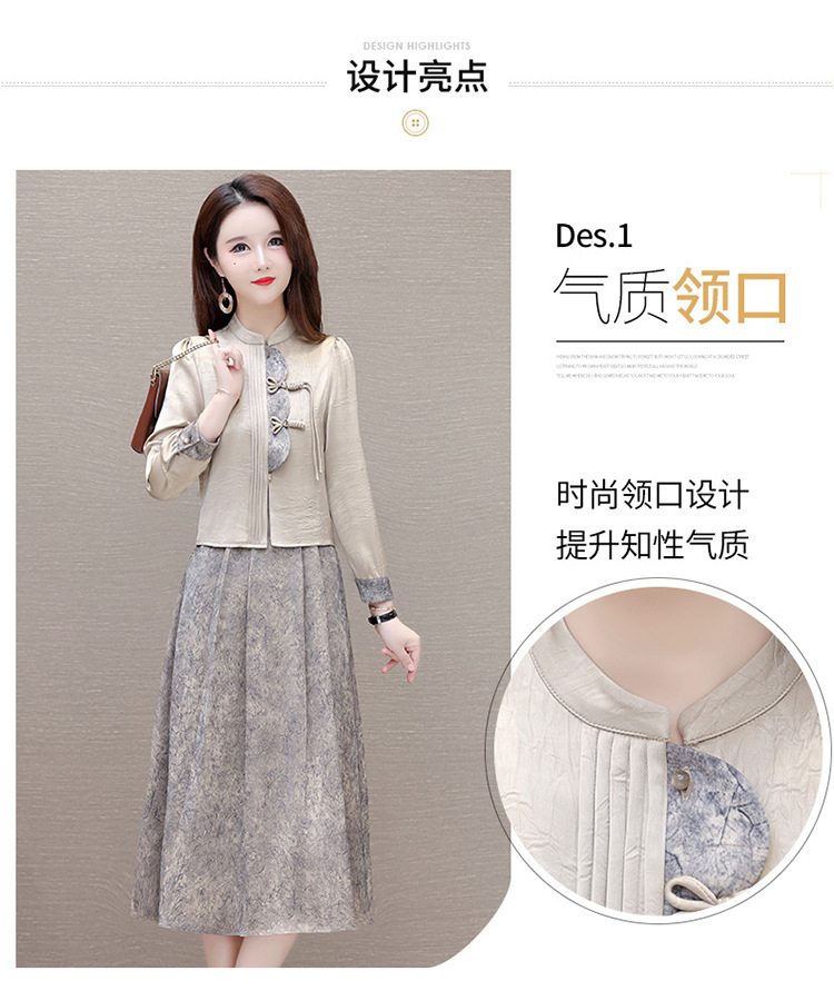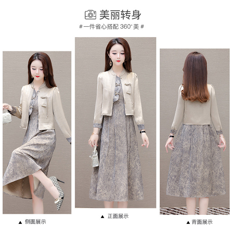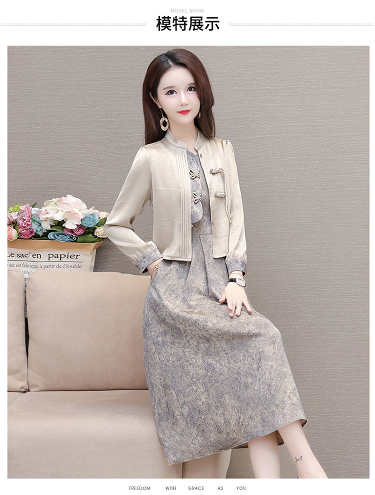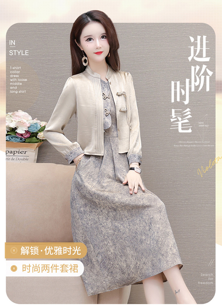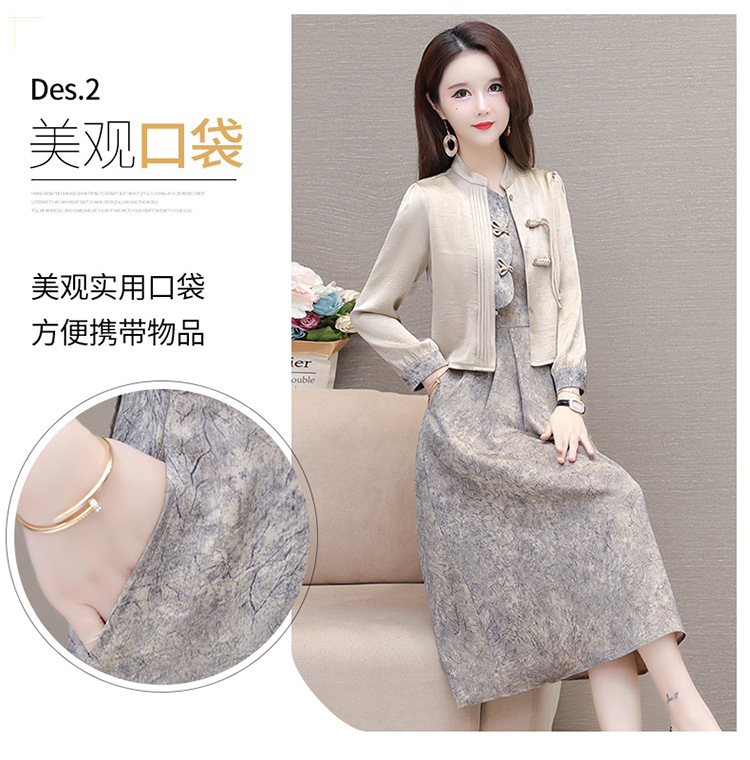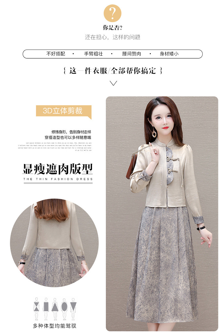 国风洋气,长袖外套印花长款百褶拼接内搭两件套QYM-XYKL-28077-L