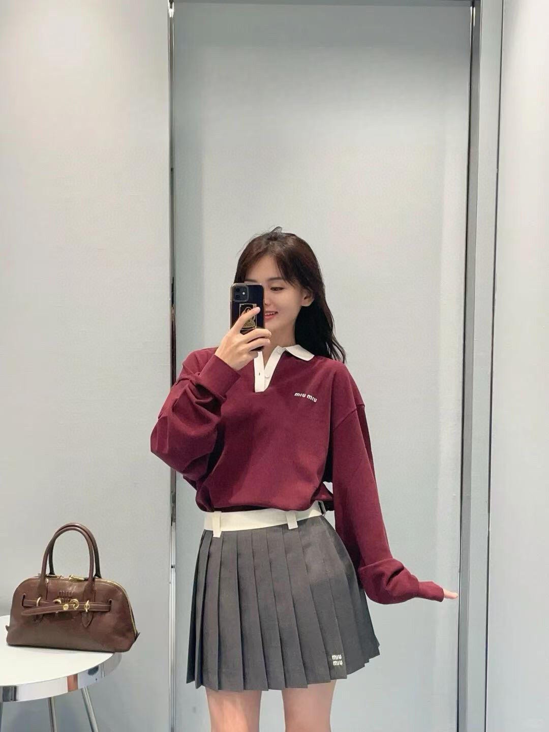 145 货号120786145 xg 女款,MI*MIU灰色 百褶 迷你半身裙……