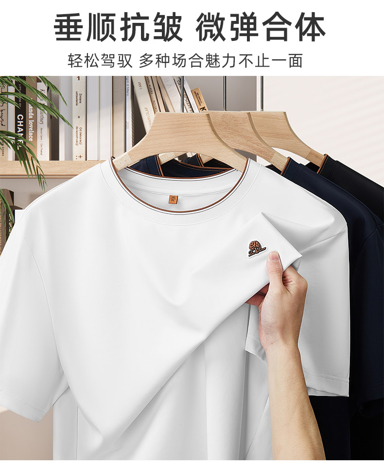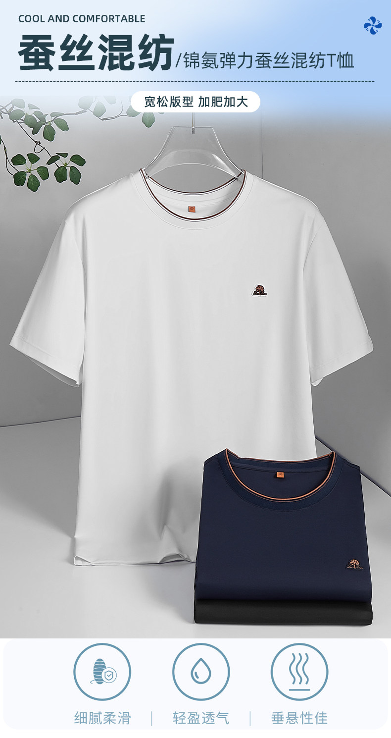 【DWP】【桑蚕丝】大依优型大码男装夏季圆领短袖T恤宽松舒适透气短袖