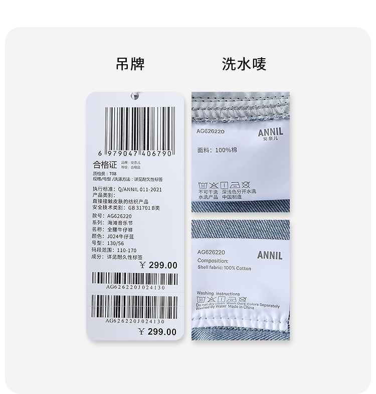 【实体店同款】女童全腰牛仔裤夏季新款安奈儿童装AG626220