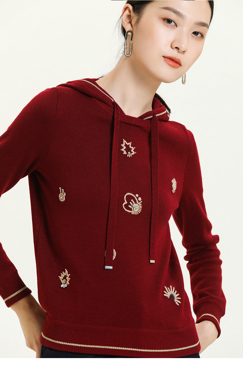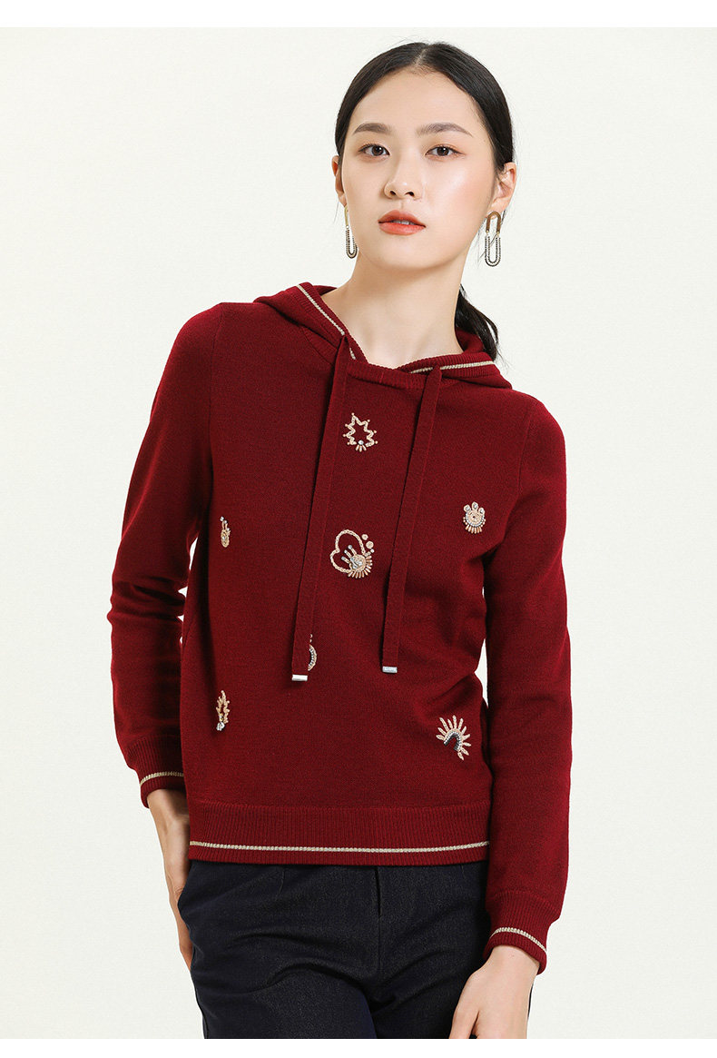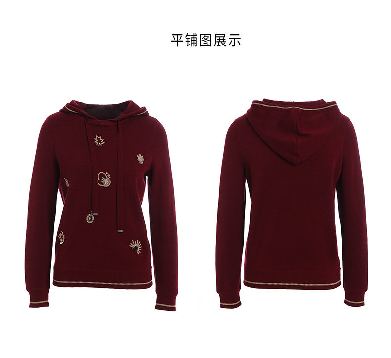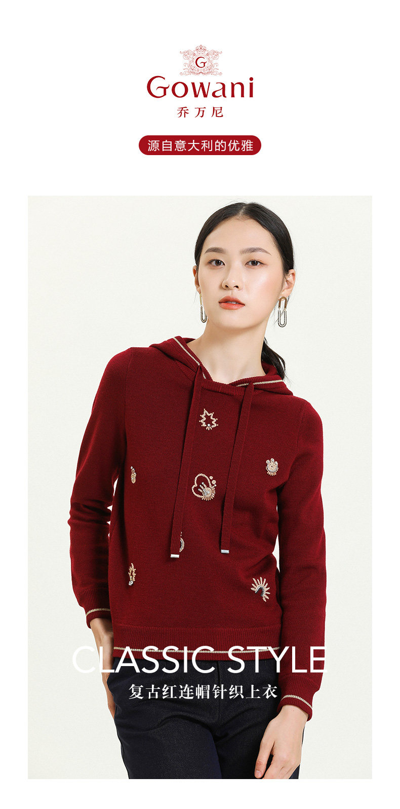 乔万尼秋冬新款短款连帽卫衣套头毛衫重磅钉珠工艺精致复古上衣ES4M386
