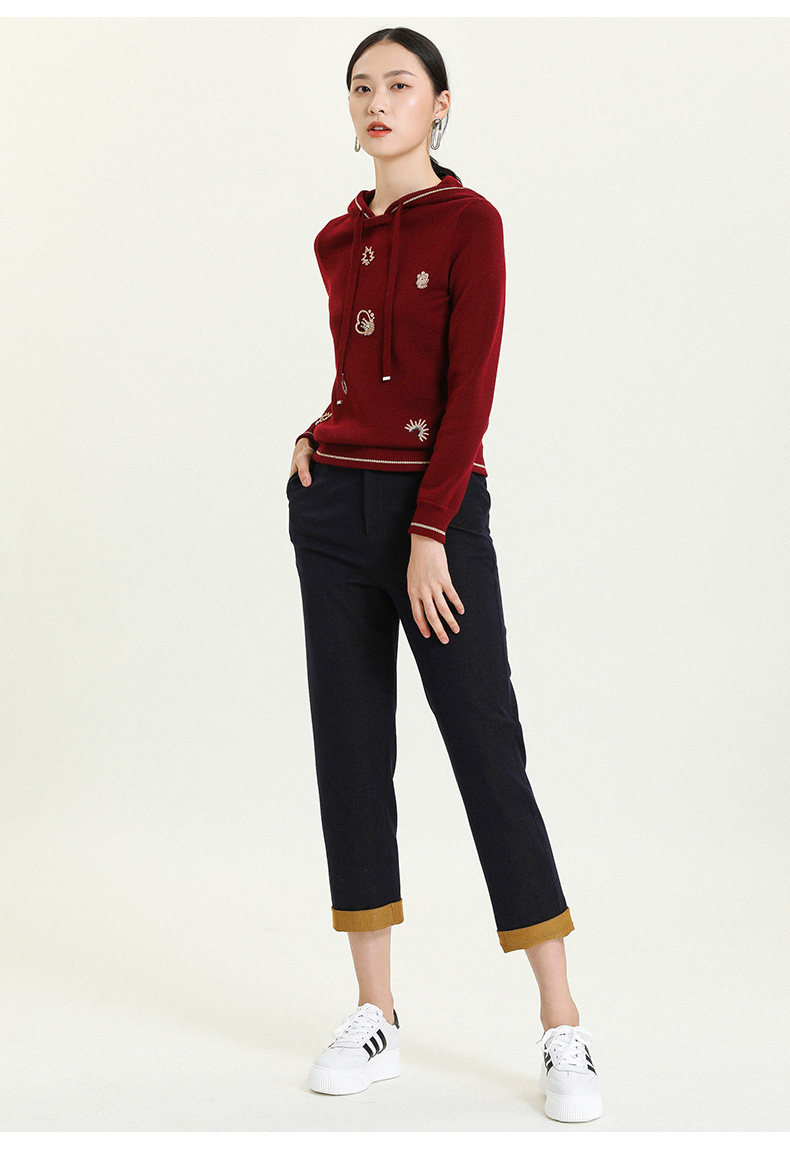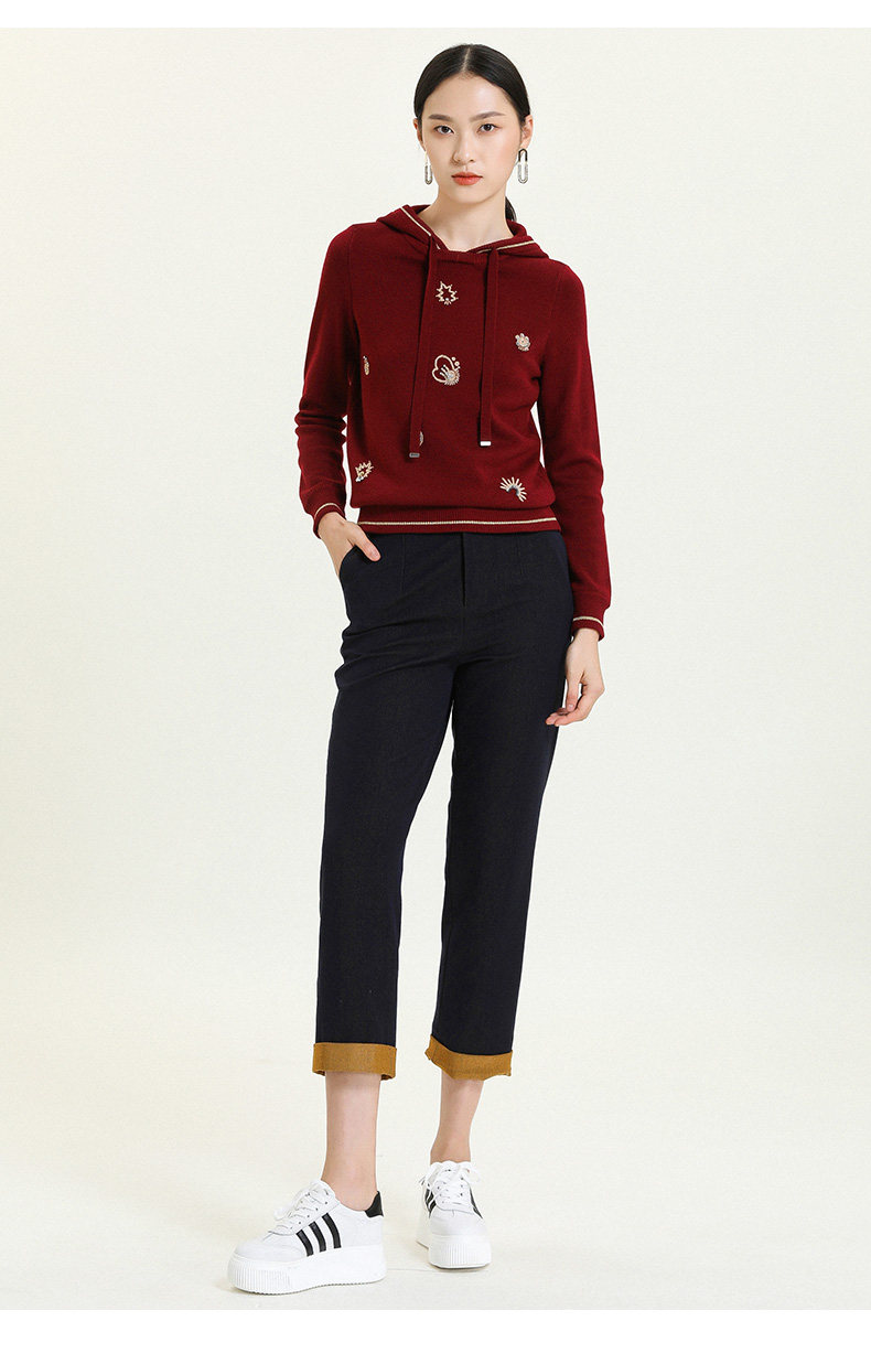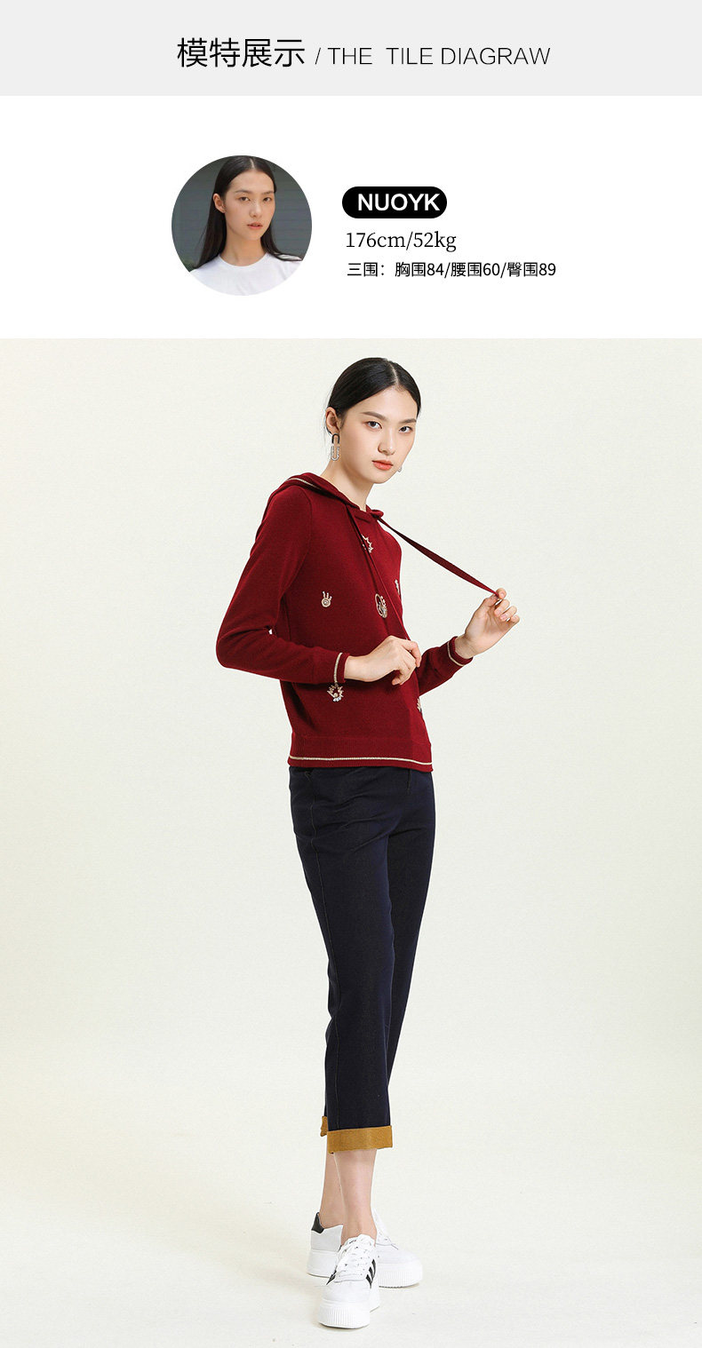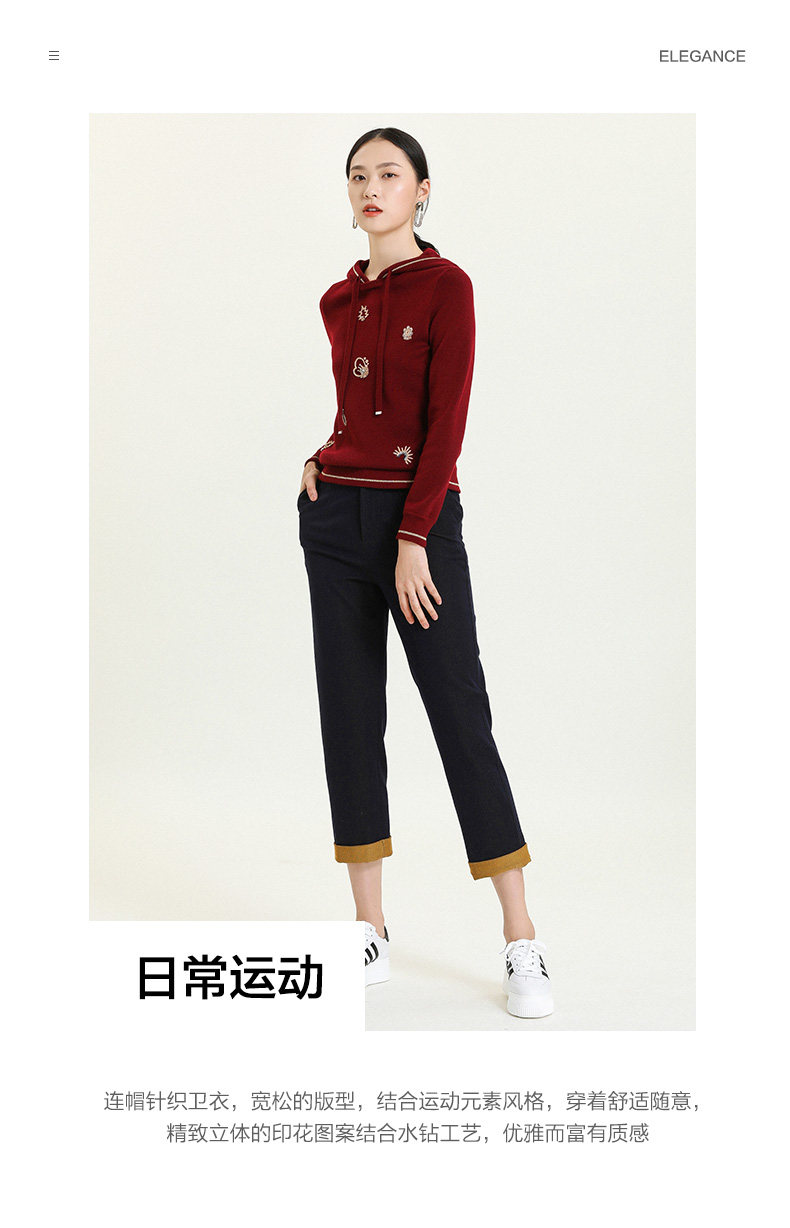 乔万尼秋冬新款短款连帽卫衣套头毛衫重磅钉珠工艺精致复古上衣ES4M386