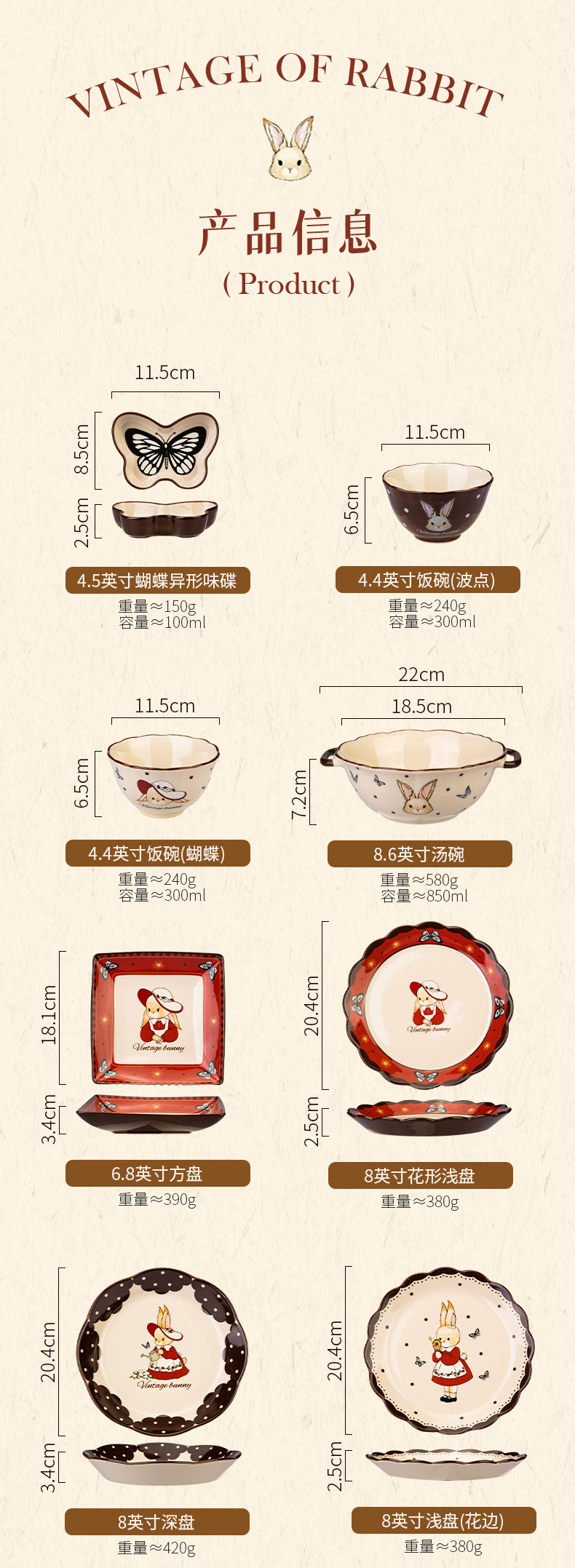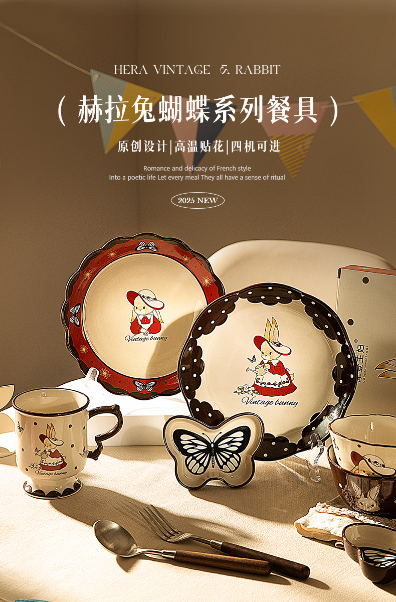 摩登主妇赫拉兔碗碟餐具家用2025新款餐盘子鱼盘乔迁新婚结婚礼物